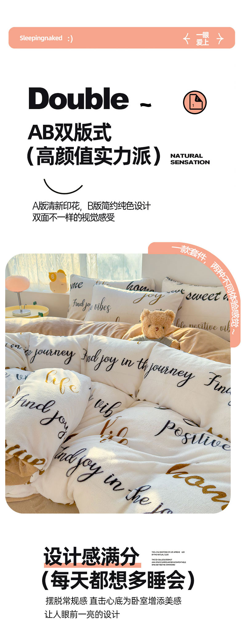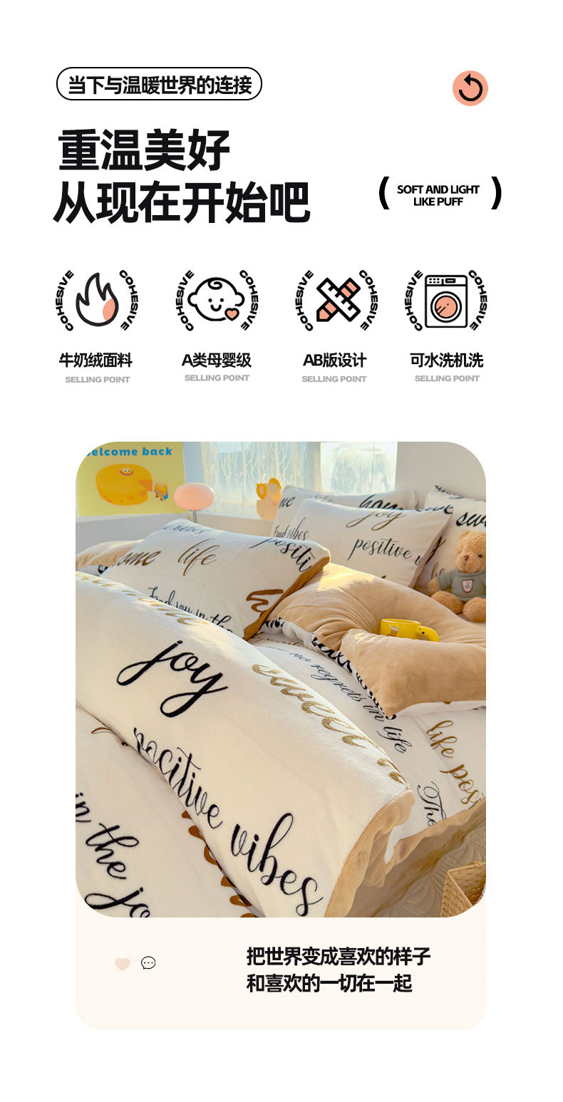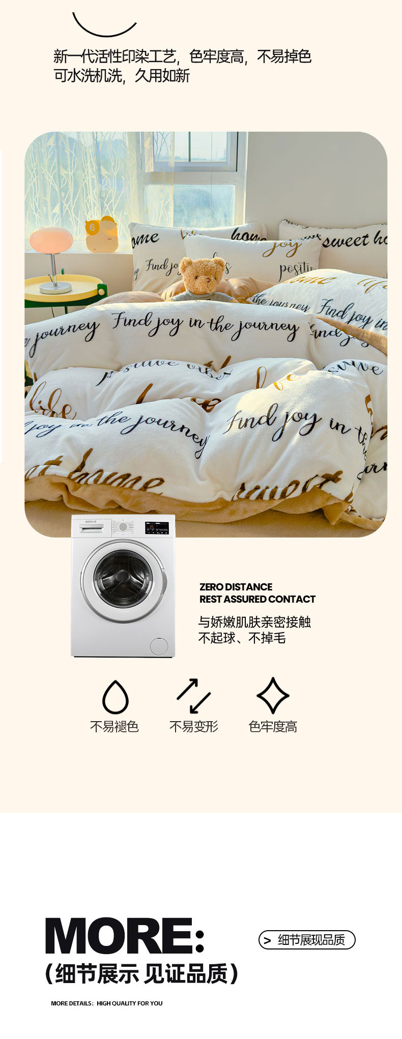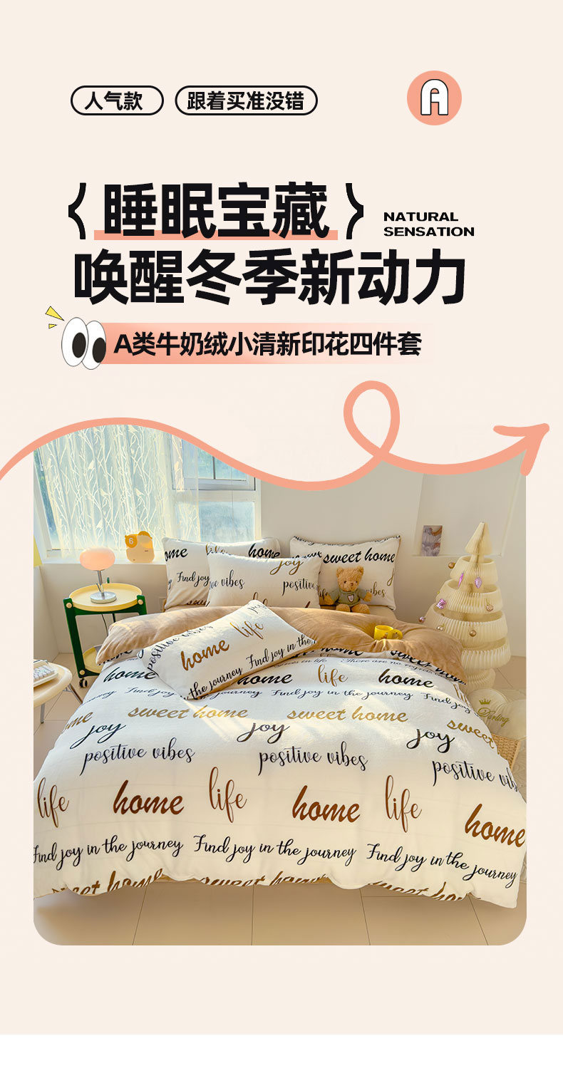 当前位置: 91家纺网 > 商品网购 > 床品套件 > 四件套 > 牛奶绒四件套 > 灰鲸 2025新款牛奶绒小清新印花四件套 美好生活