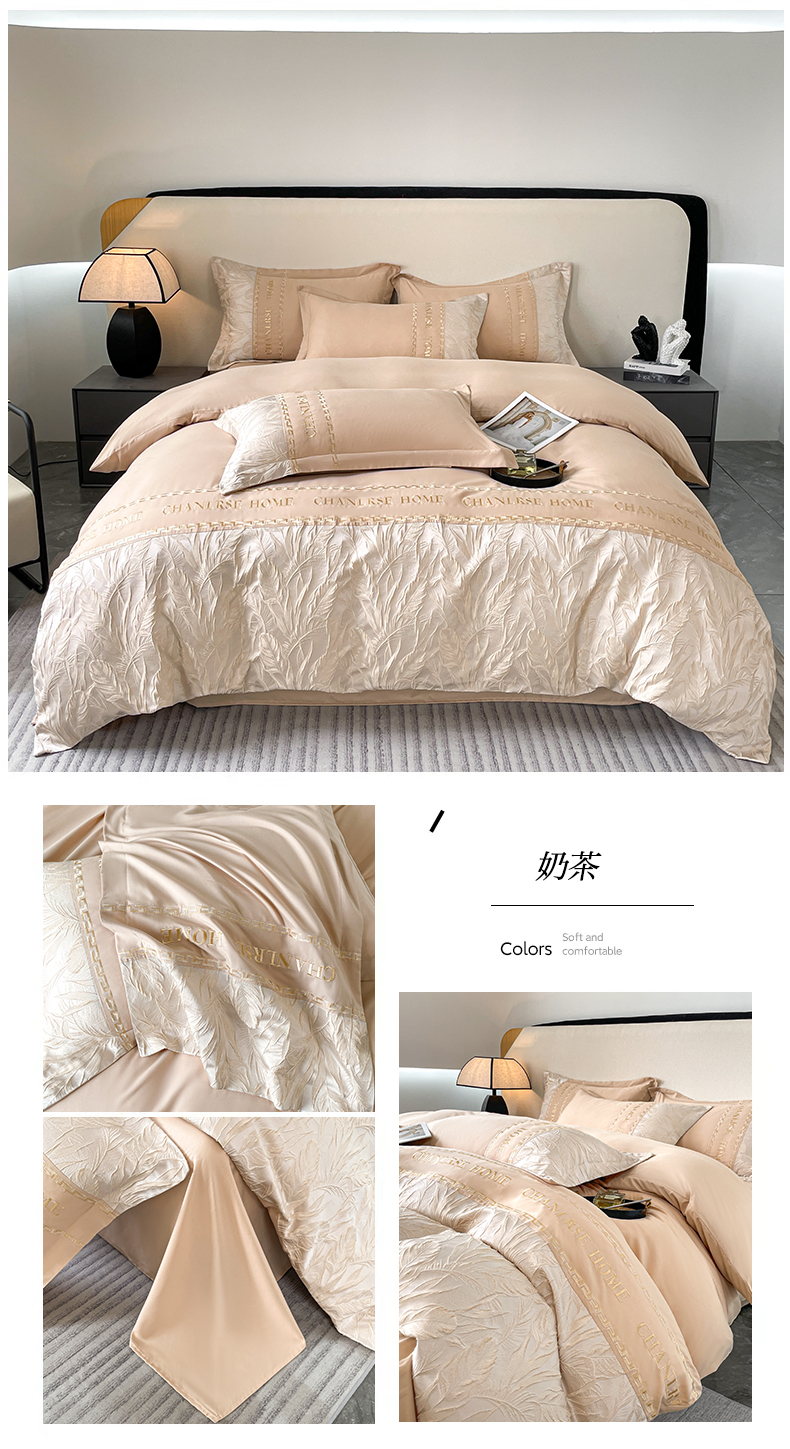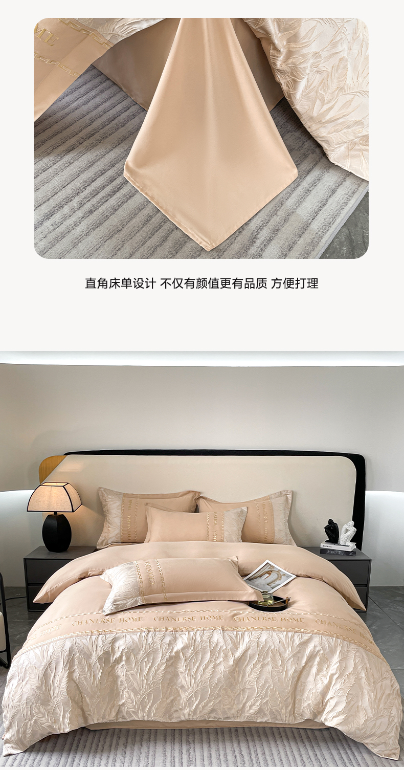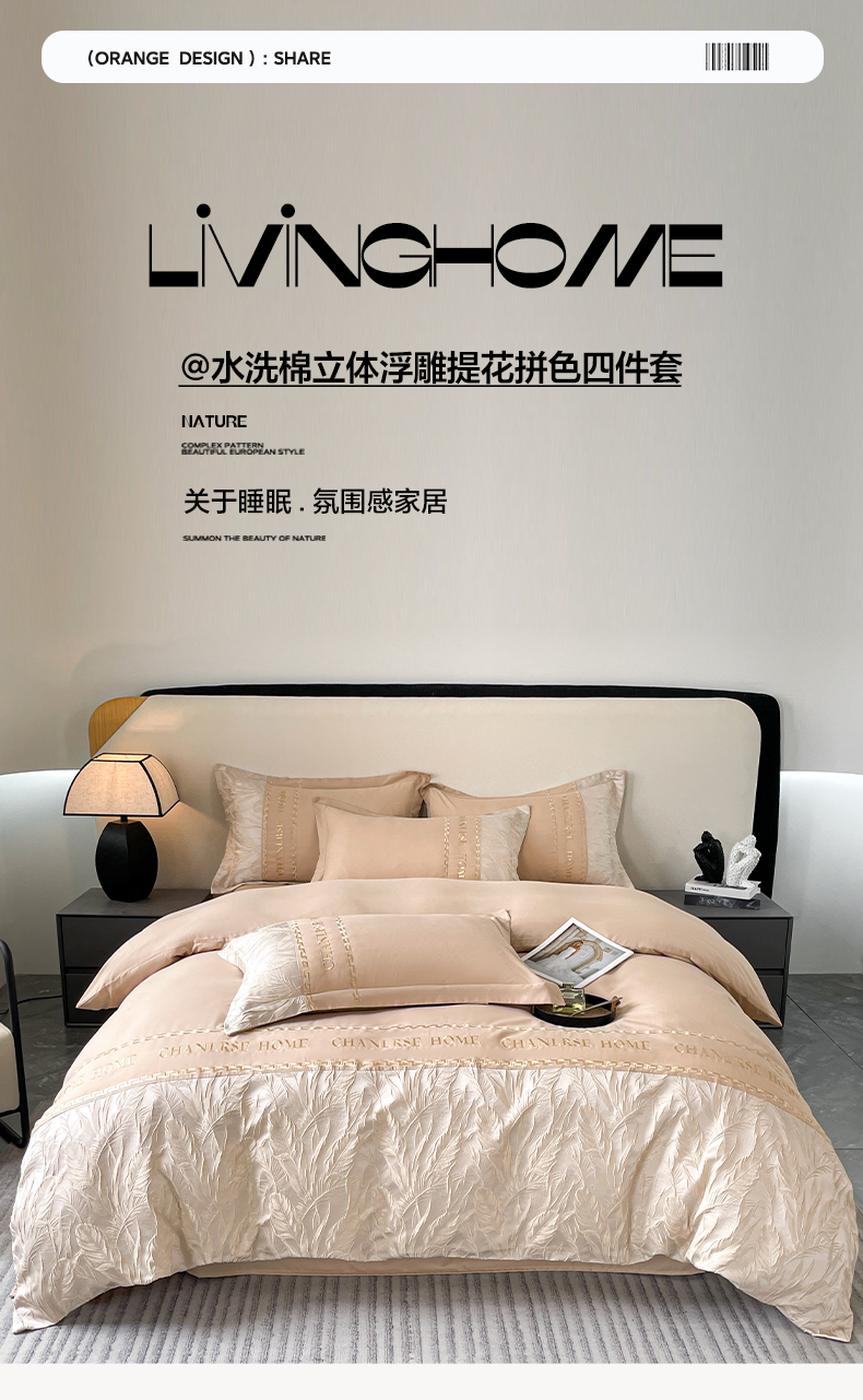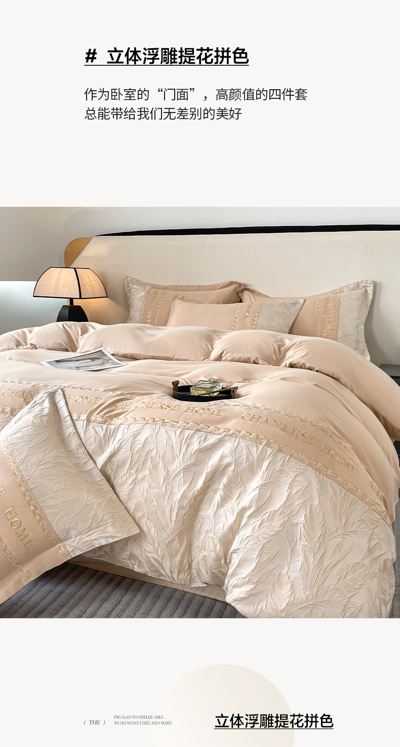 商品名称:花愿(原花纪) 2025新款水洗棉立体浮雕提花拼色四件套-艾米娅 奶茶