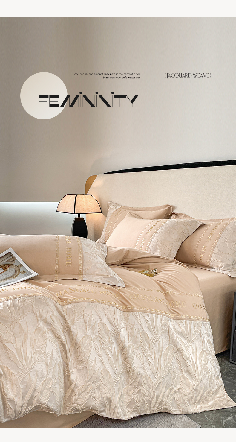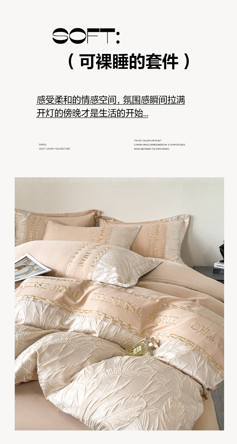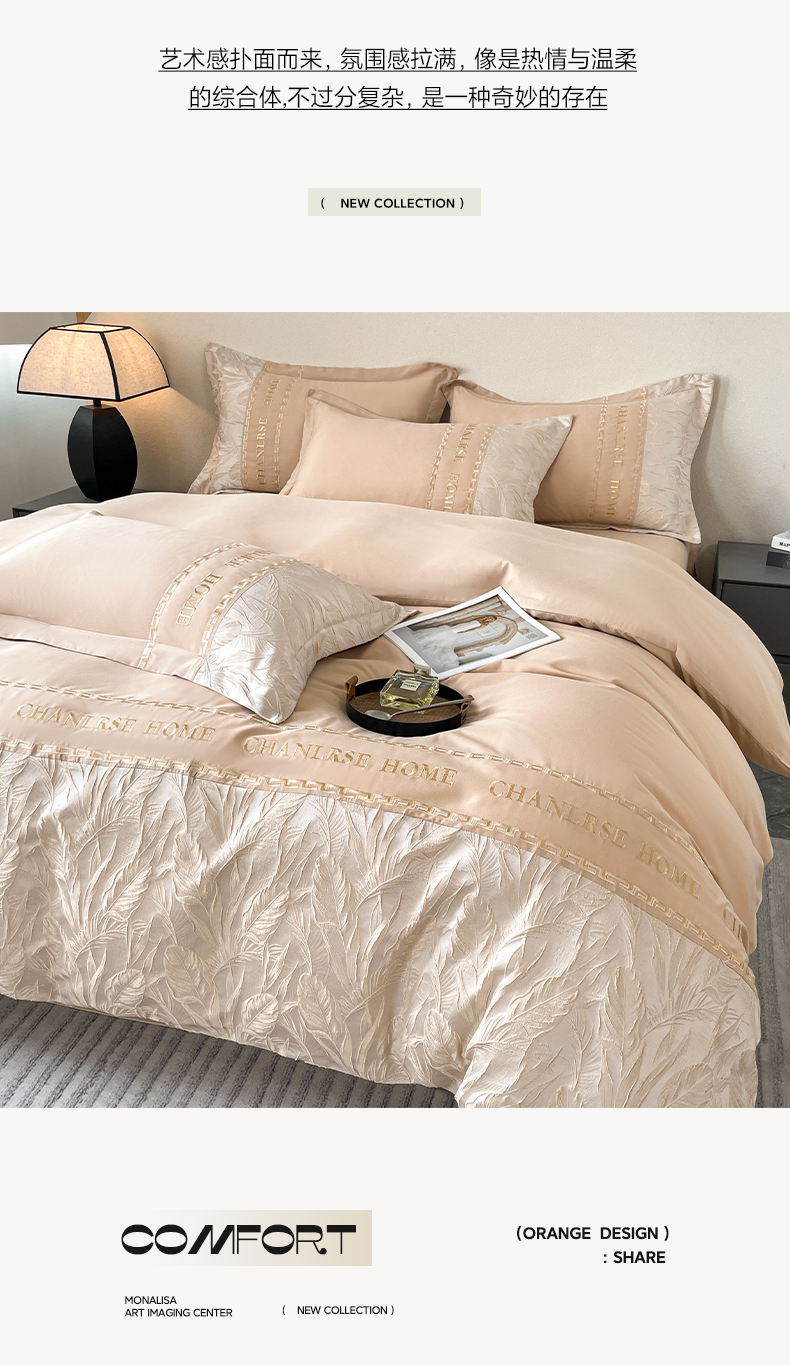 商品名称:花愿(原花纪) 2025新款水洗棉立体浮雕提花拼色四件套-艾米娅 奶茶