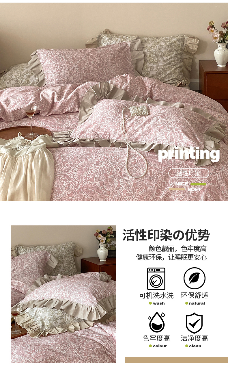 (总)窝米 2025新款数码印花100支长绒棉纯棉工艺花边款四件套-晚意,晚意