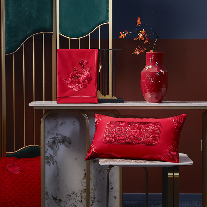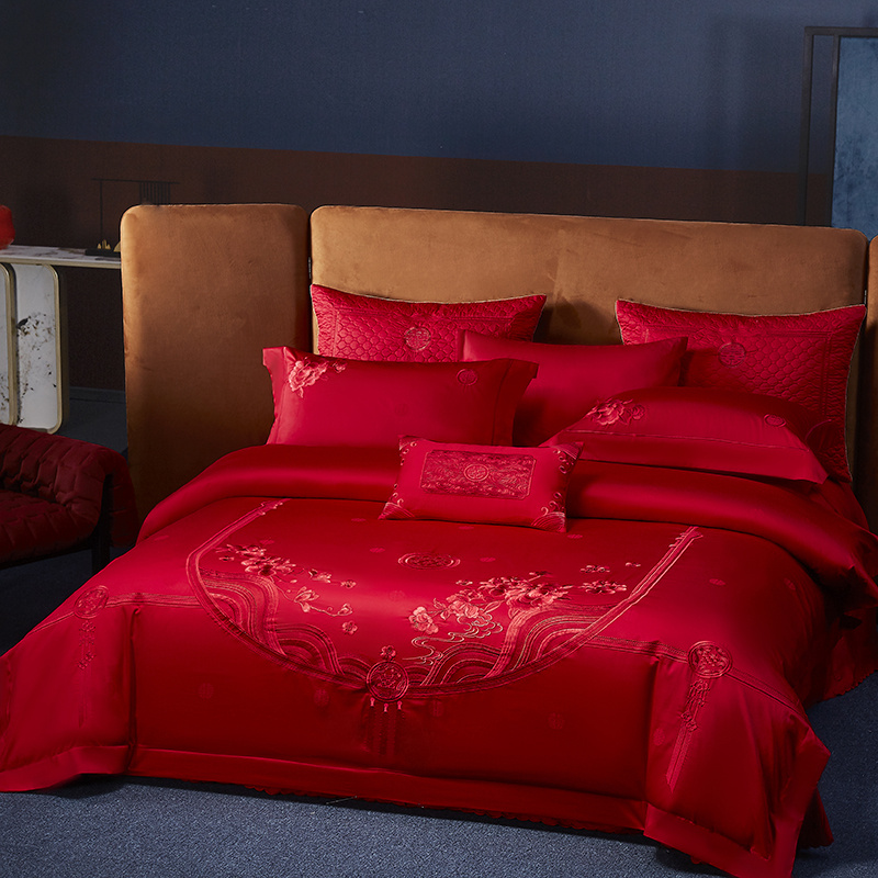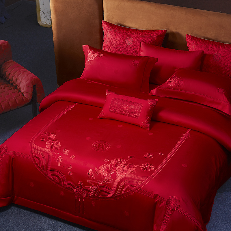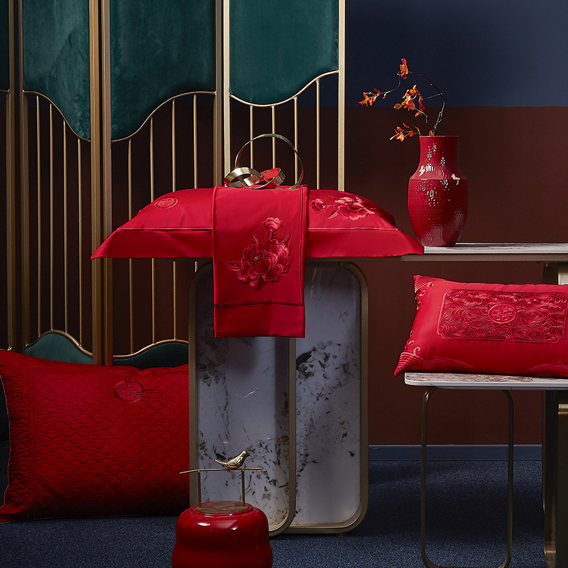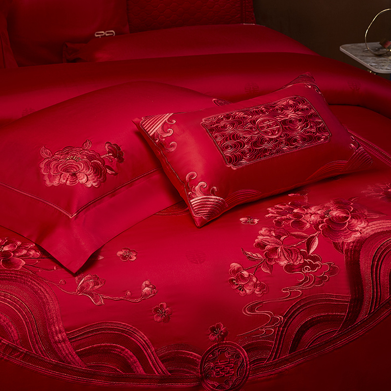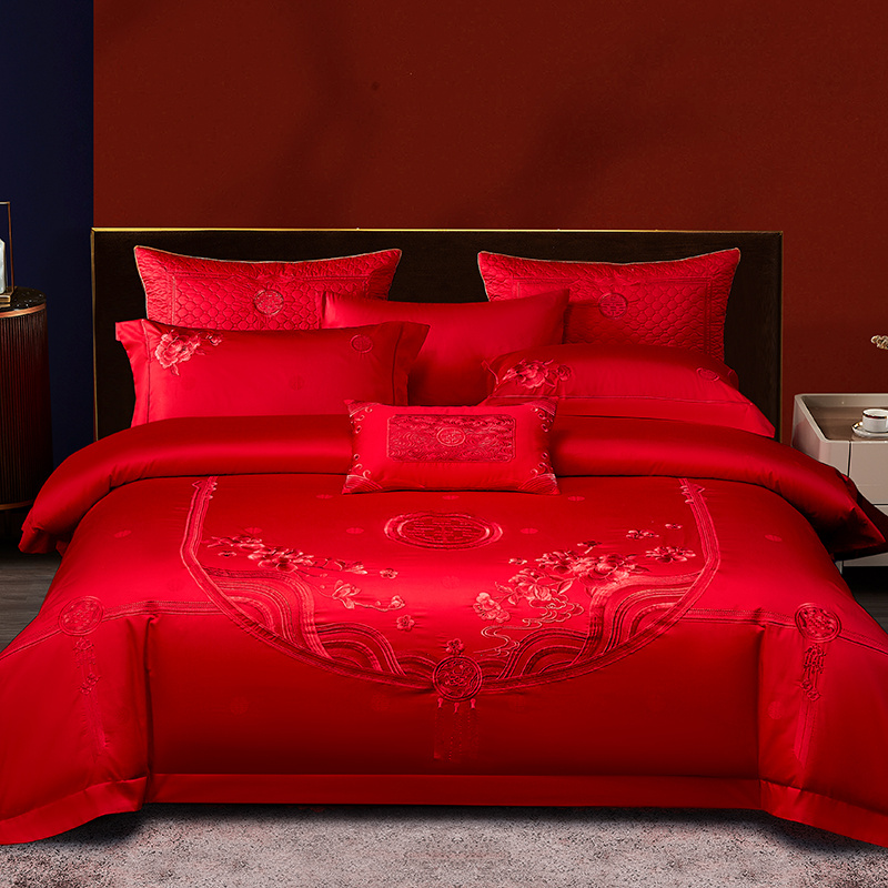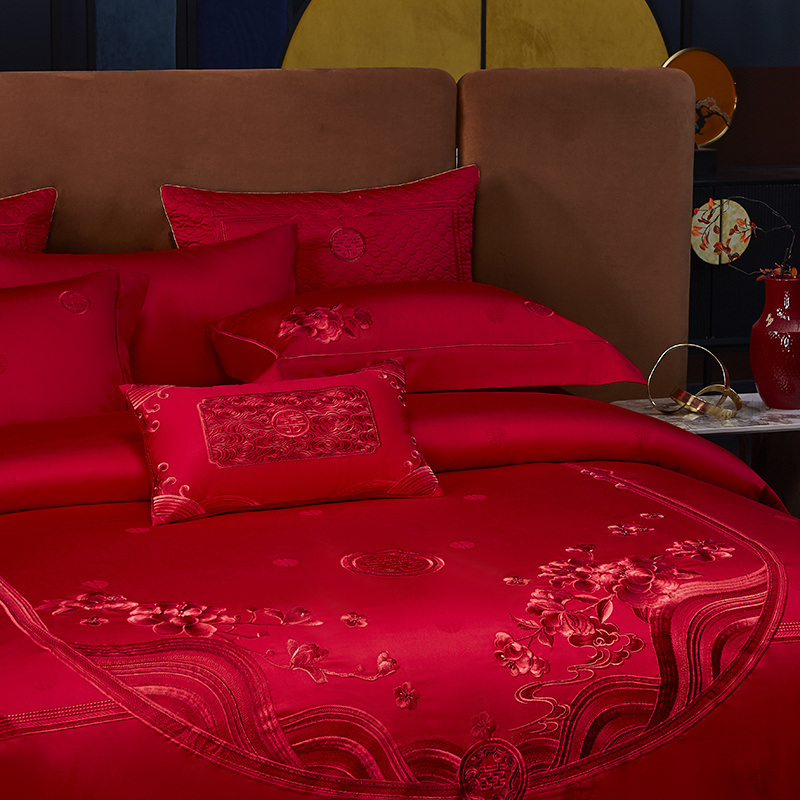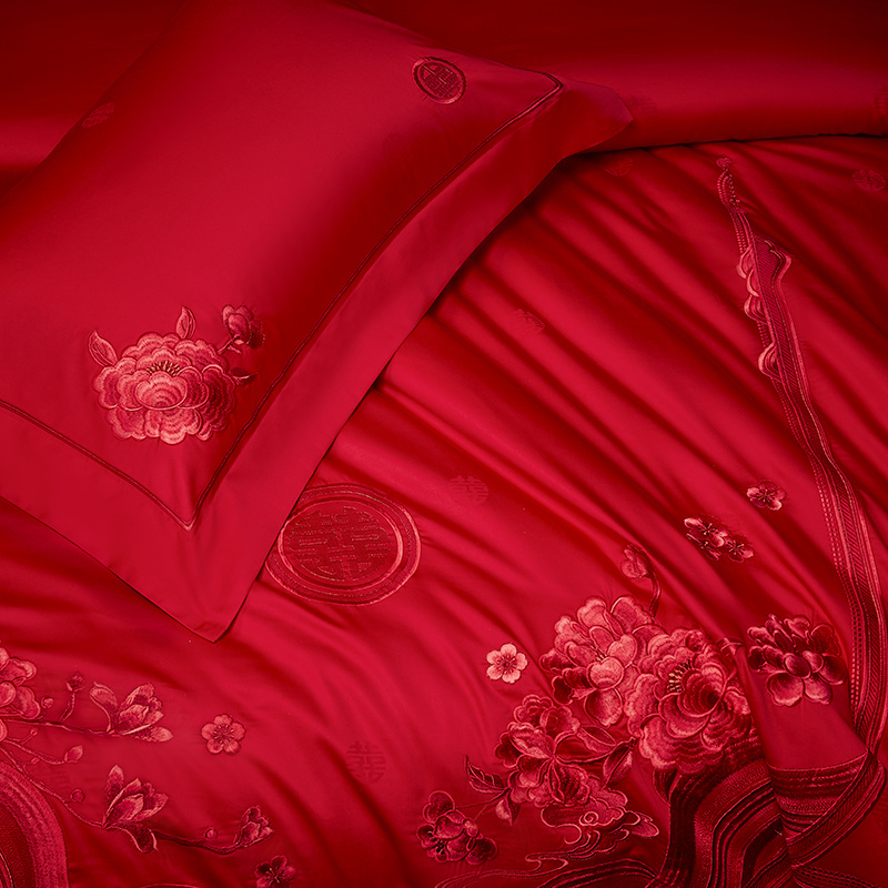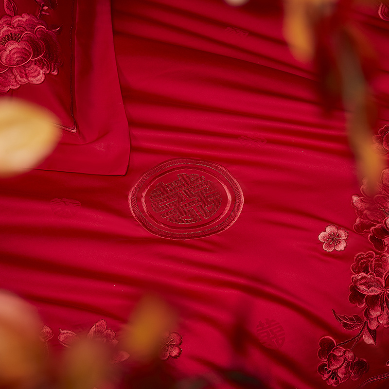 当前位置: 91家纺网 > 商品网购 > 床品套件 > 四件套 > 婚庆四件套 > 高大尚 2025新品长绒棉提花唯美复古中式刺绣轻奢系列婚庆款多件套 福气满满-红