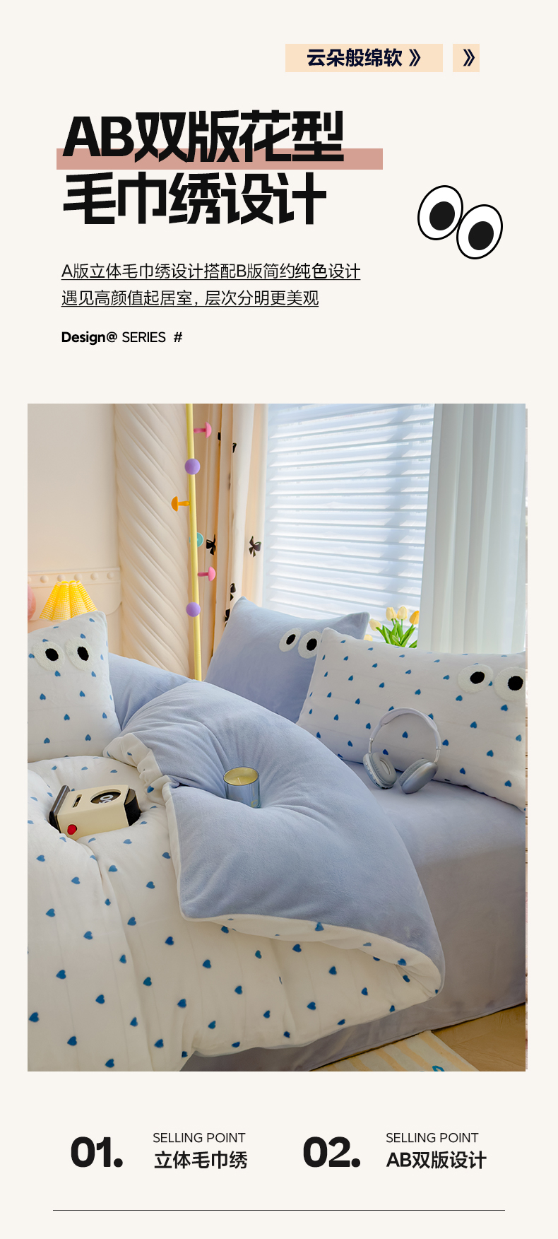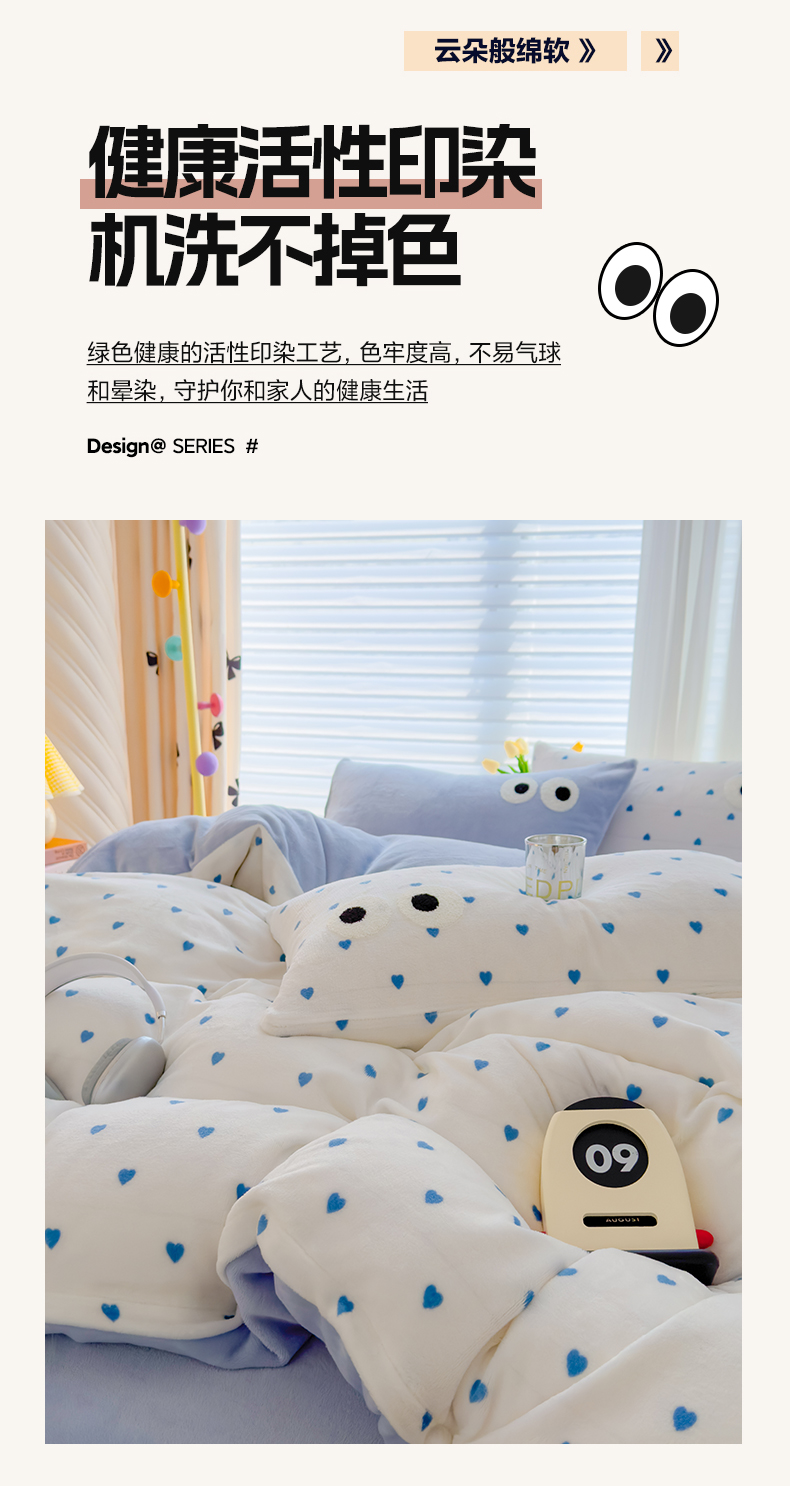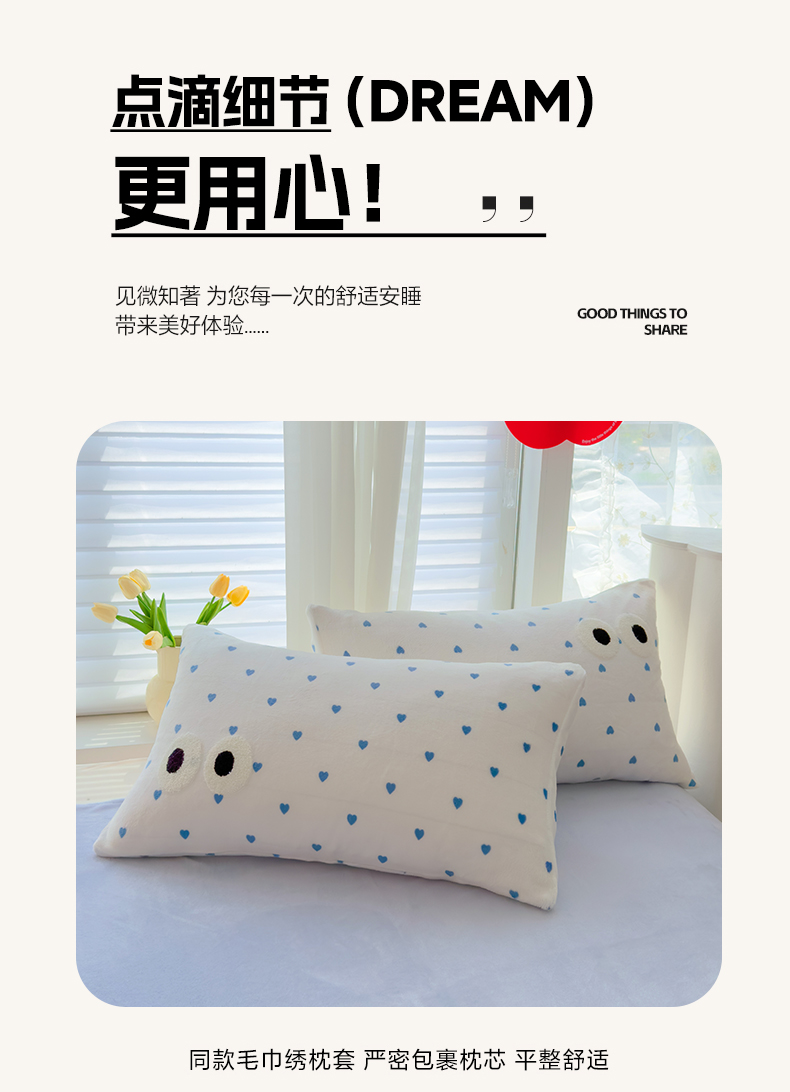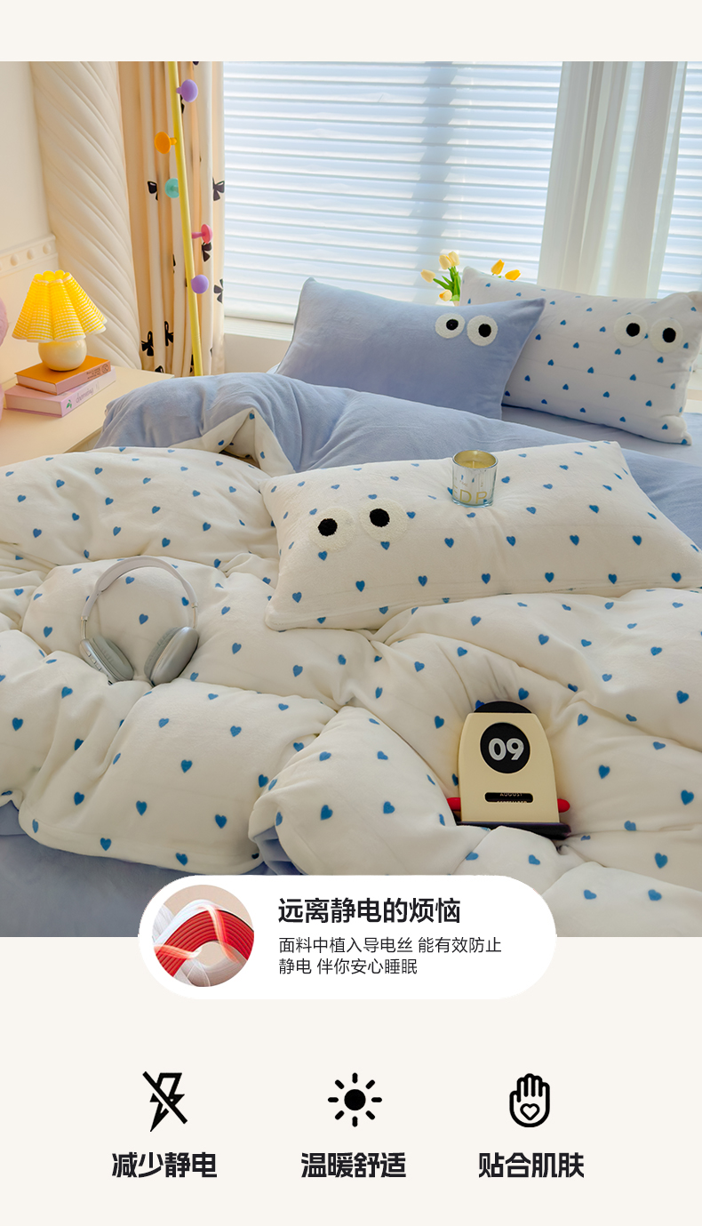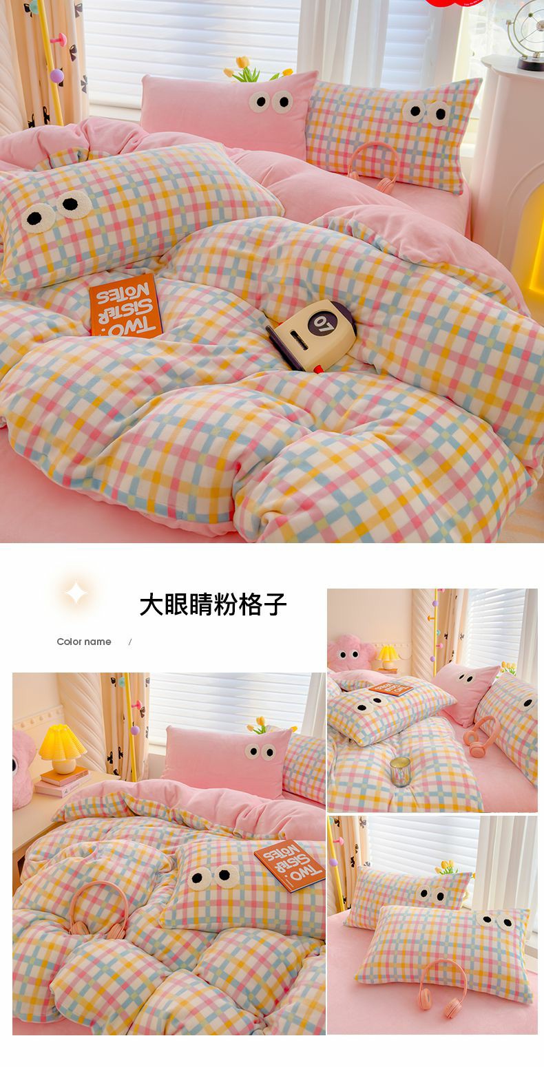 当前位置: 91家纺网 > 商品网购 > 床品套件 > 四件套 > 牛奶绒四件套 > 2024新款牛奶绒毛巾绣四件套-超大大眼睛系列 大眼睛蓝爱心