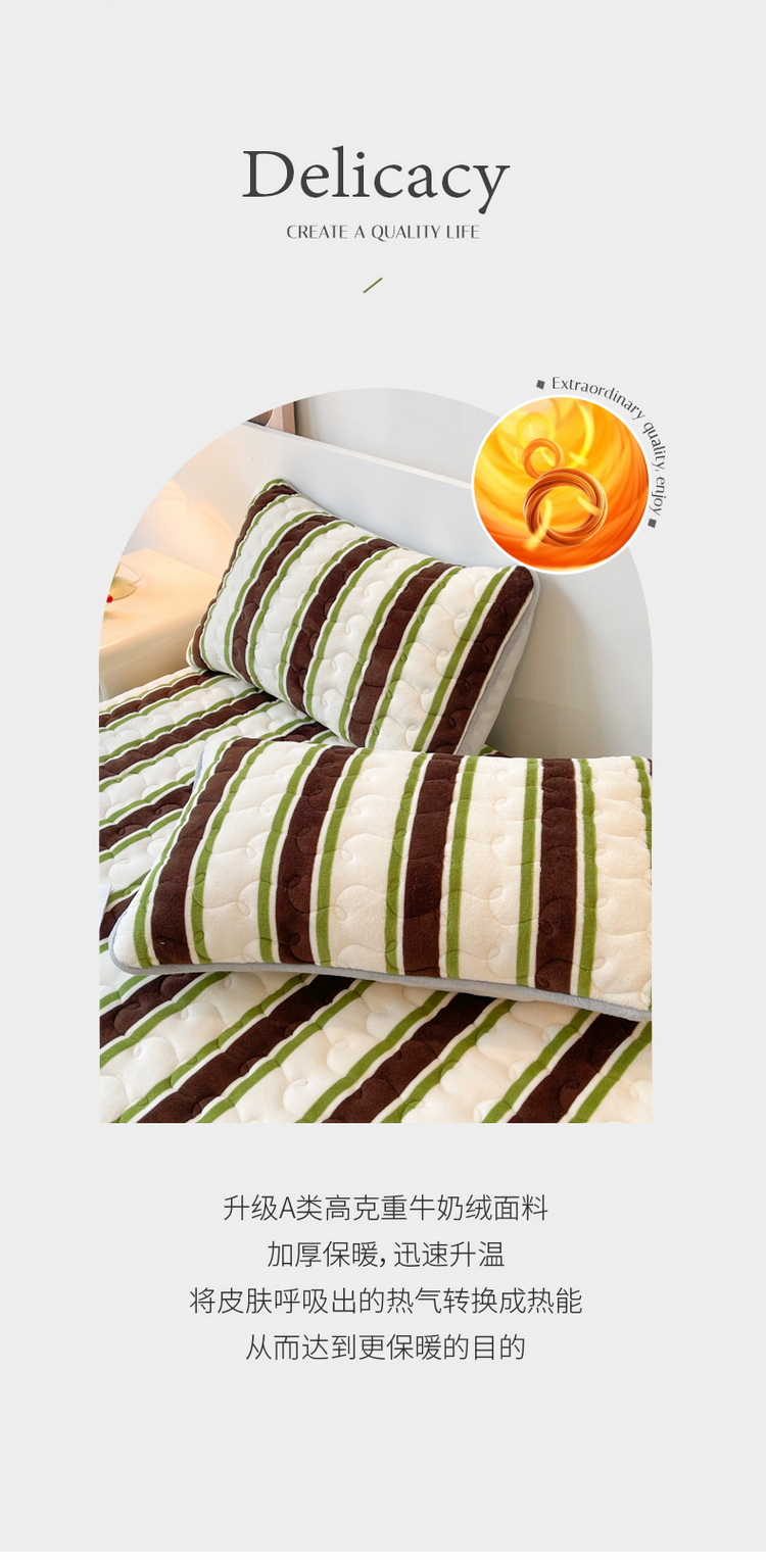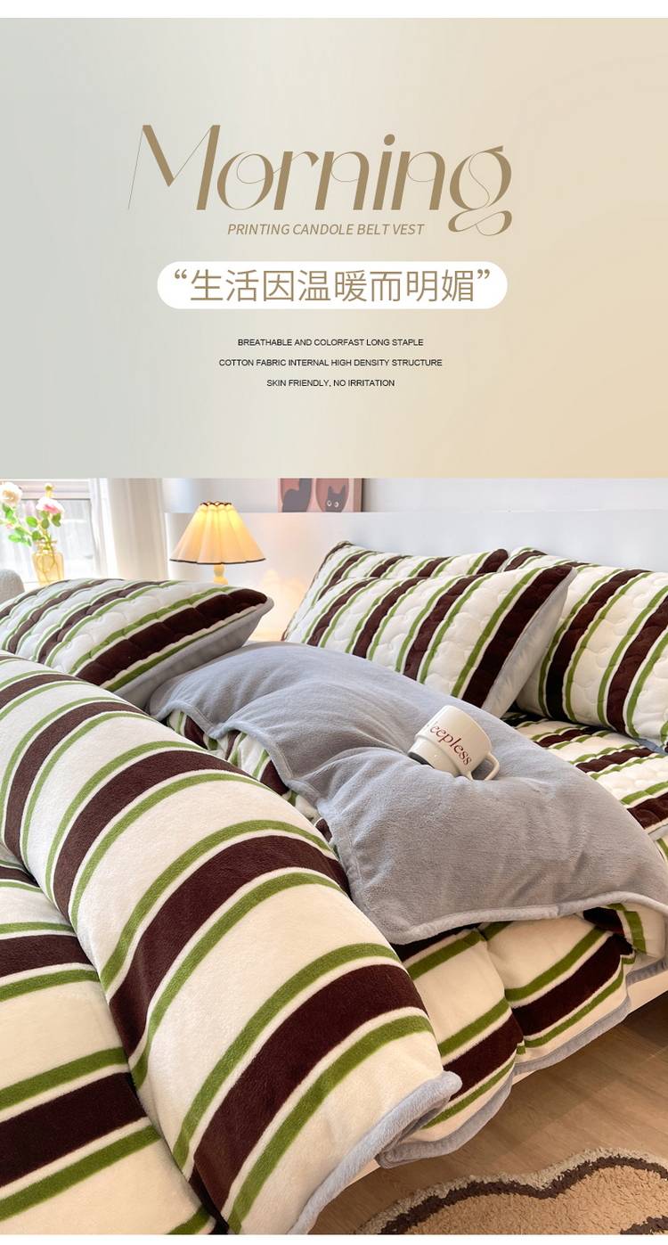 2024秋冬A类牛奶绒加厚夹棉床笠+牛奶绒被套四件套印象
