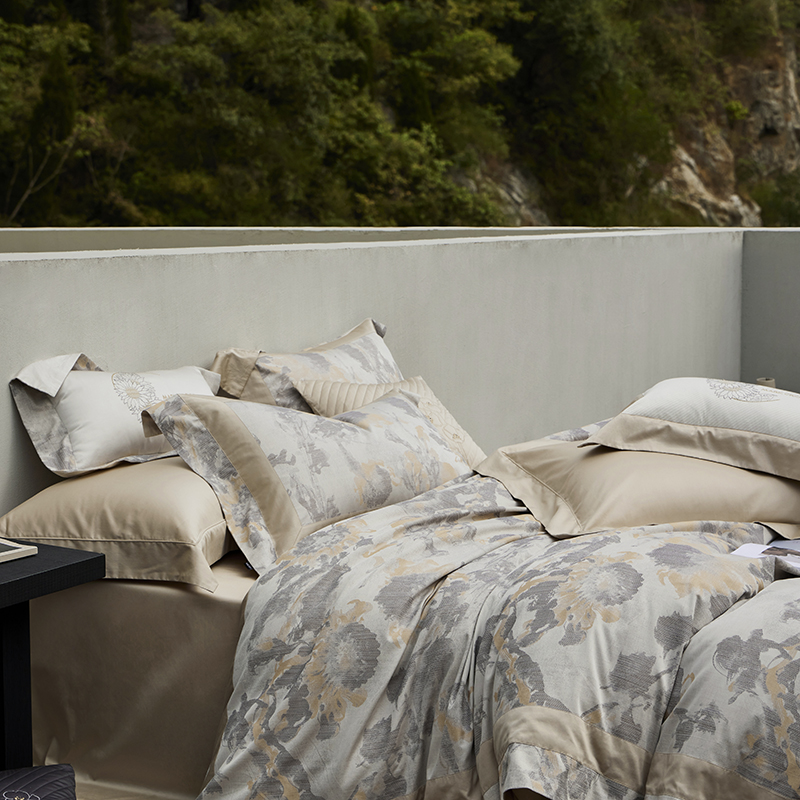 佳汐蓝家纺 2024新款80支艺术家高支高密色织大提花四件套 泊洛花园