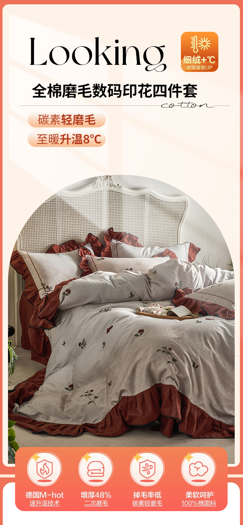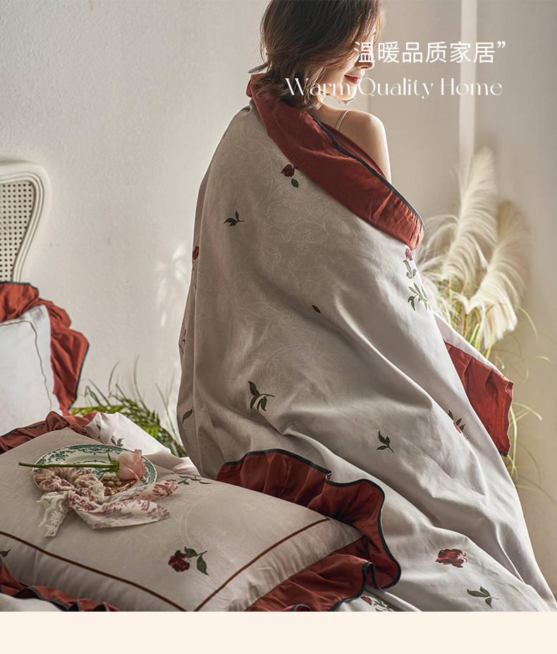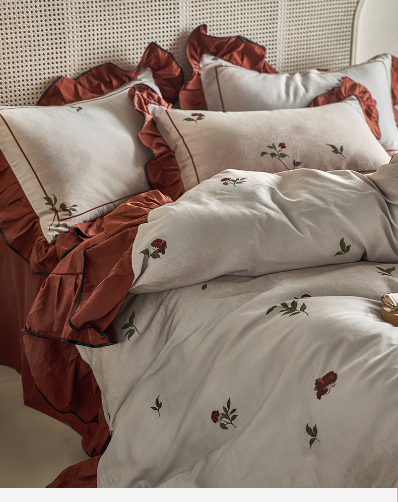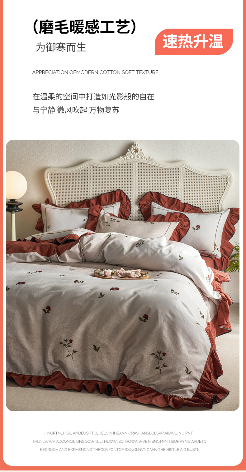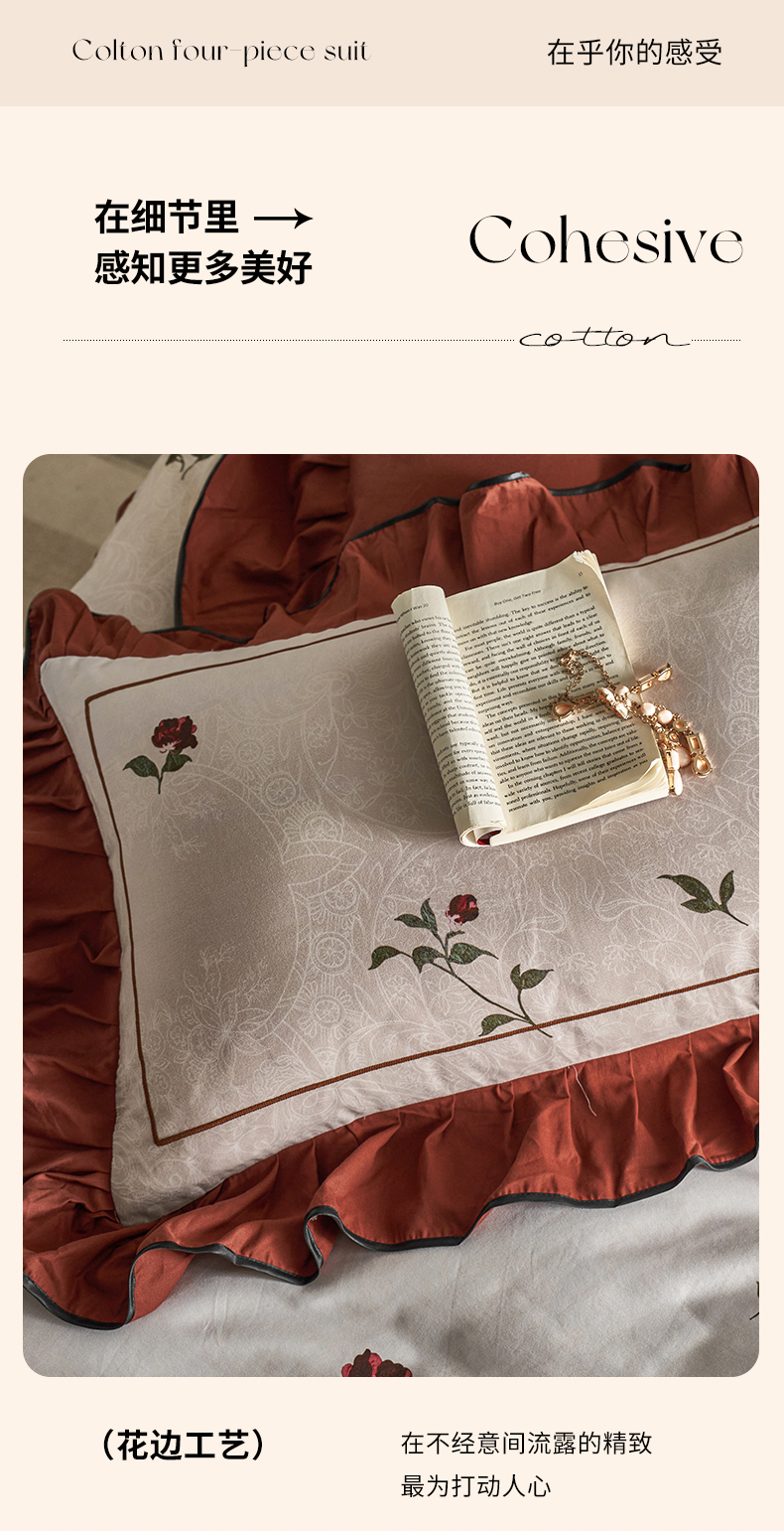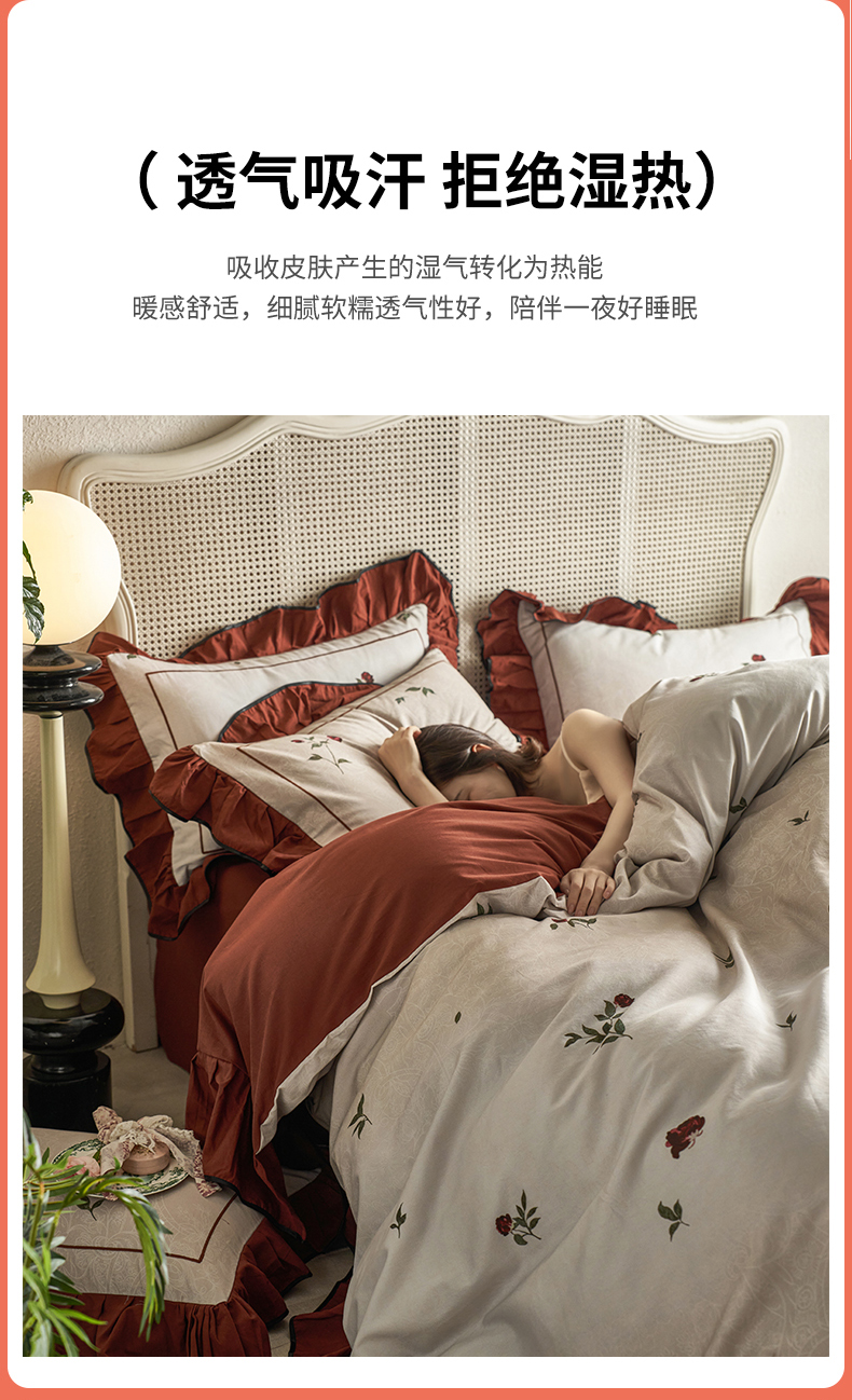 宜代光年 2024新款法式花边全棉磨毛工艺款四件套 初倾-红
