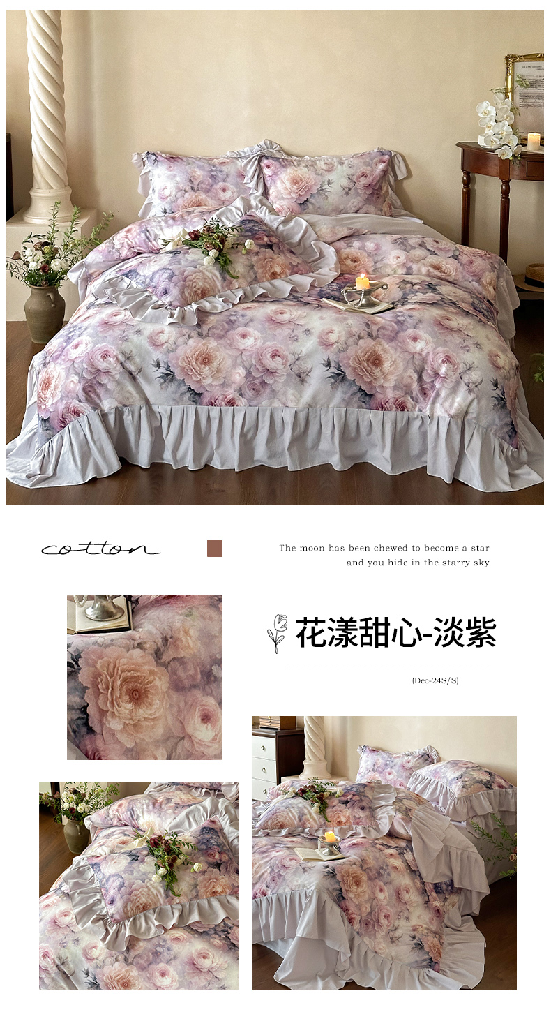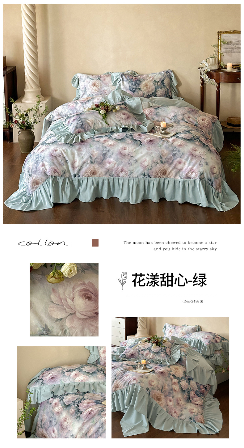 (总)宜代光年 2024新款法式花边全棉磨毛工艺款四件套,花漾甜心-淡紫,艾洛蒂-咖,艾洛蒂-绿,初倾-红,初倾-绿,花漾甜心-绿