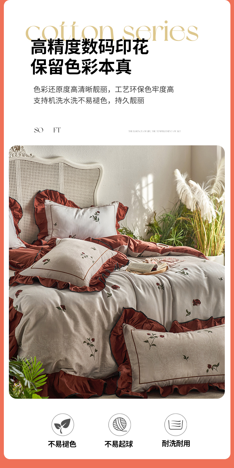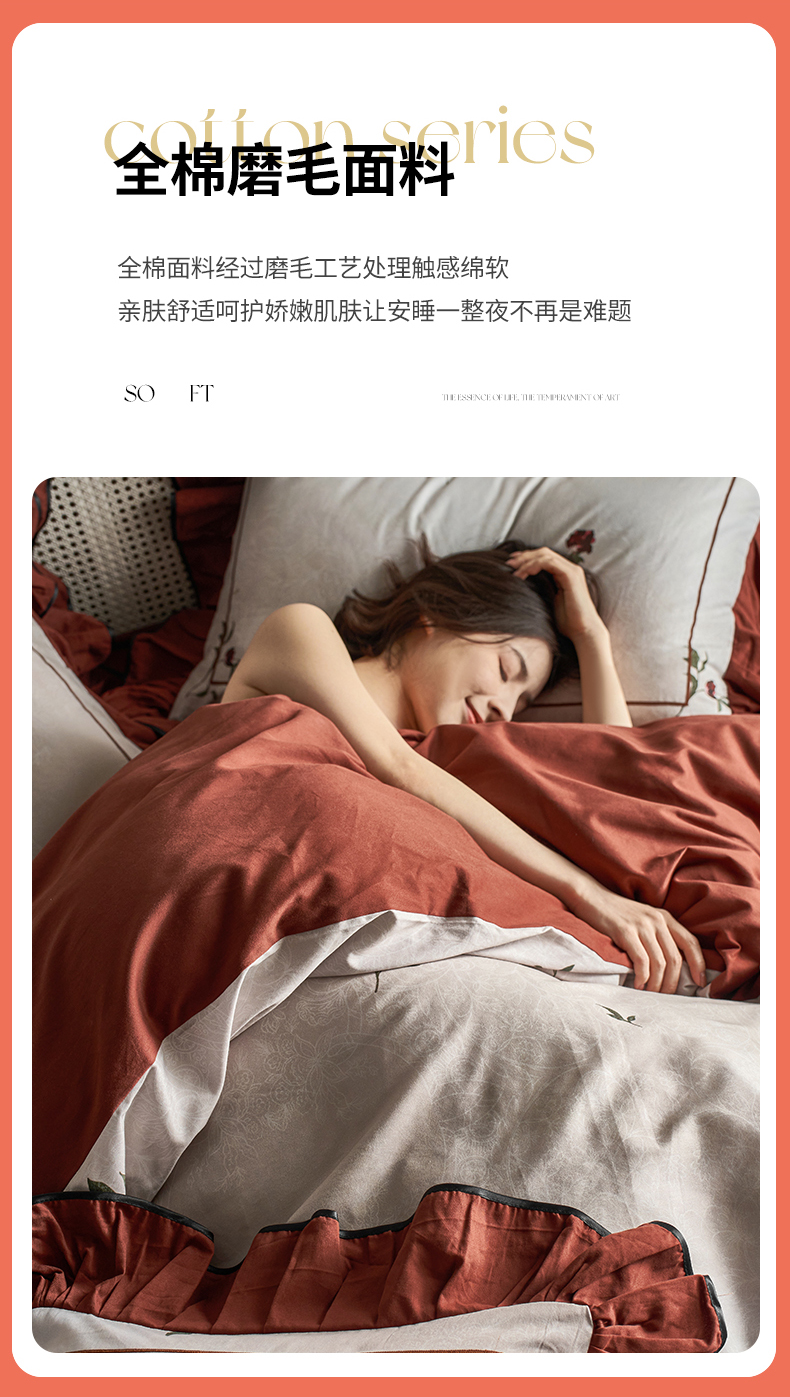 商品名称:宜代光年 2024新款法式花边全棉磨毛工艺款四件套 初倾-红