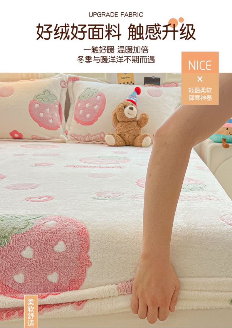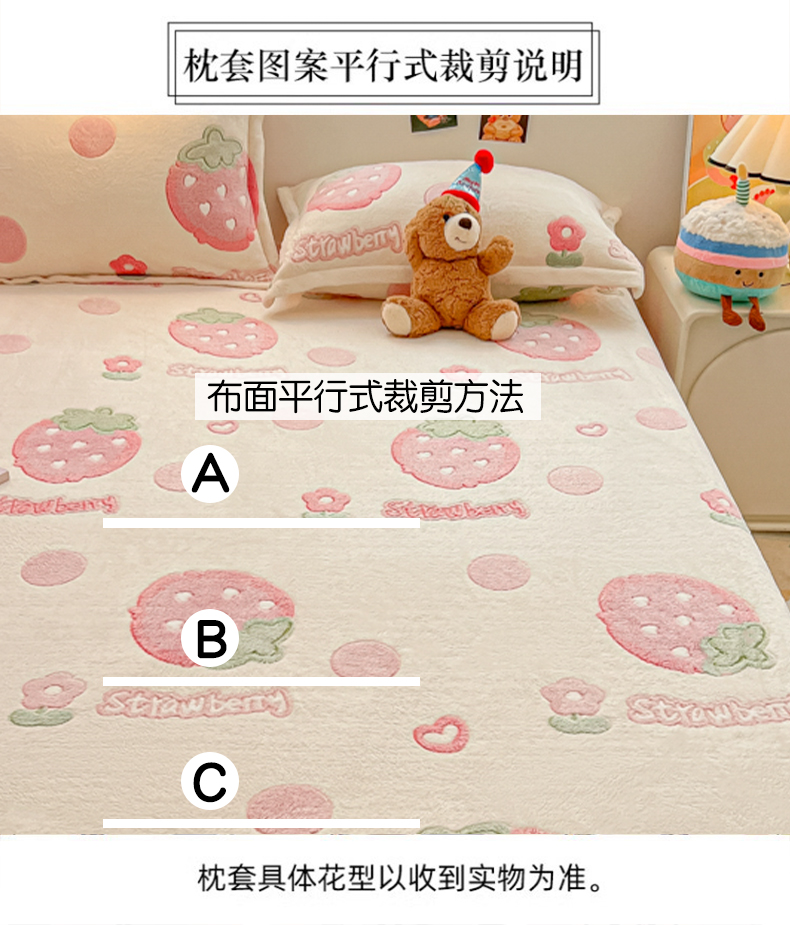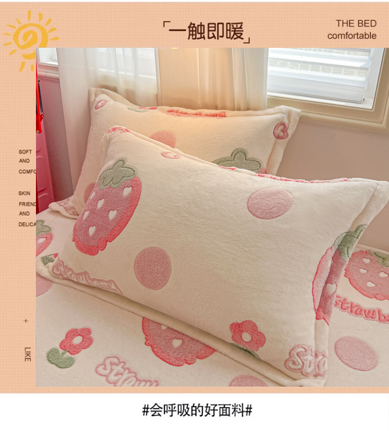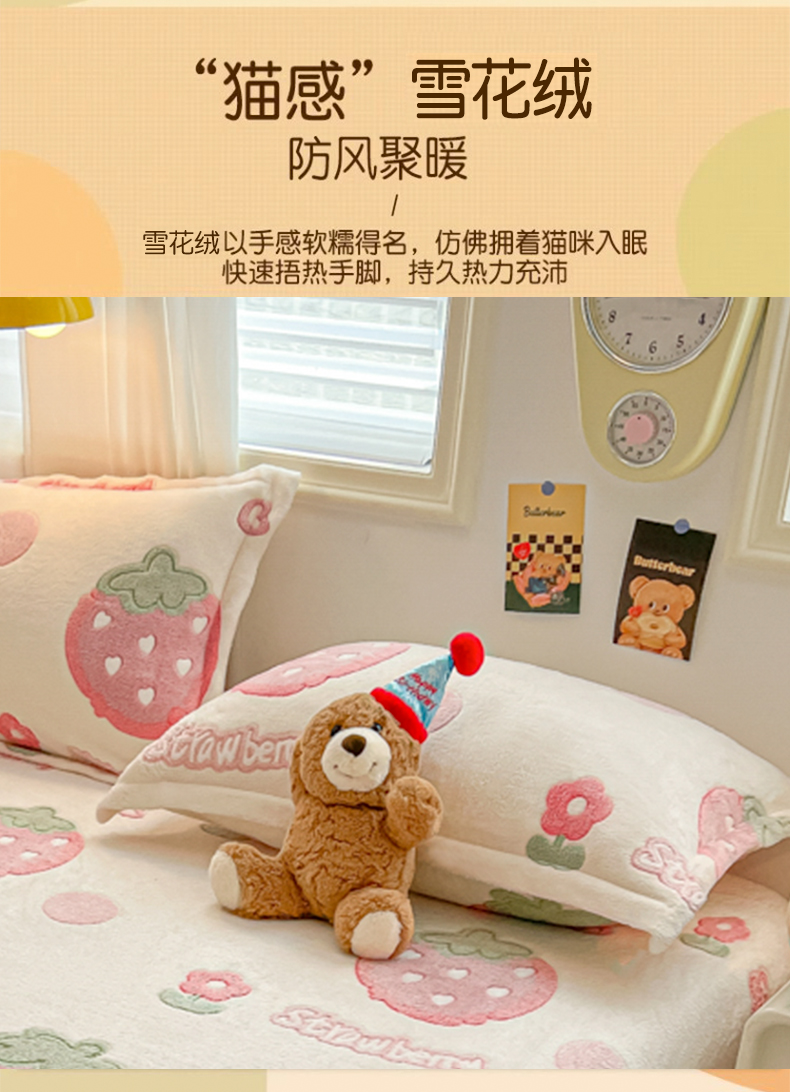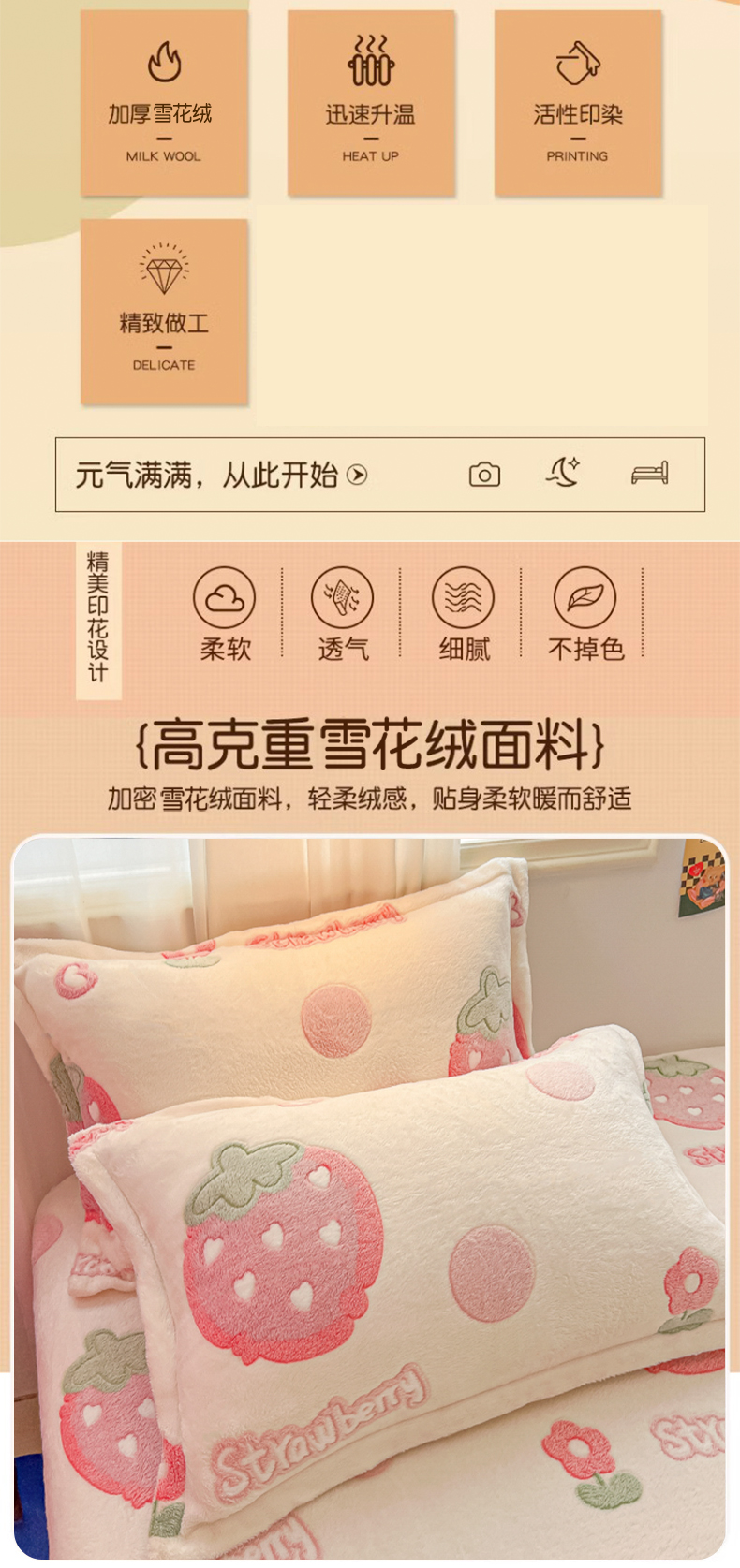 韩巢家纺 2025新款高克重印花牛奶绒床品四件套 爱心小樱桃,爱心小樱桃
