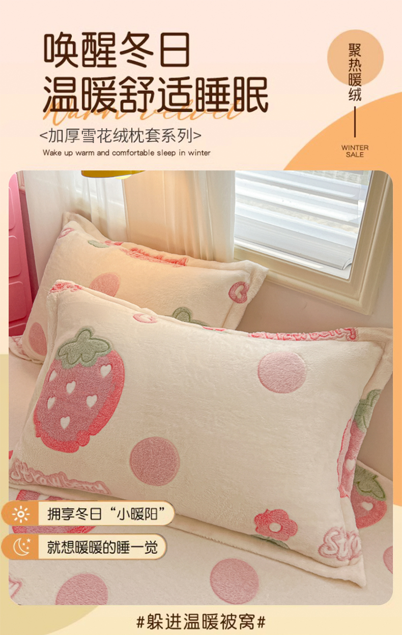 韩巢家纺 2024新款雪花绒枕套一对装 甜蜜