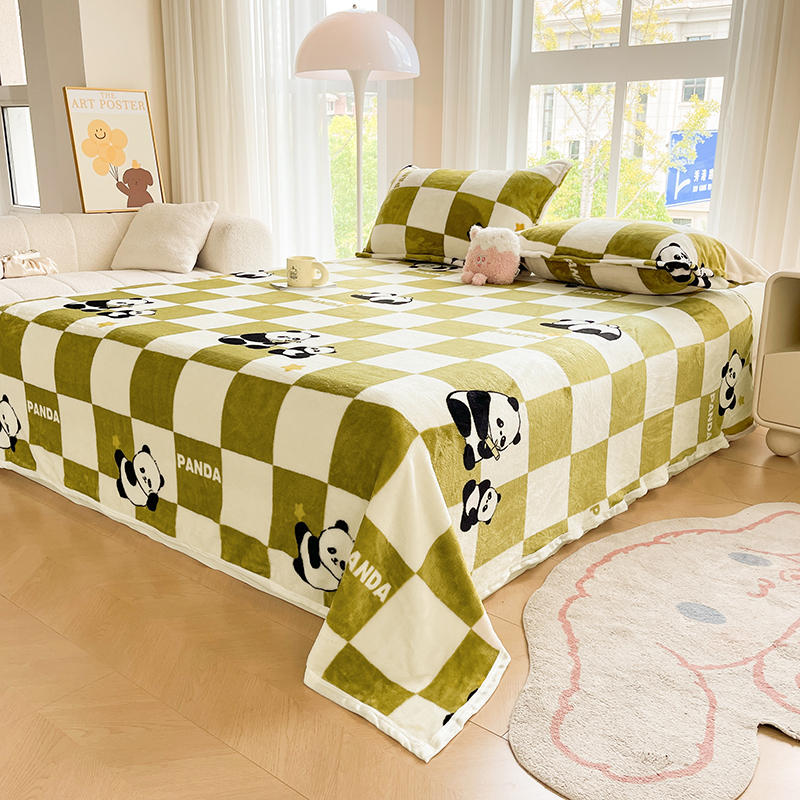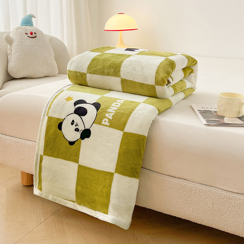 千荨 2024新款多功能牛奶绒毛毯 格子熊猫