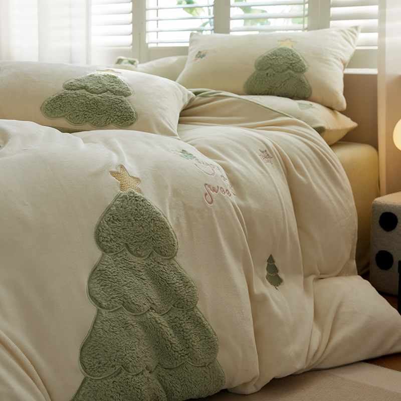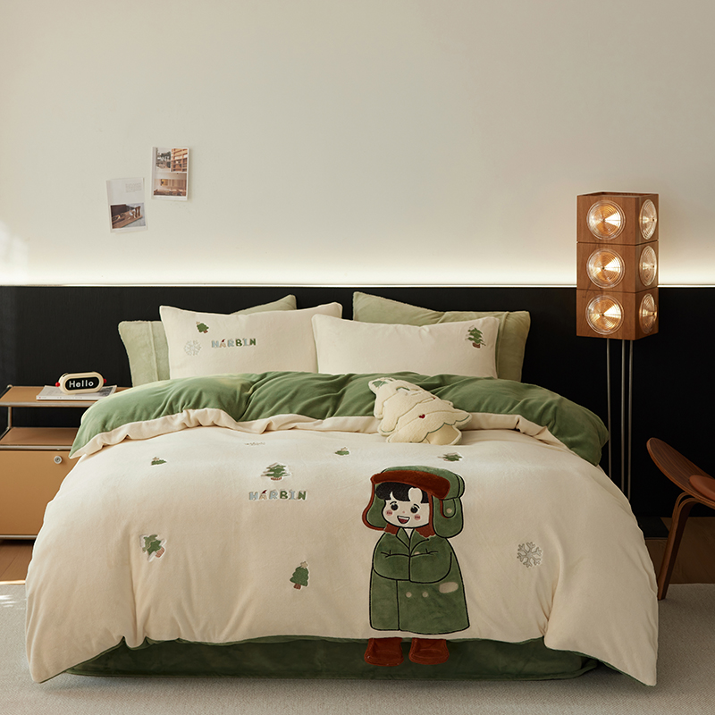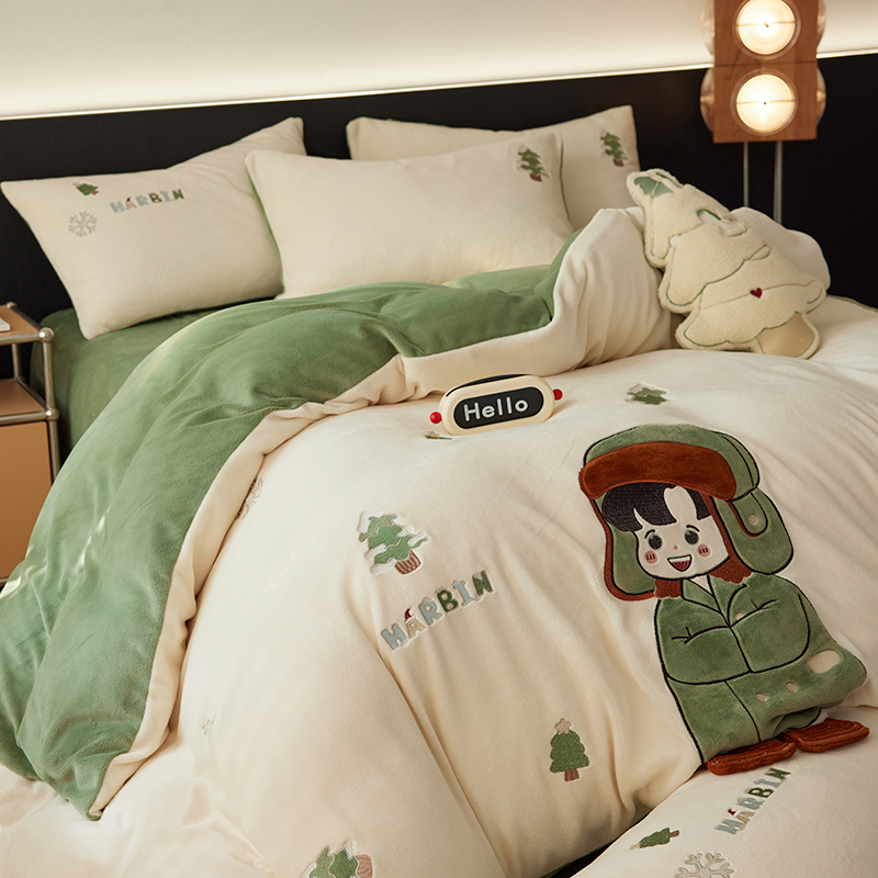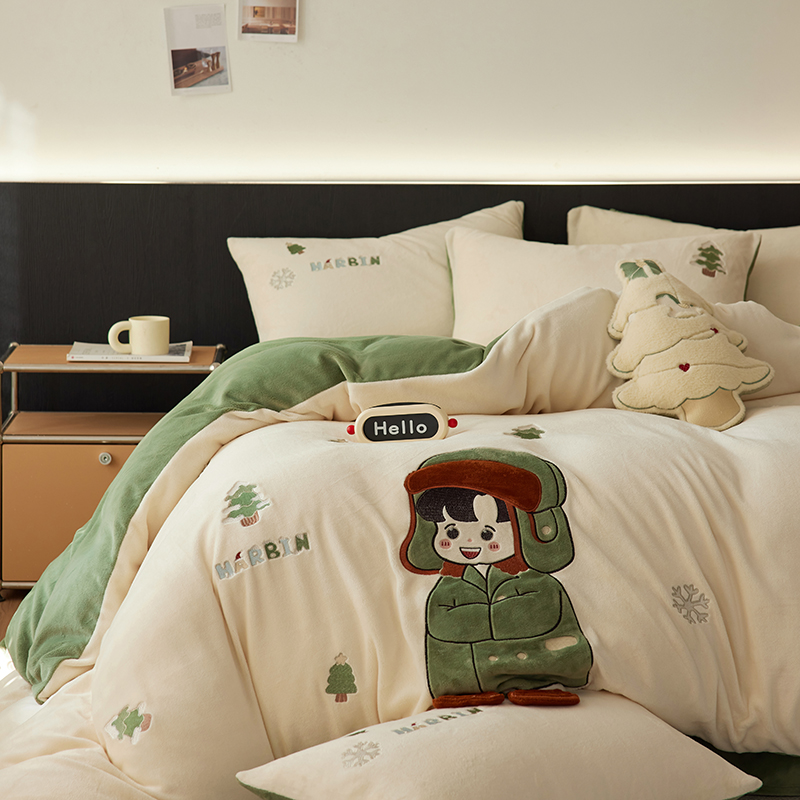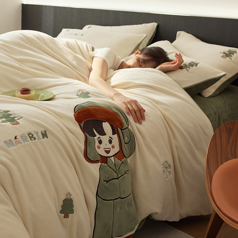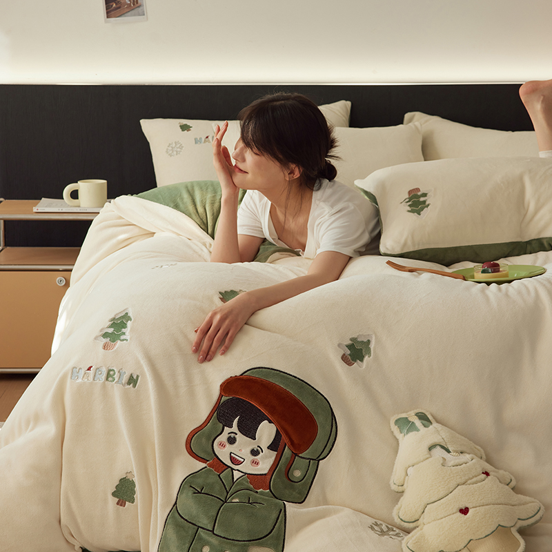 2024新款牛奶绒立体贴布绣四件套 大衣小土豆