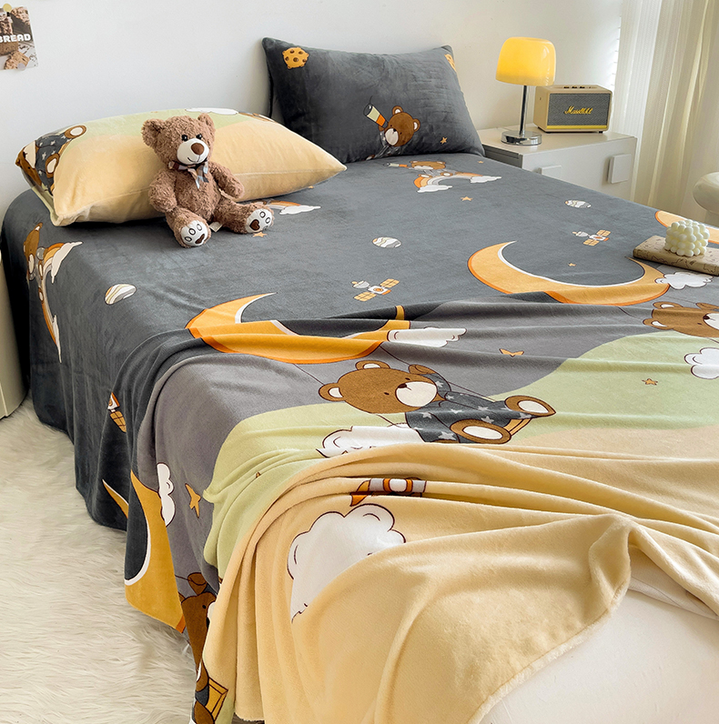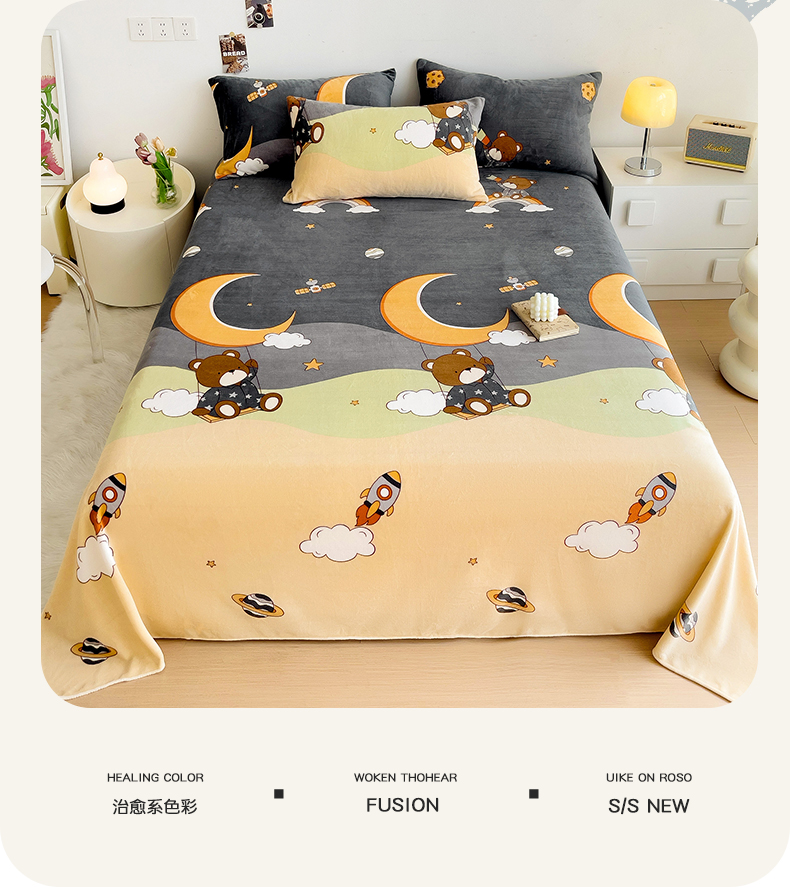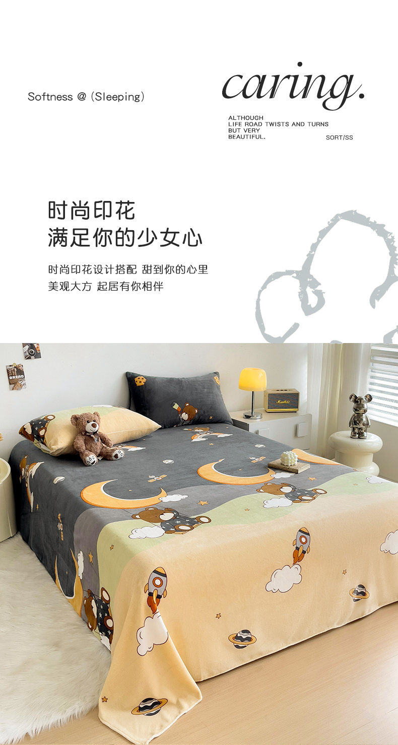 艾橙家纺 2024新款A类加厚牛奶绒印花床单 梦星空