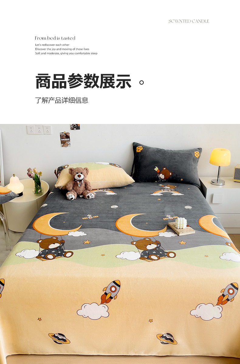 商品名称:艾橙家纺 2024新款A类加厚牛奶绒印花床单 梦星空