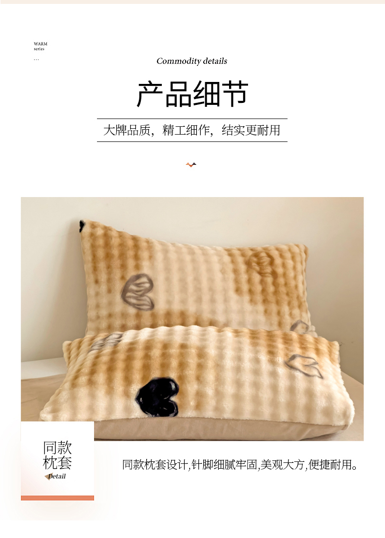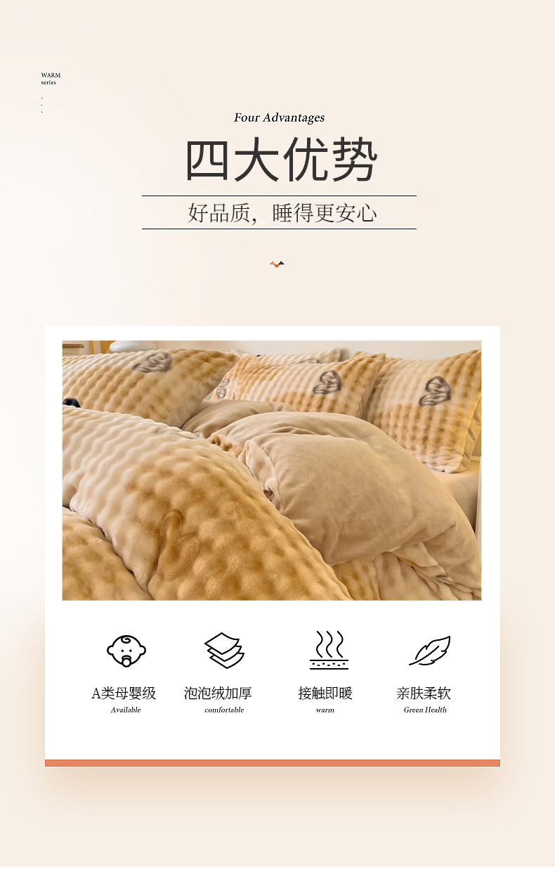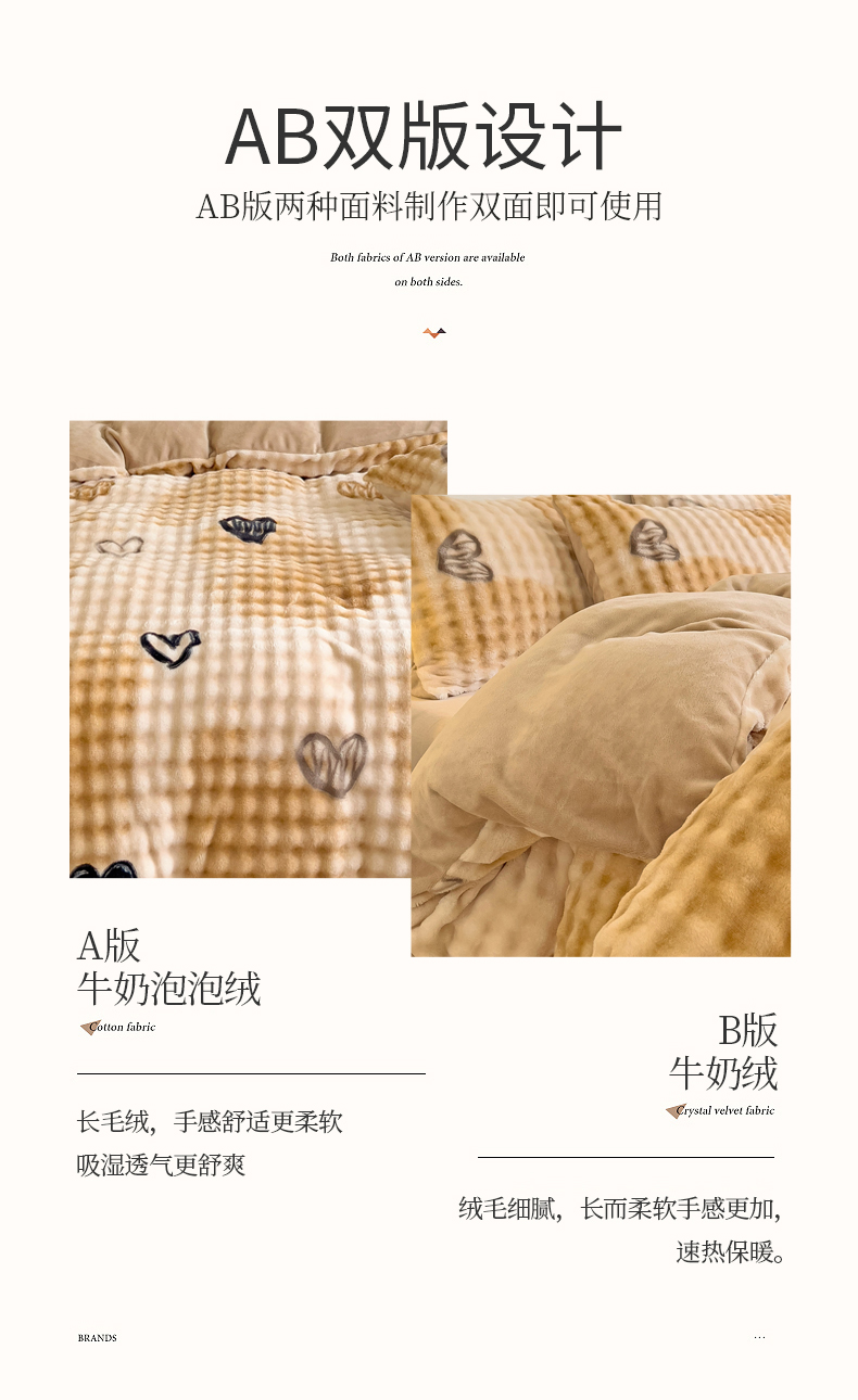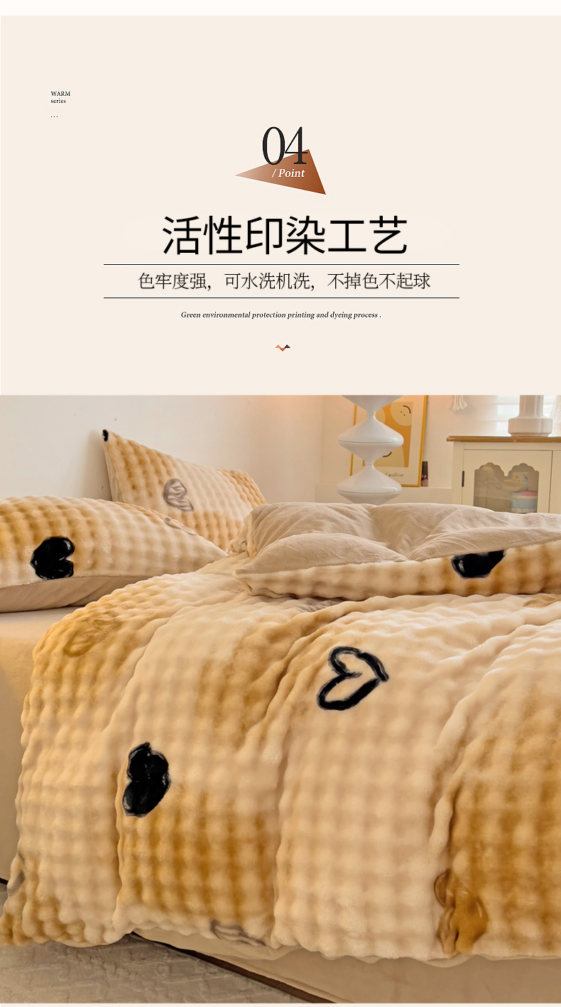 商品名称:金爱家 2024新款A类高克重云朵牛奶泡泡绒四件套 泡泡绒-爱心咖