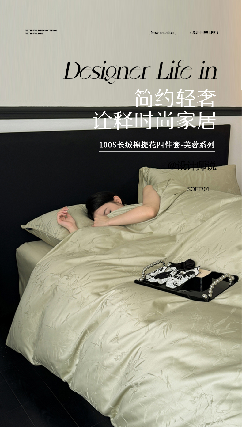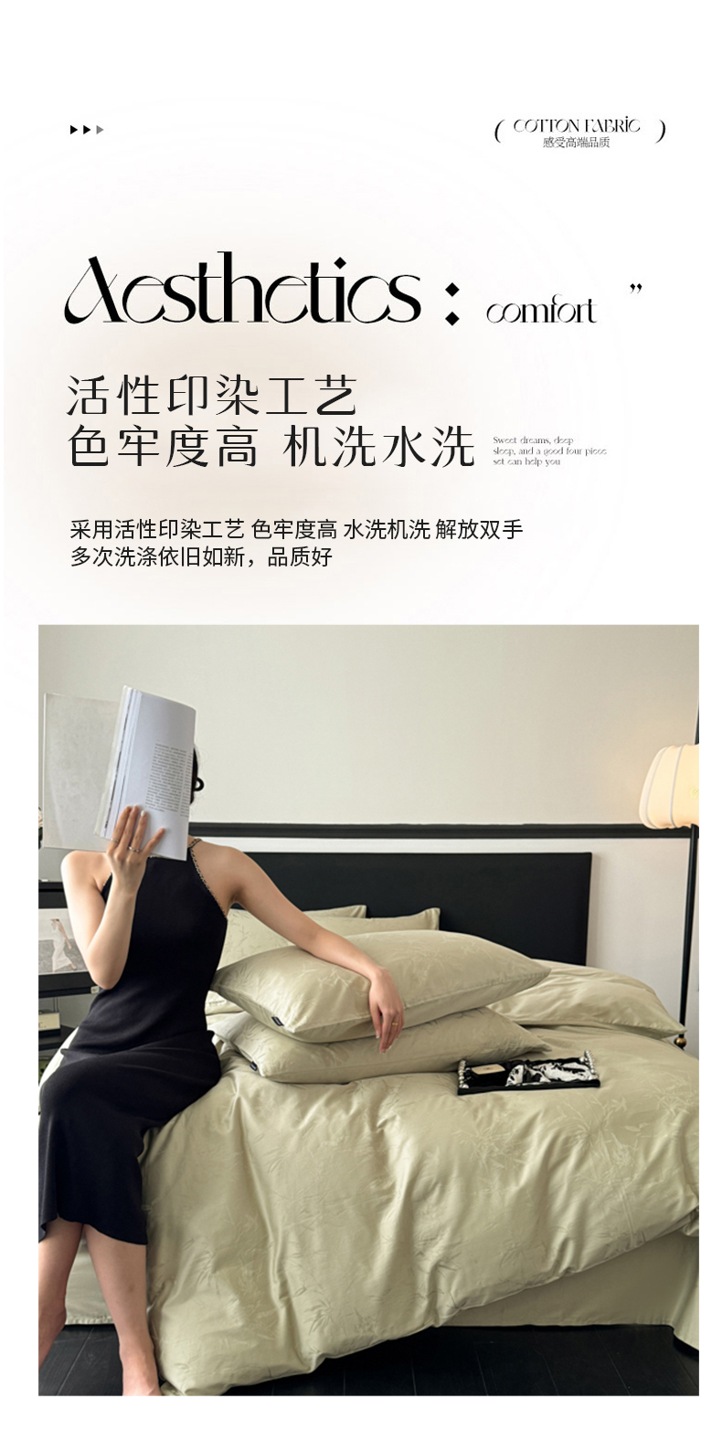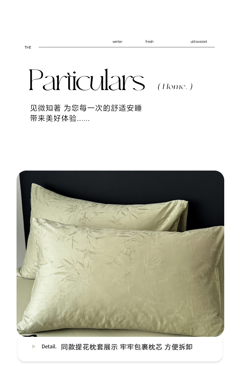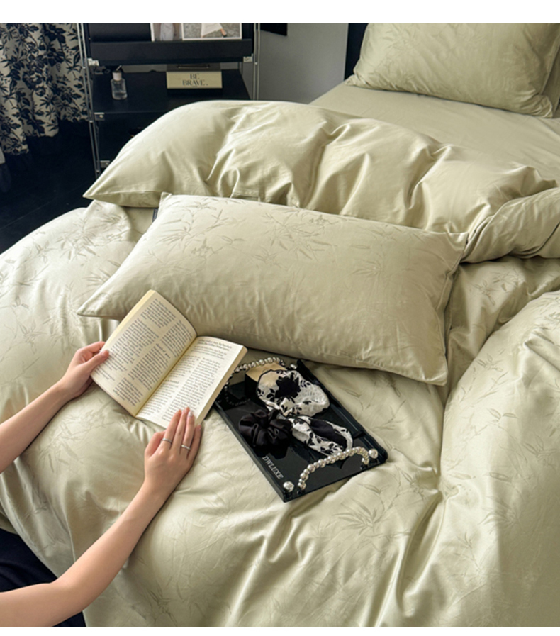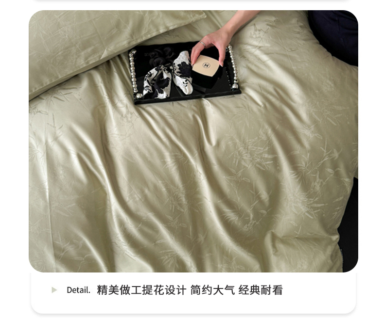 当前位置: 91家纺网 > 商品网购 > 床品套件 > 四件套 > 长绒棉四件套 > 若未家居 LOVEWE HOUSE 2025新款50S长绒棉提花四件套-芙蓉 竹雨-竹青