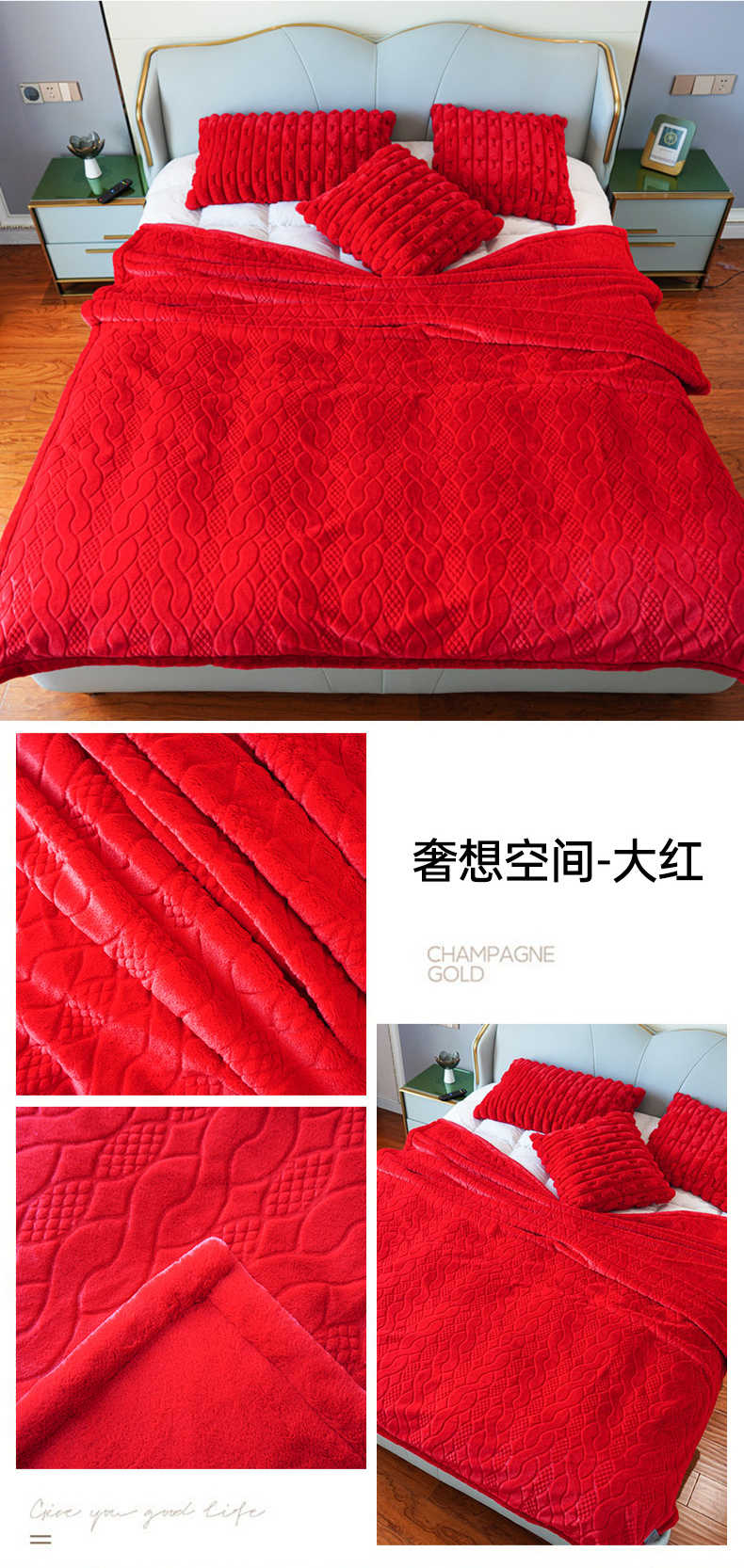 商品名称:尚品绵羊毛毯 2025新款轻奢高档仿皮草婚庆盖毯双层加厚毛毯-奢想空间 奢想空间-大红