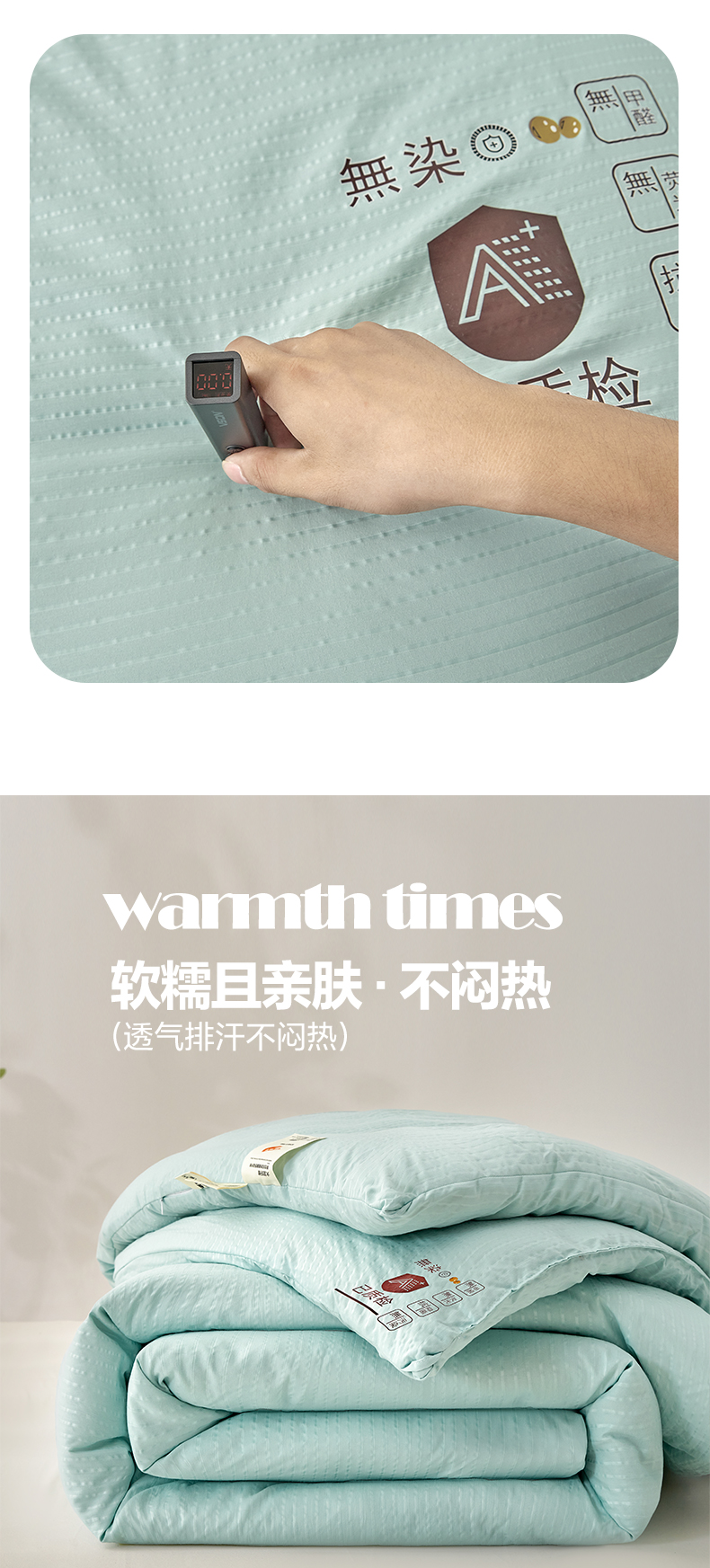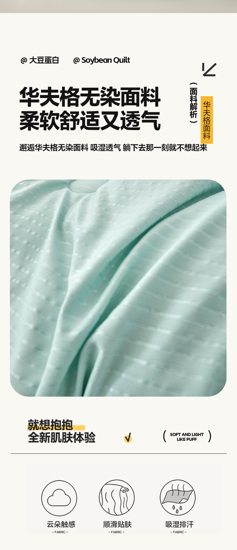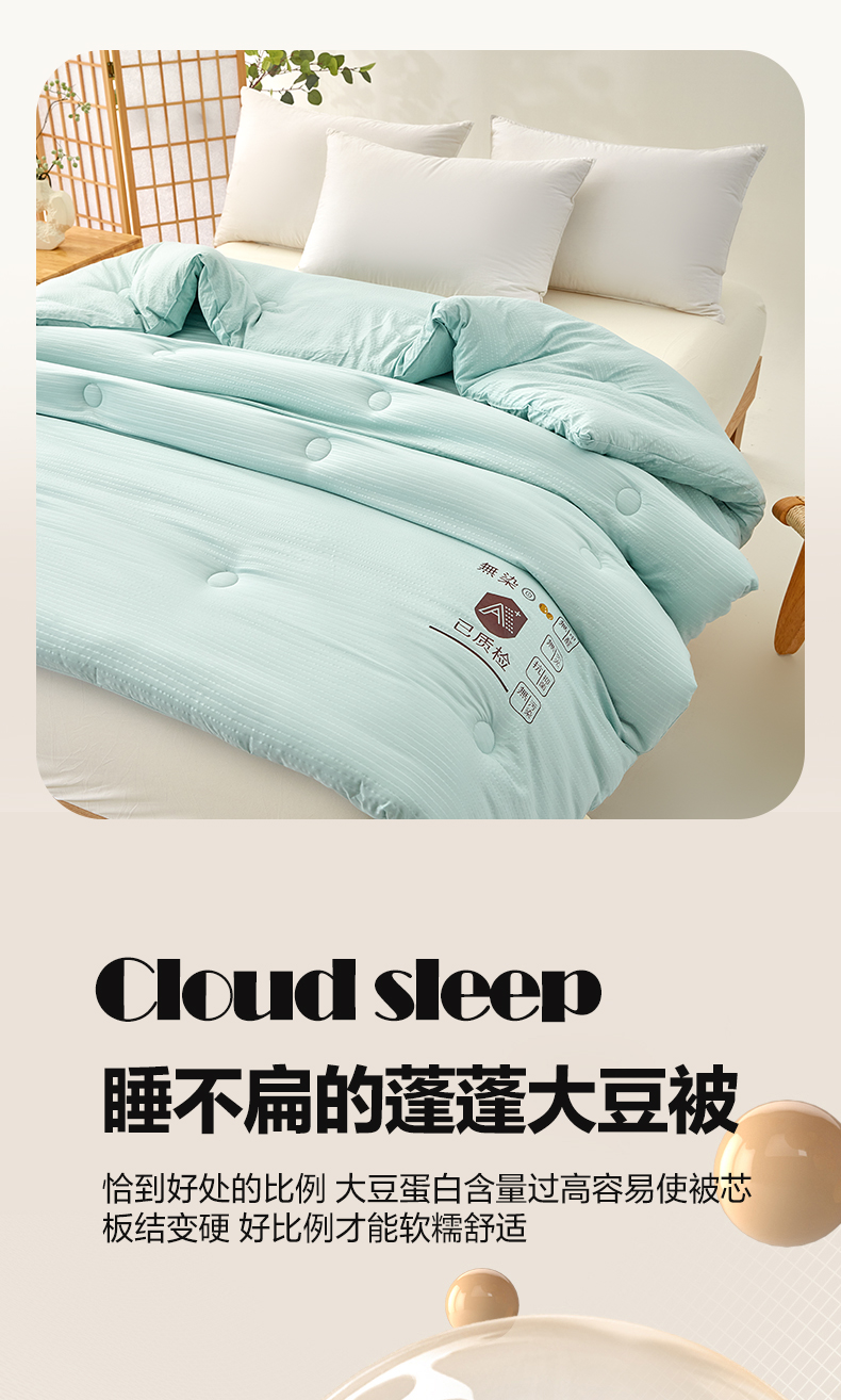 • 填充纤维种类: 大豆蛋白改性聚酯纤维