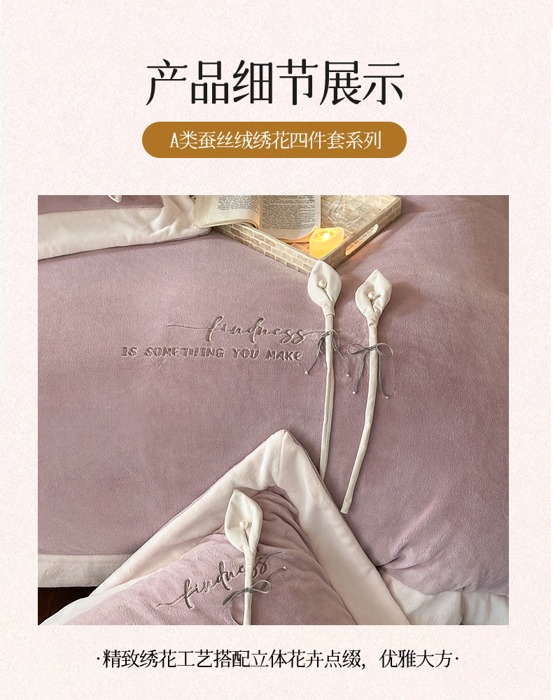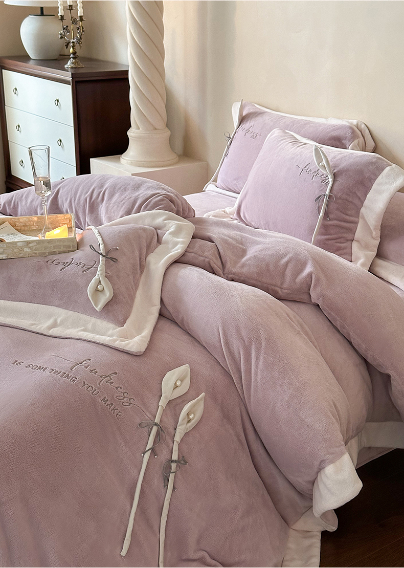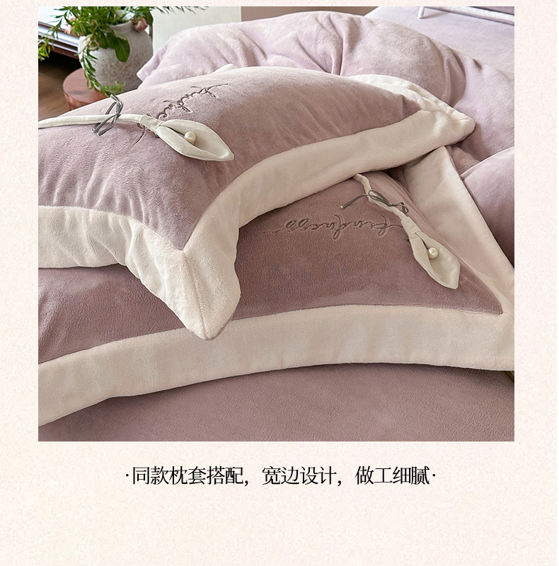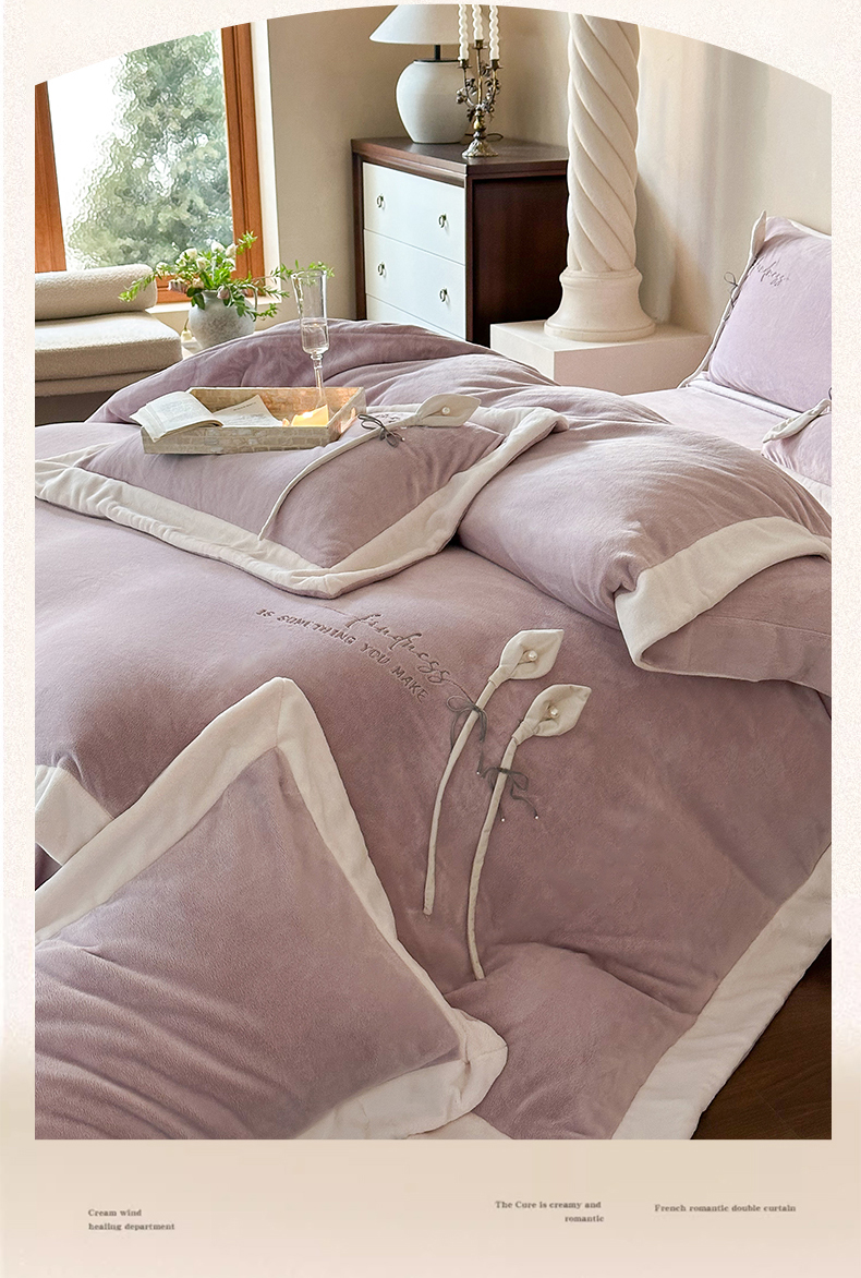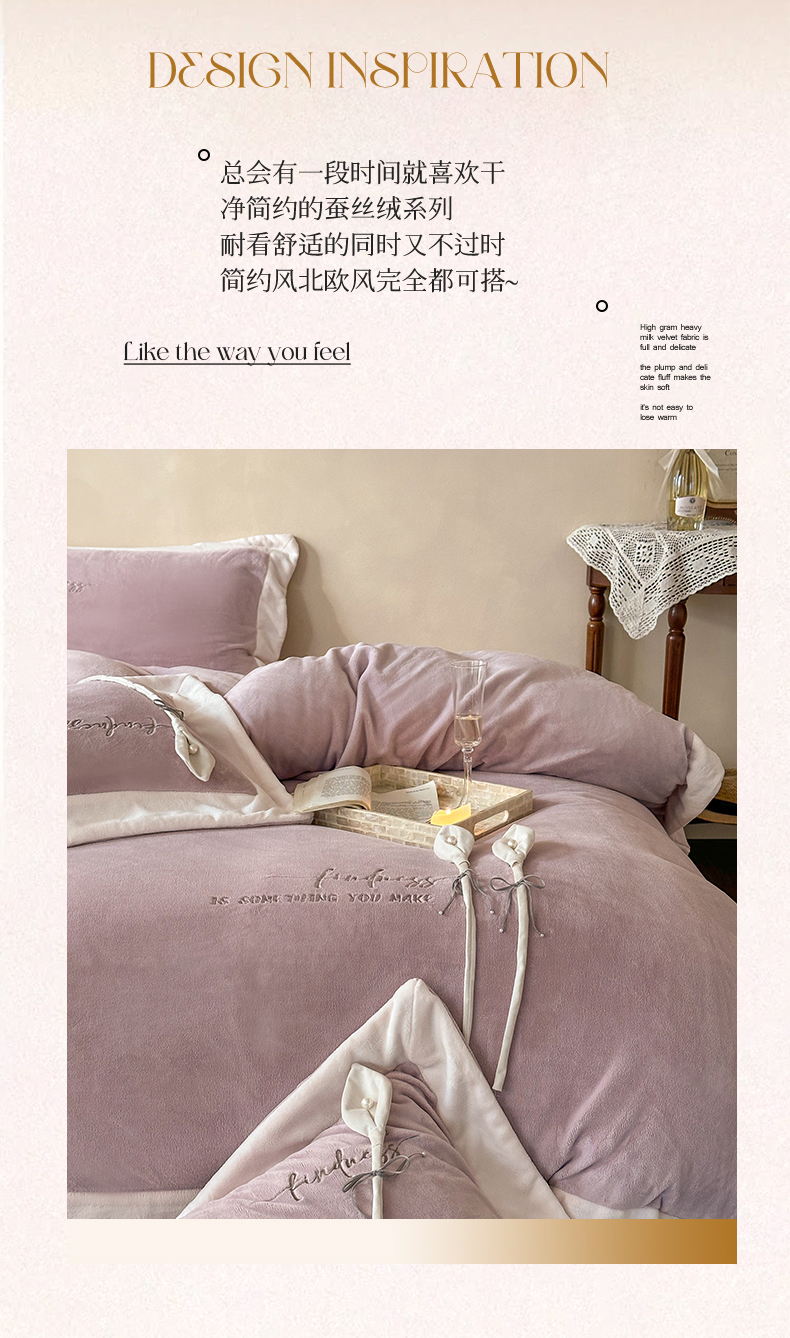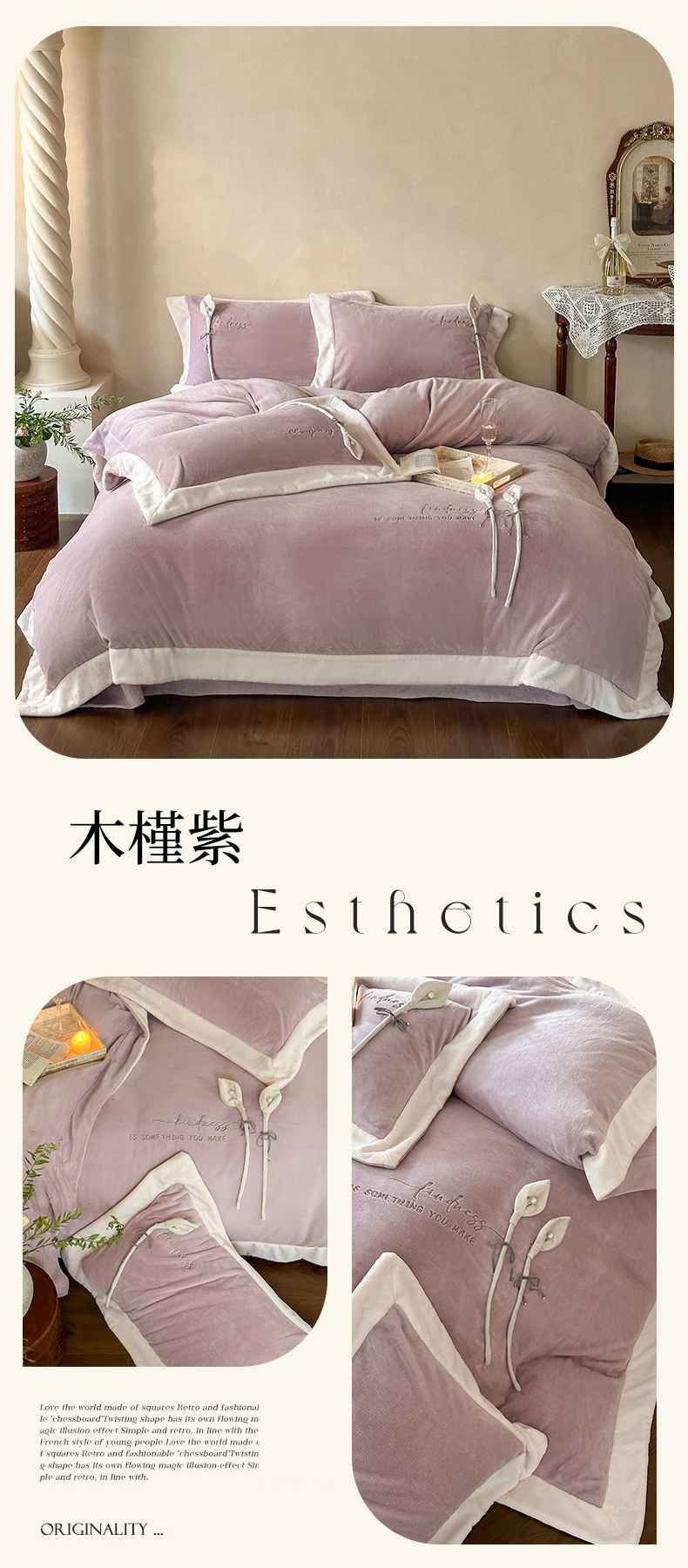 2024新款高克重牛奶绒四件套-辛西娅 木槿紫