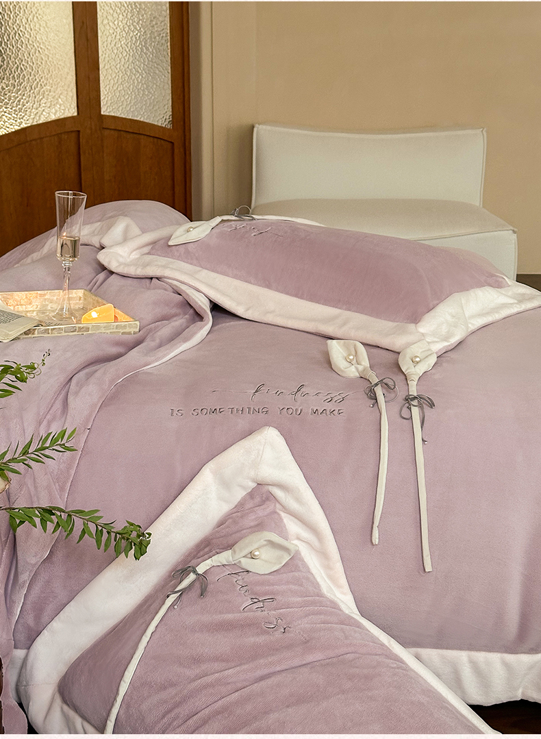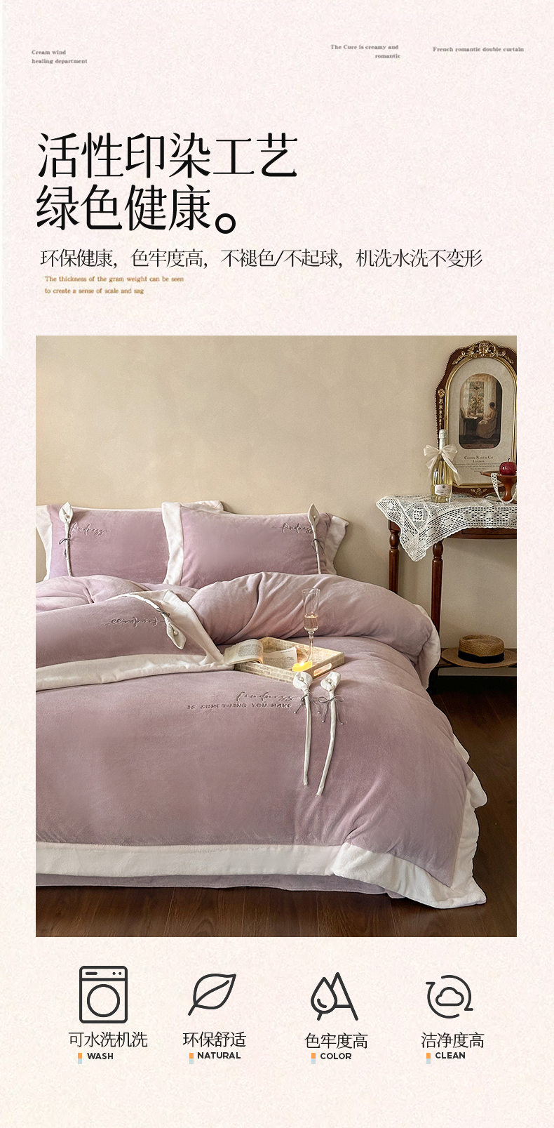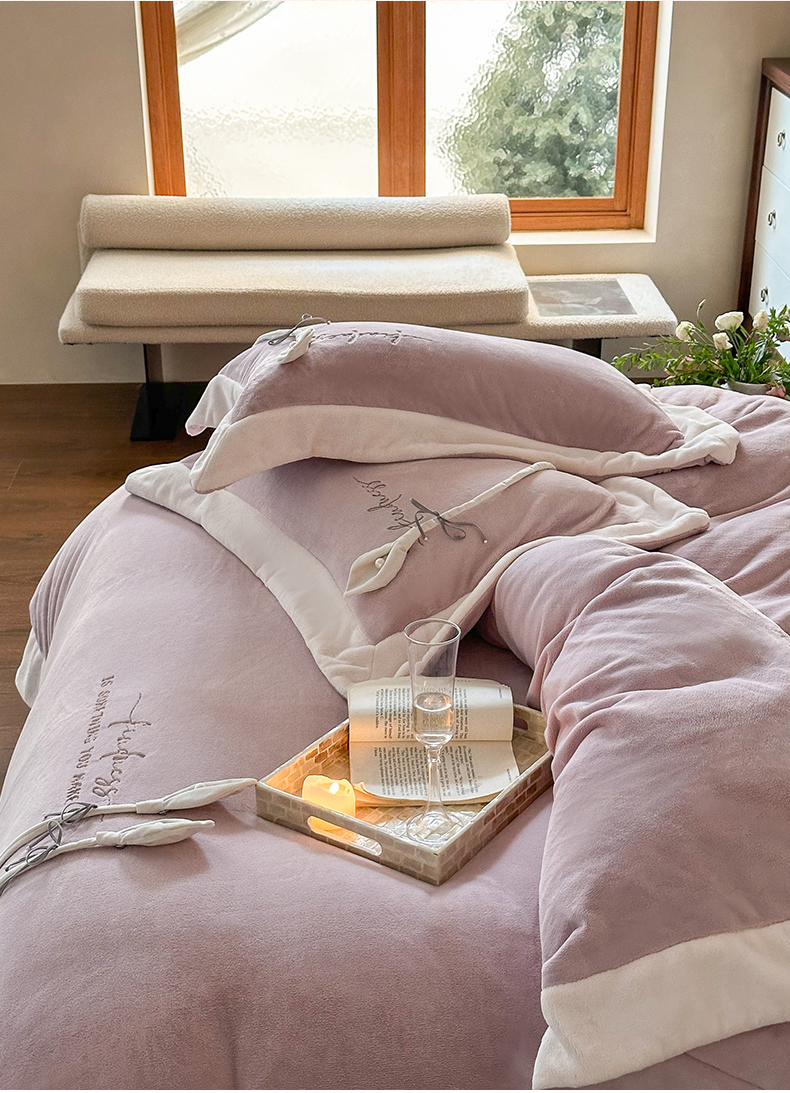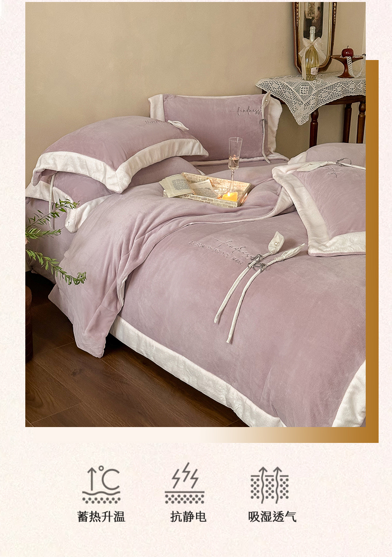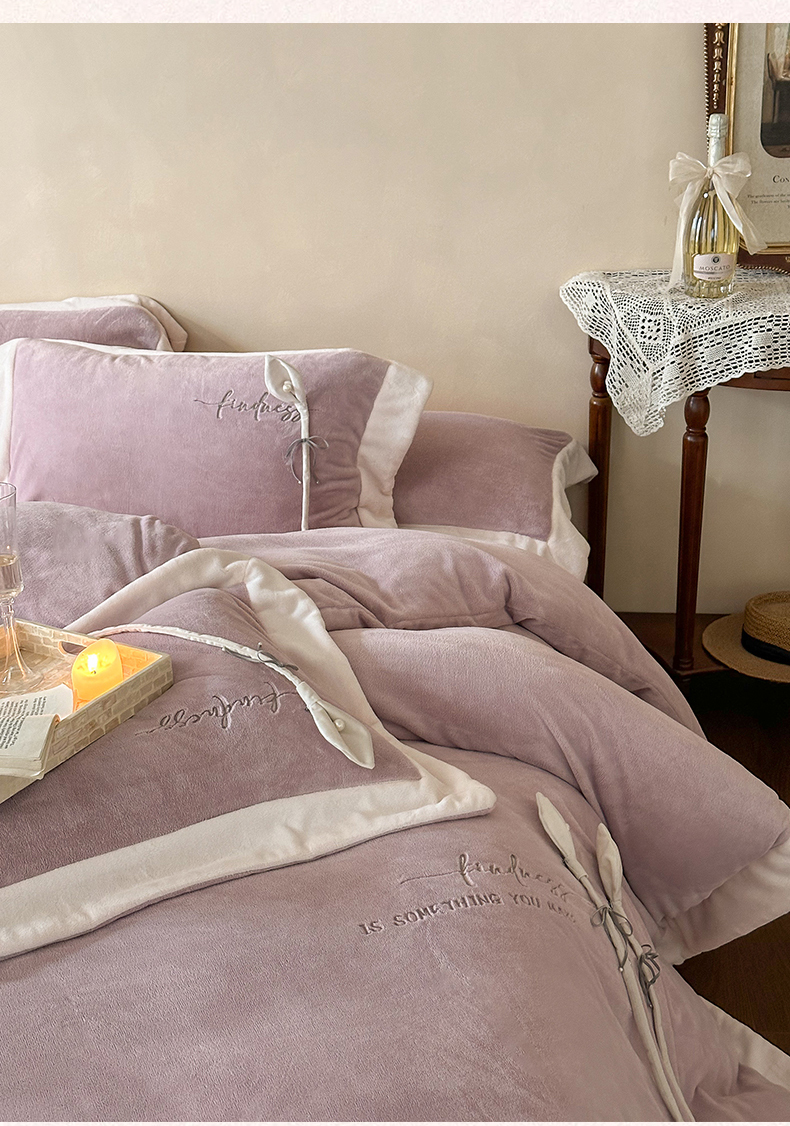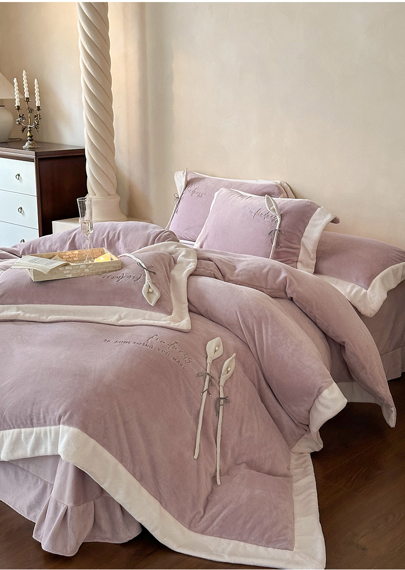 2024新款高克重牛奶绒四件套-辛西娅 木槿紫