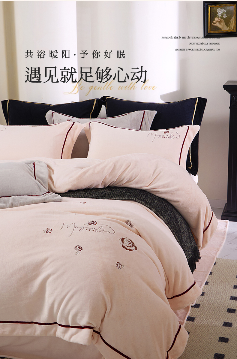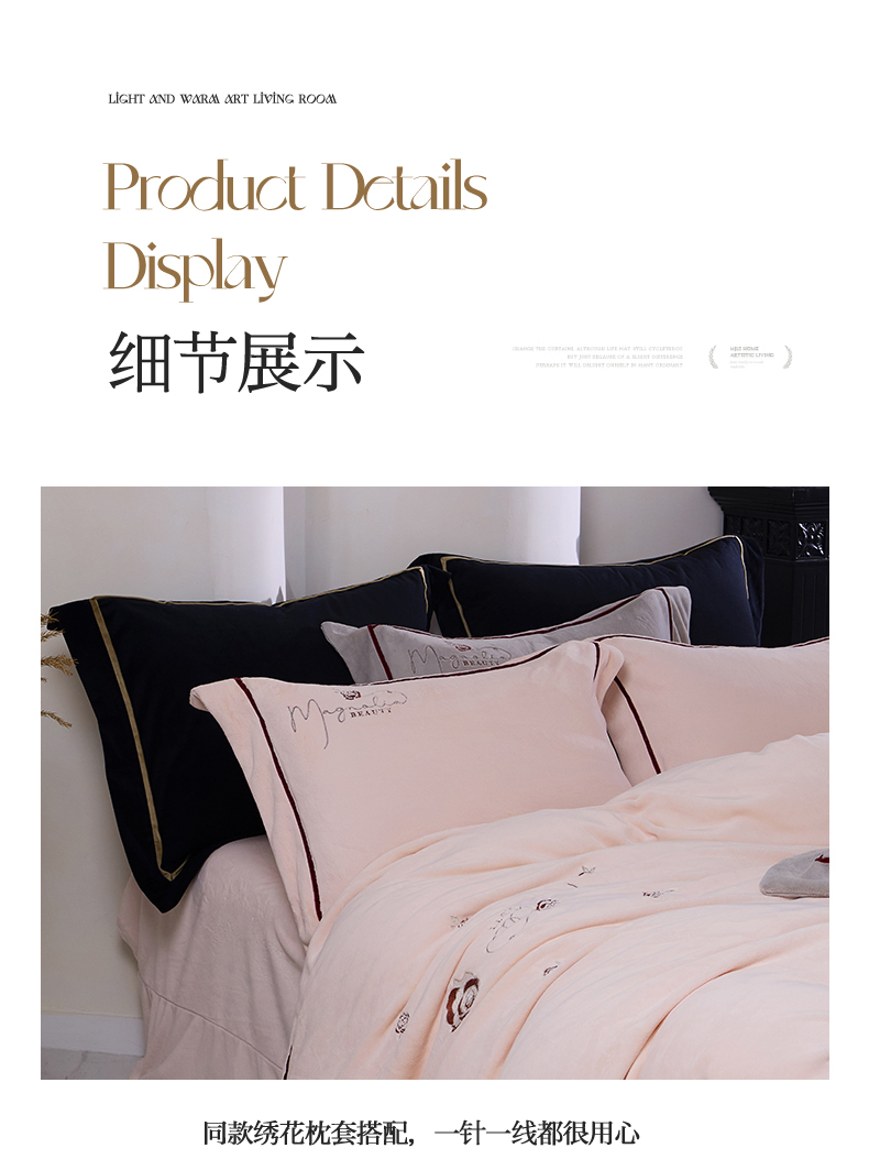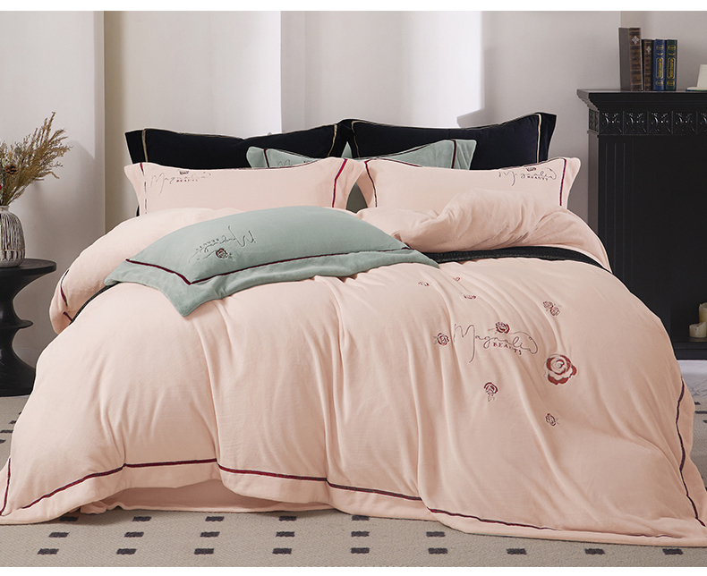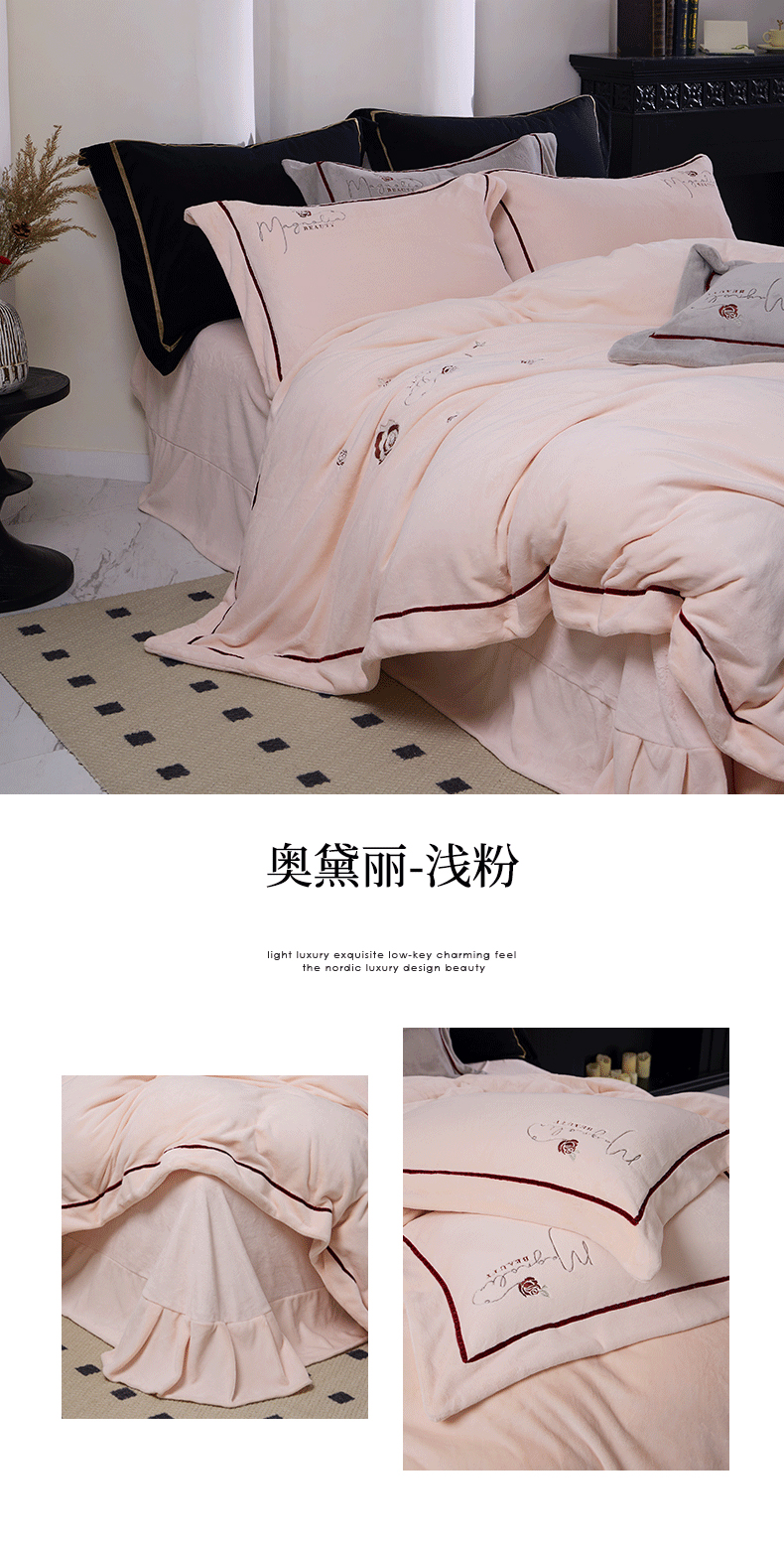 商品名称:2024新款高克重牛奶绒绣花四件套-奥黛丽 奥黛丽-浅粉