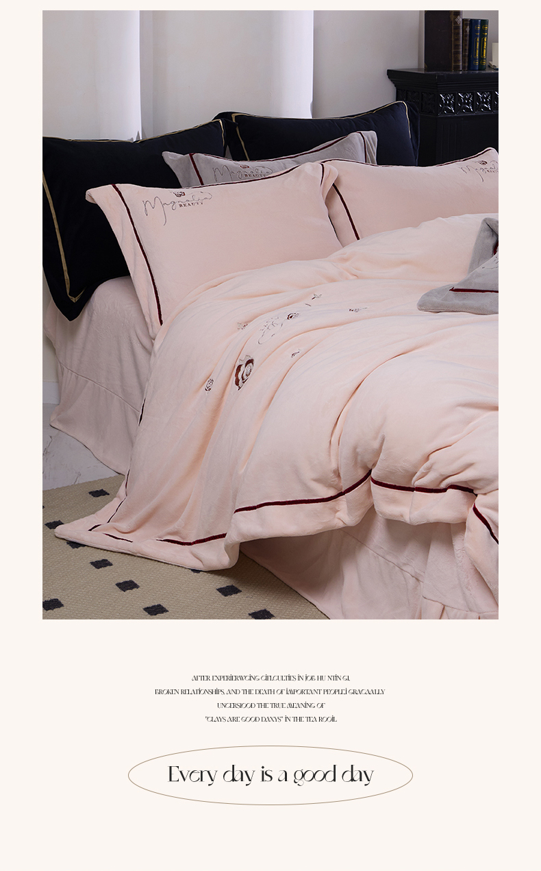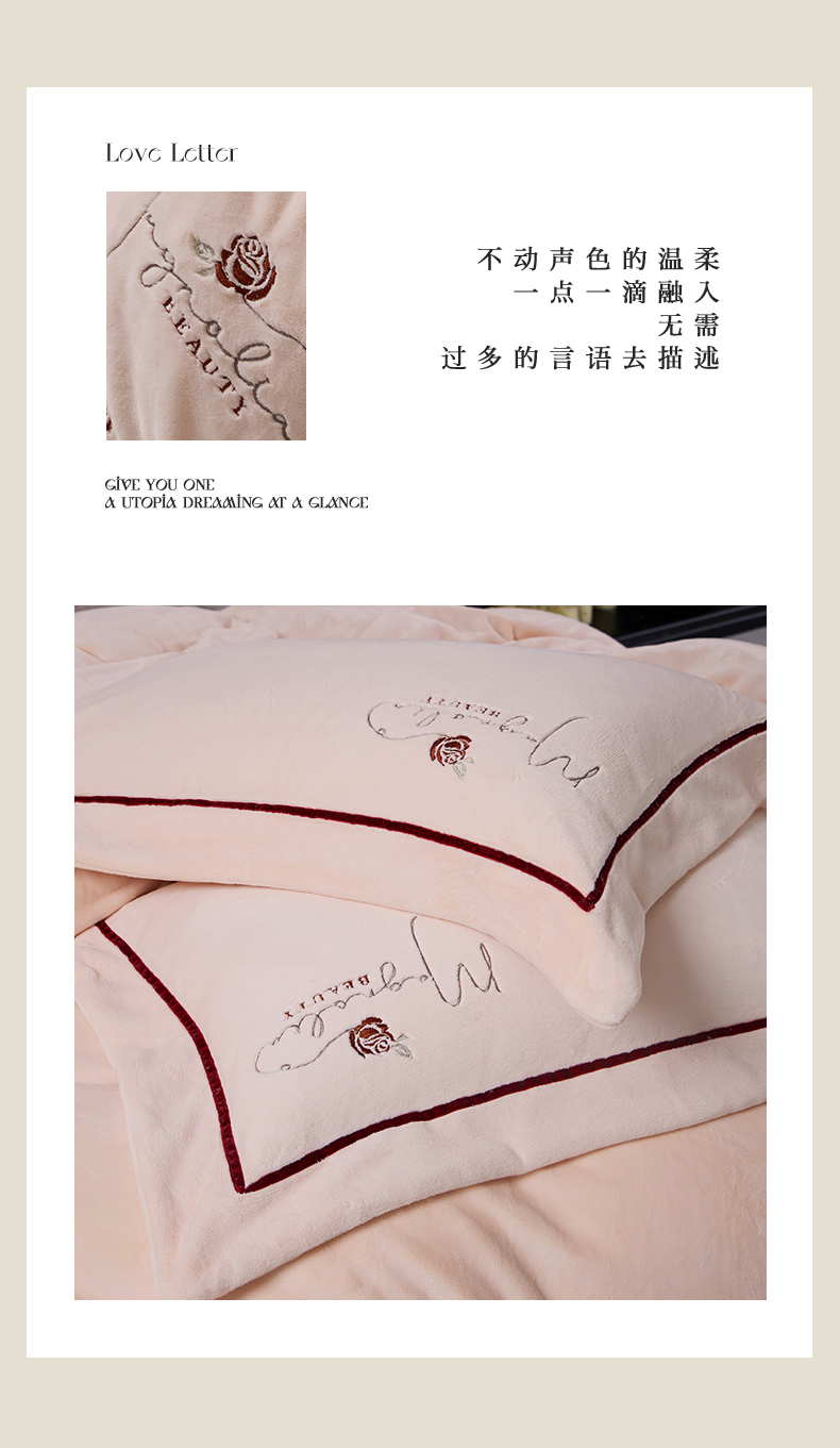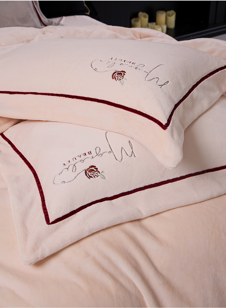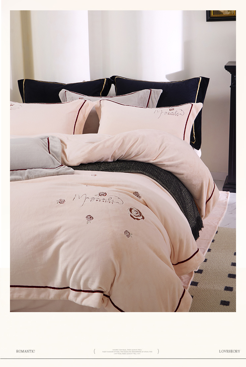 商品名称:2024新款高克重牛奶绒绣花四件套-奥黛丽 奥黛丽-浅粉