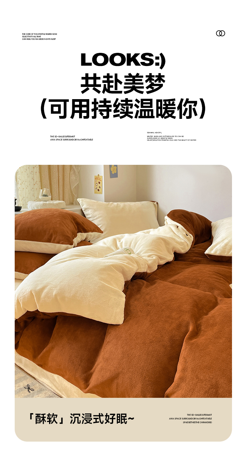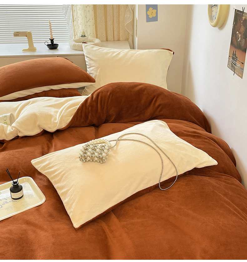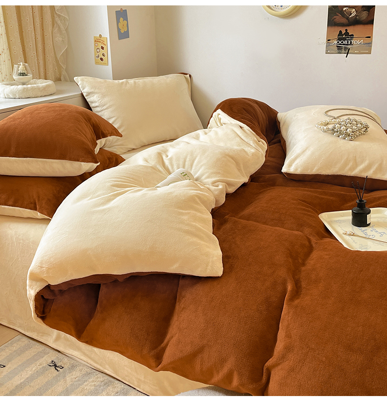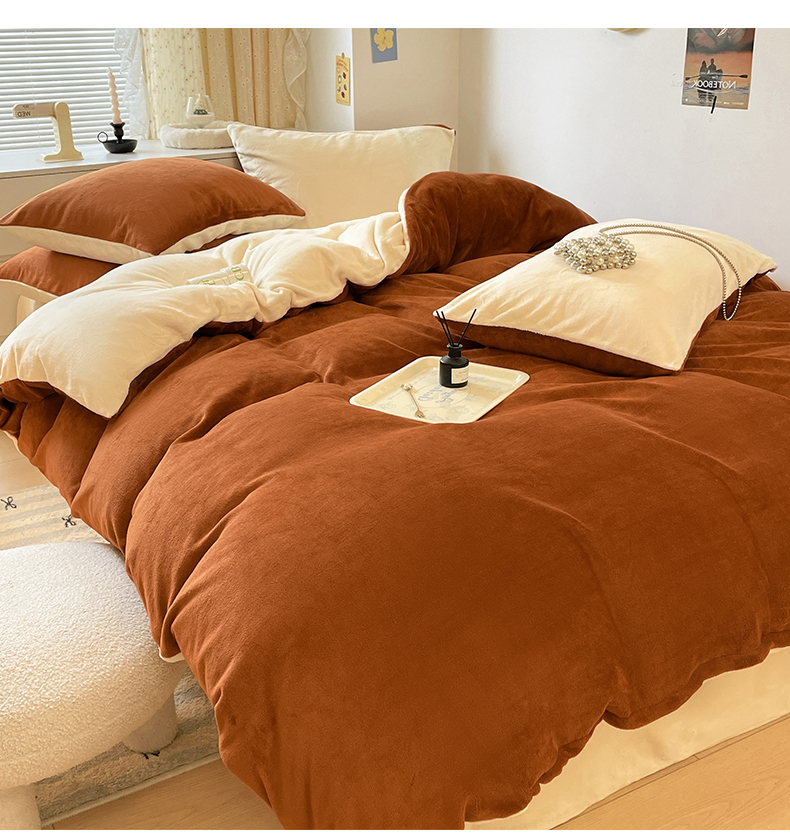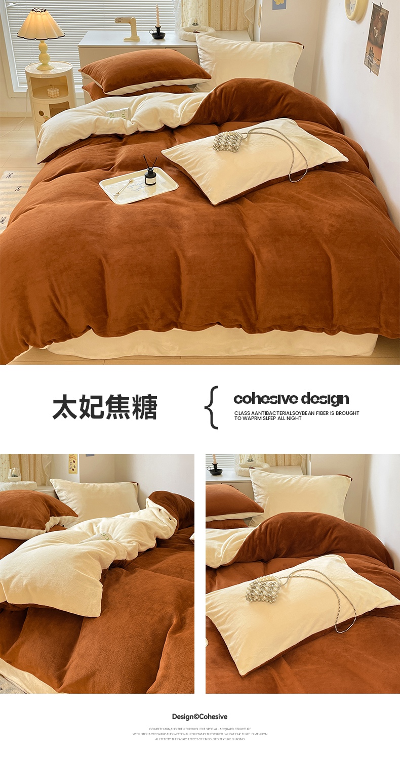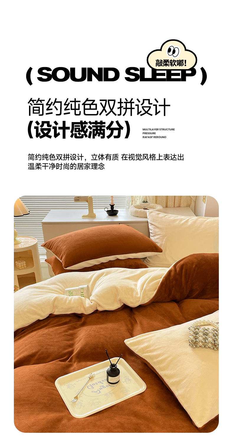 商品名称:寐眠 新款牛奶绒纯色双拼四件套-风格二 太妃焦糖