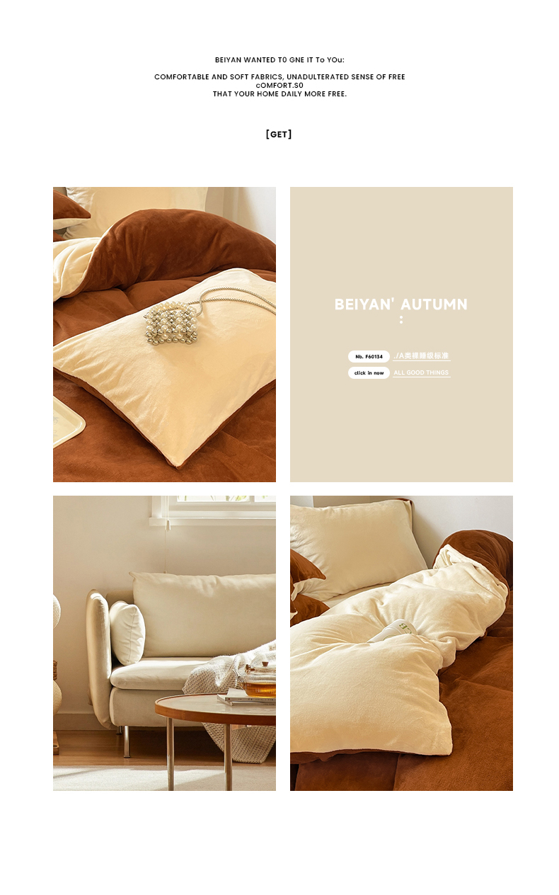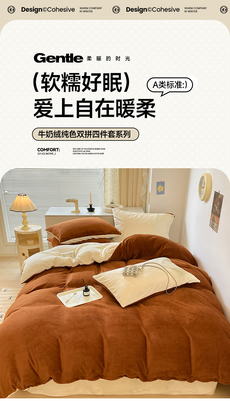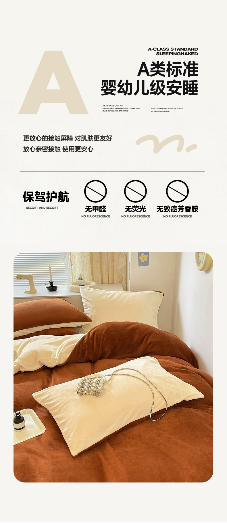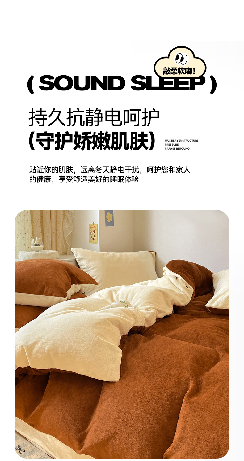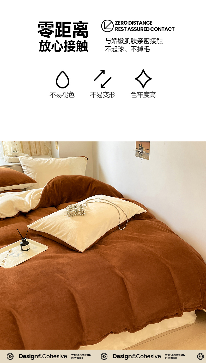 商品名称:寐眠 新款牛奶绒纯色双拼四件套-风格二 太妃焦糖