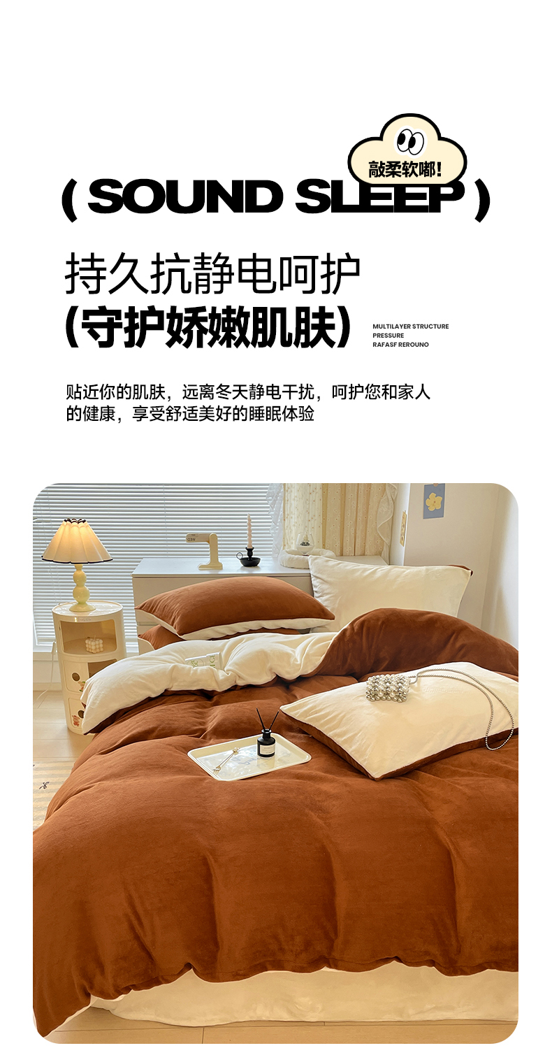 寐眠 新款牛奶绒纯色双拼四件套-风格二 太妃焦糖