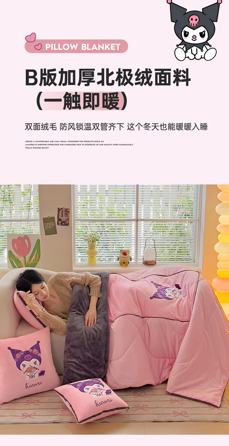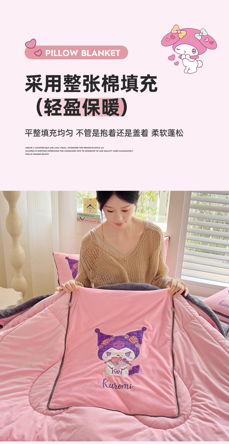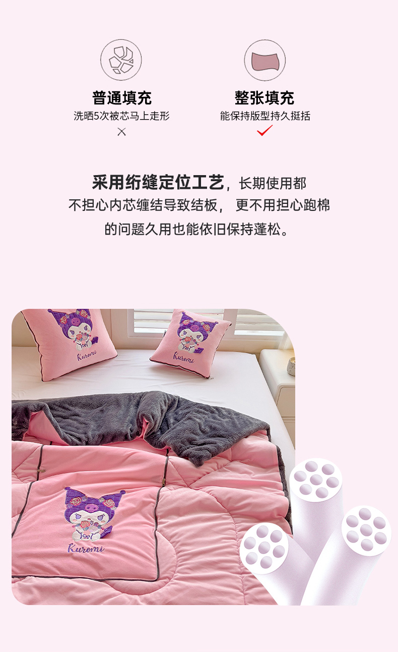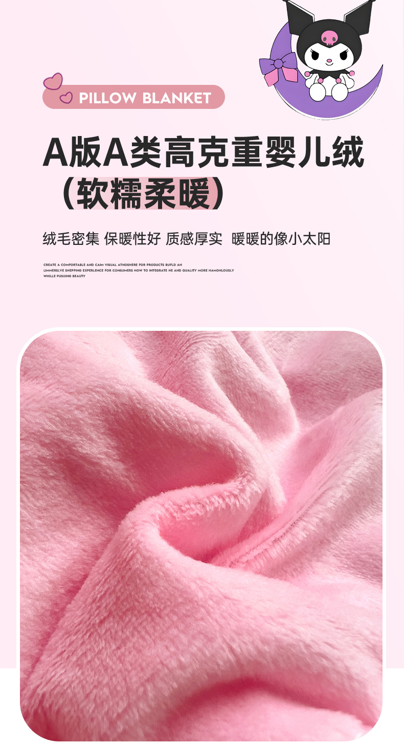 铭宣家居 2024新款正版三丽鸥授权加厚AB版婴儿绒和北极绒贴布绣刺绣抱枕被 酷洛米
