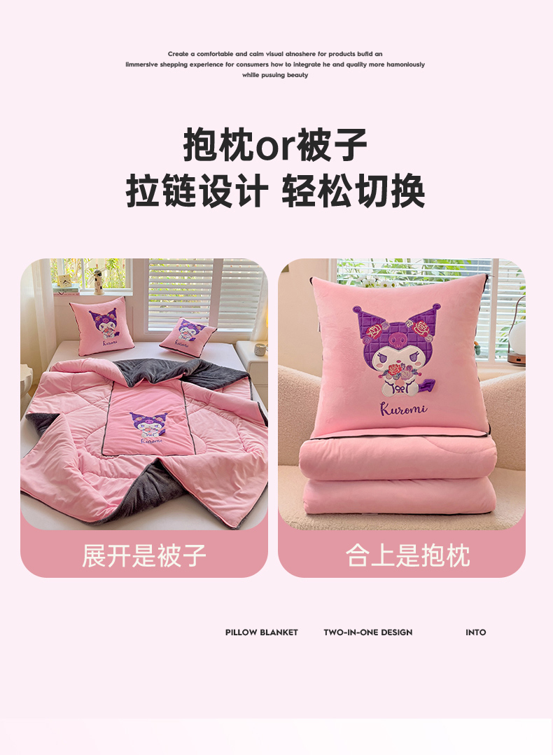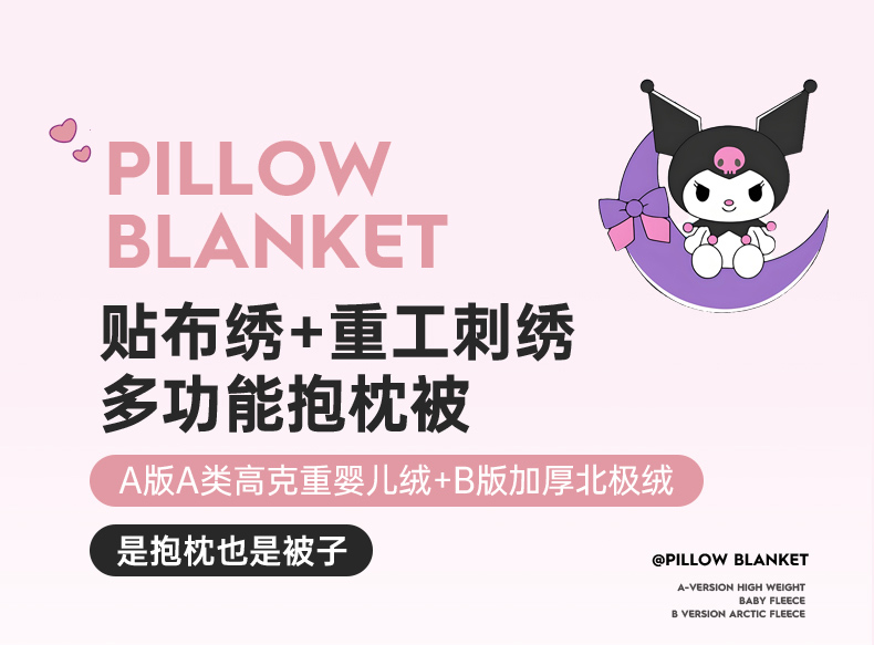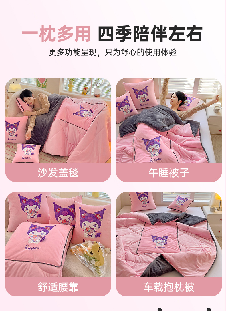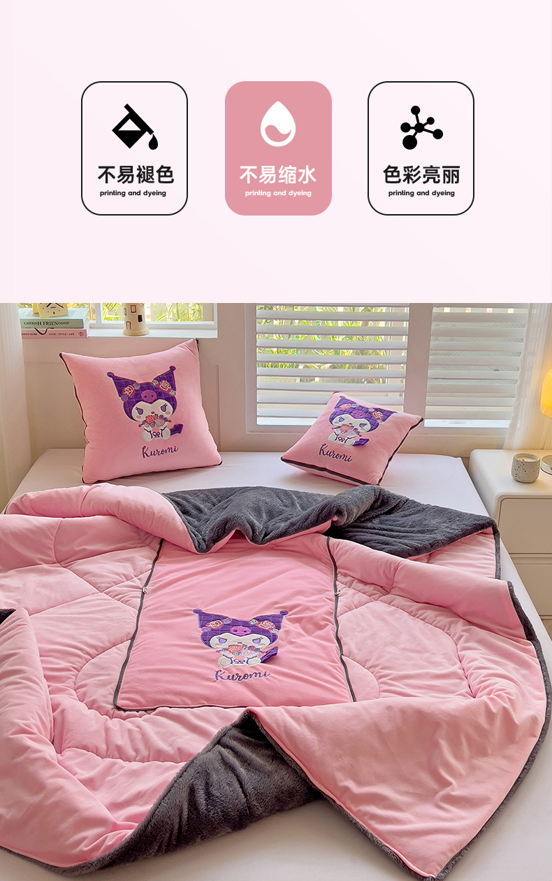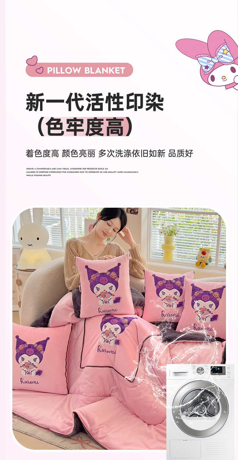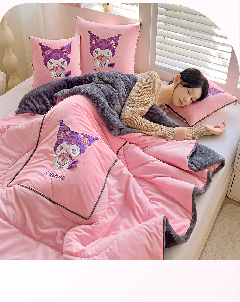 铭宣家居 2024新款正版三丽鸥授权加厚AB版婴儿绒和北极绒贴布绣刺绣抱枕被 酷洛米