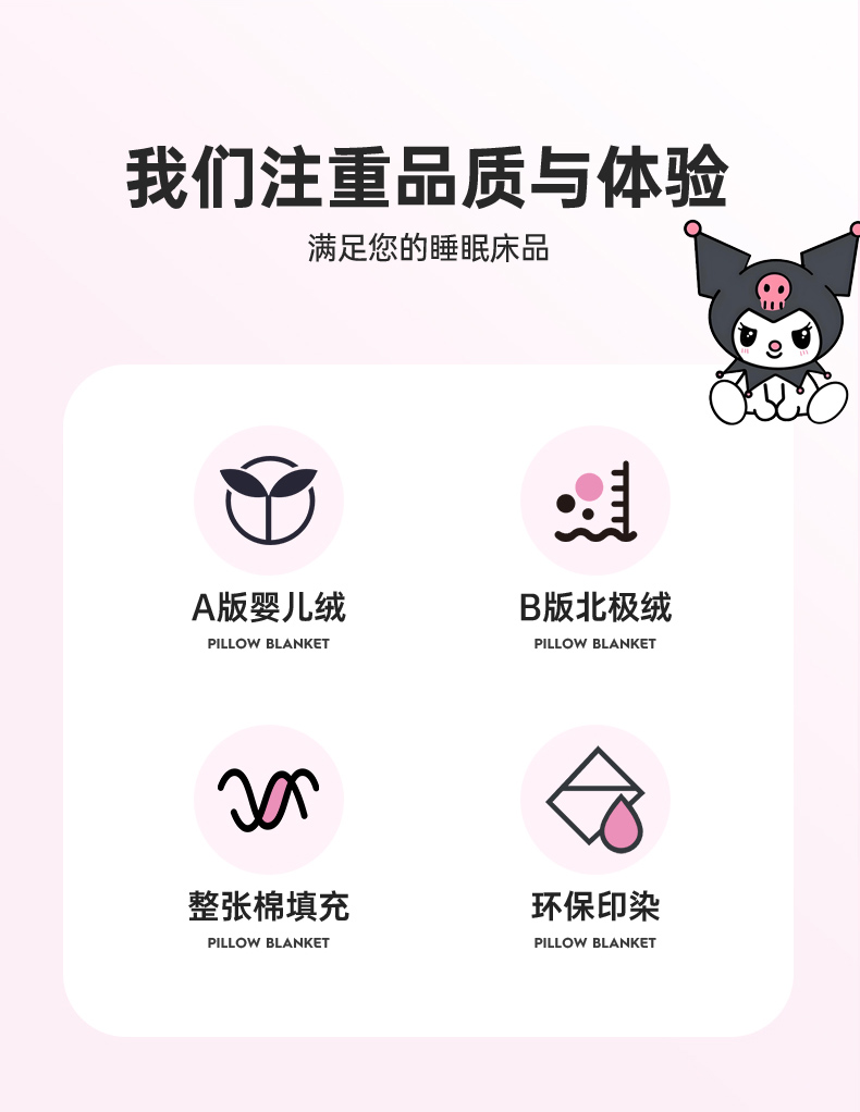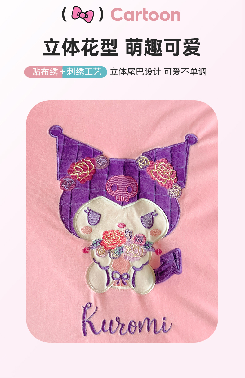 商品名称:铭宣家居 2024新款正版三丽鸥授权加厚AB版婴儿绒和北极绒贴布绣刺绣抱枕被 酷洛米
