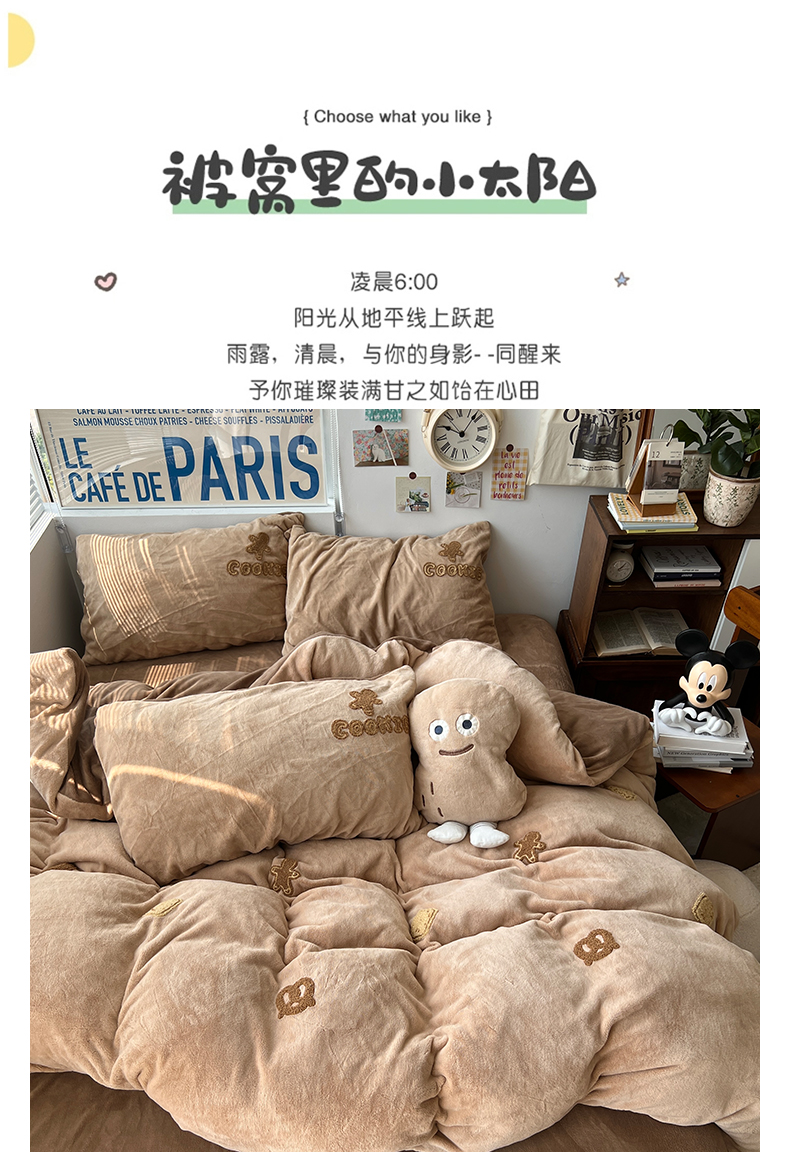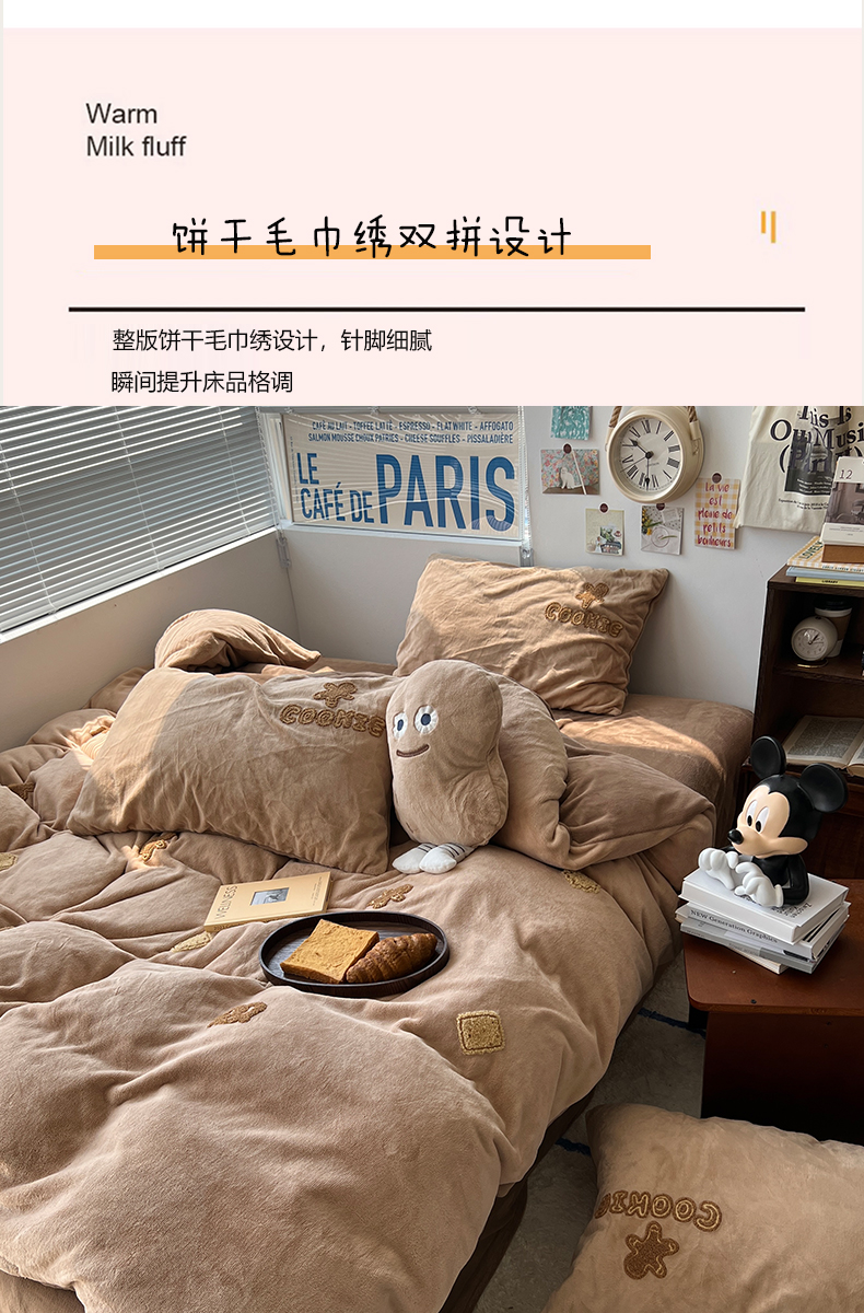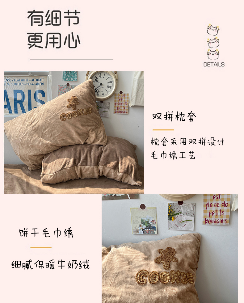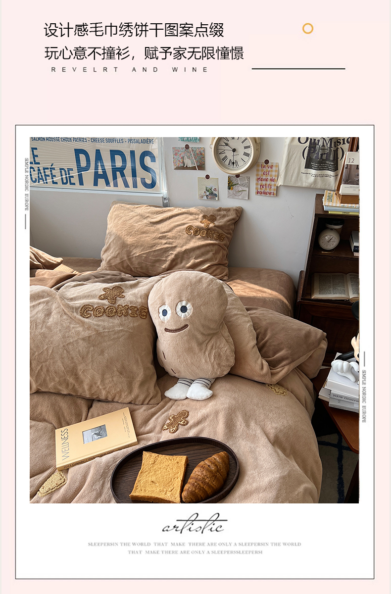 商品名称:原素 2024饼干人毛巾绣牛奶绒四件套 可可巧克力
