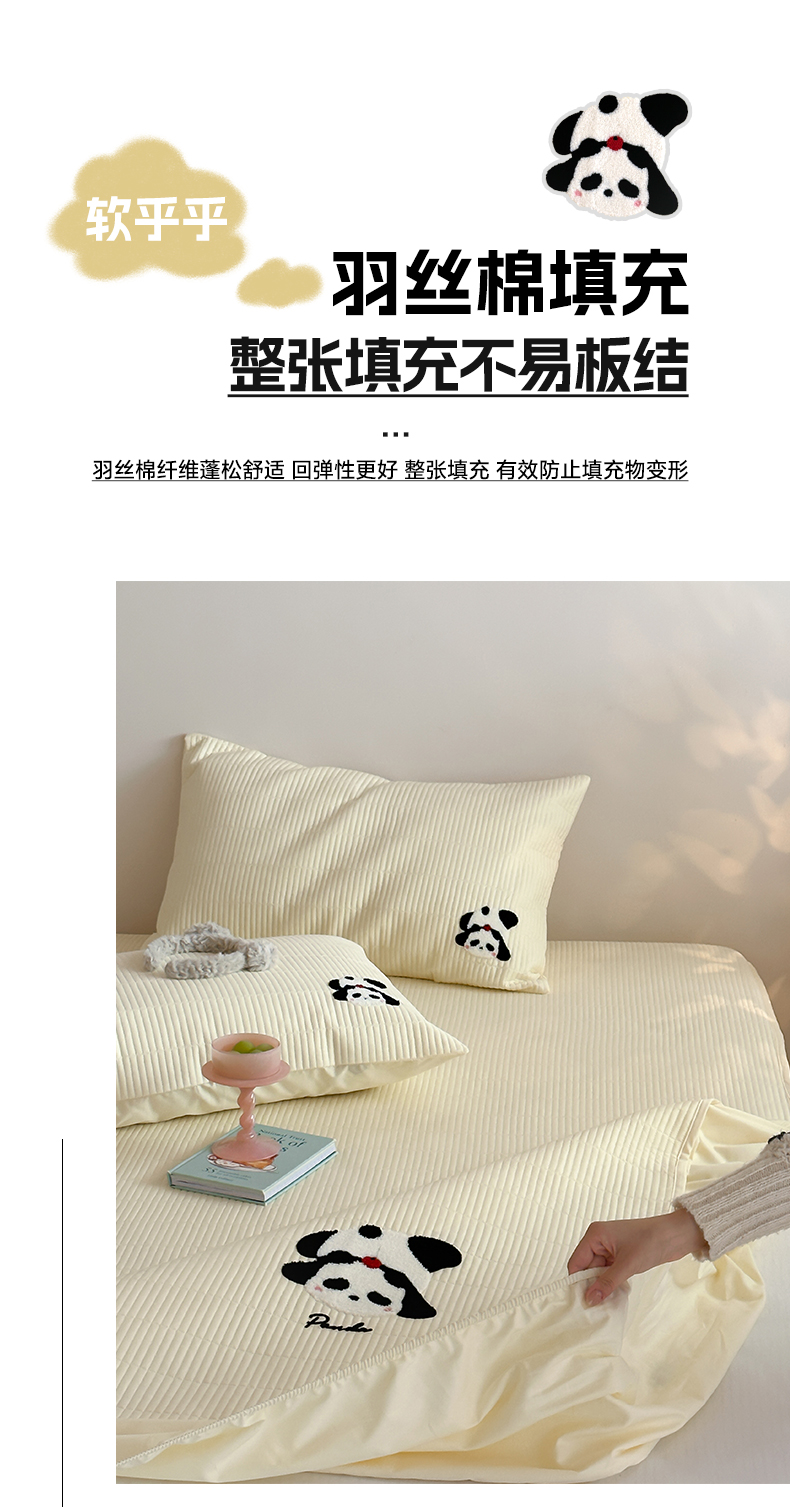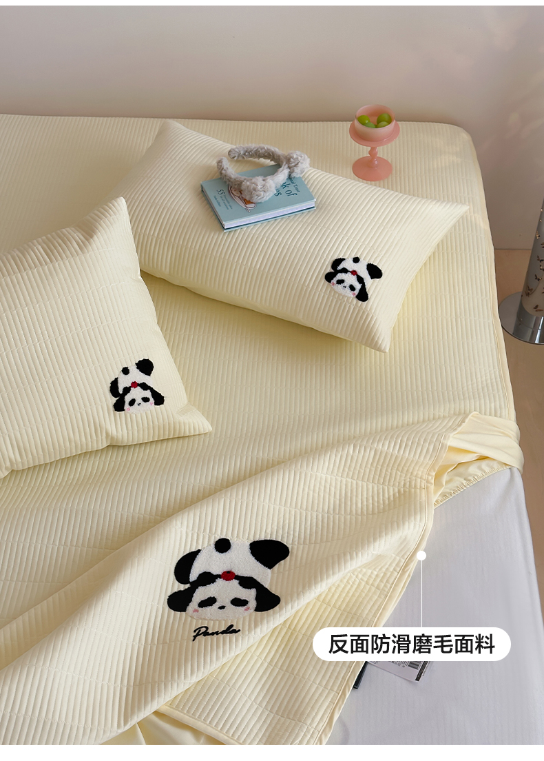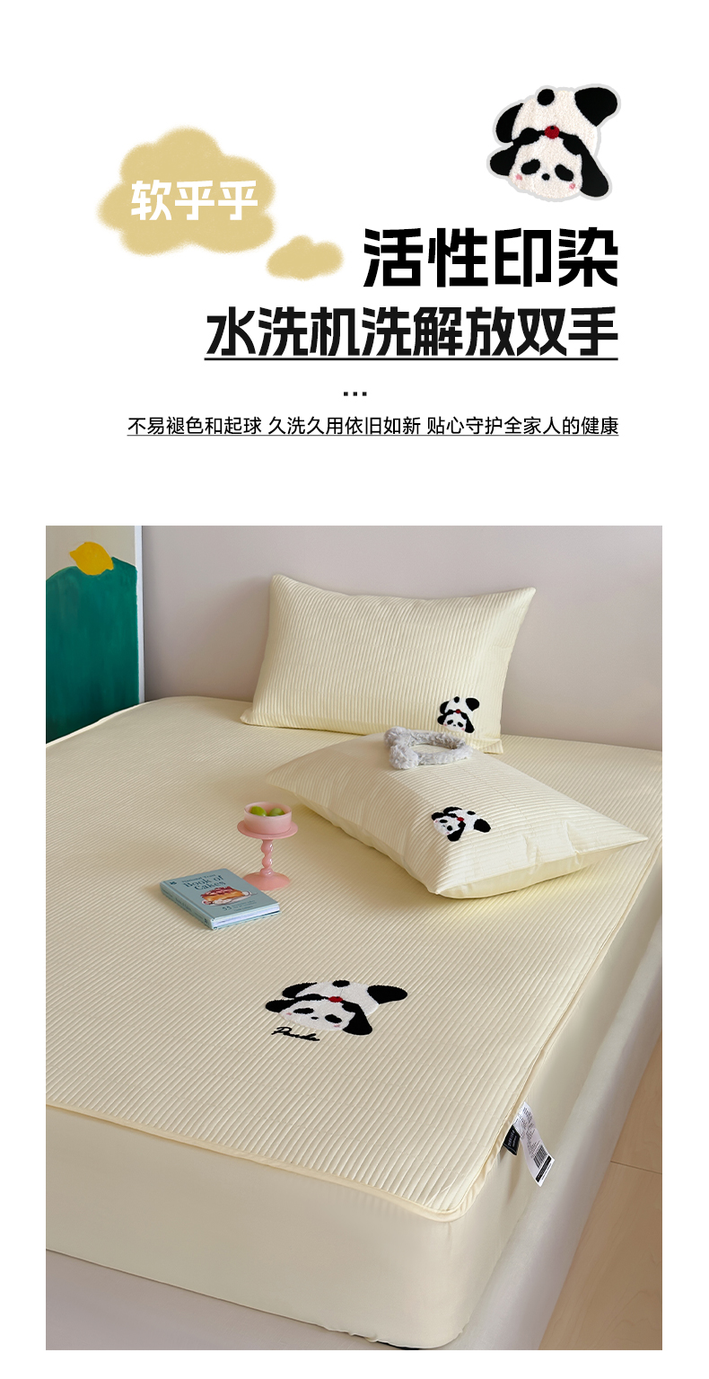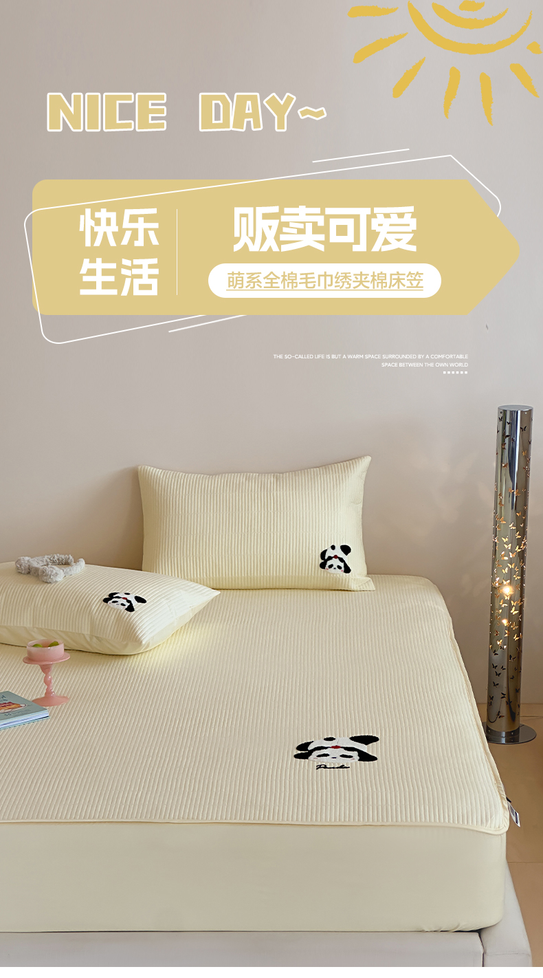 商品名称:三味舒屋 2024新款萌系卡通毛巾绣夹棉床笠 熊猫卡卡黄