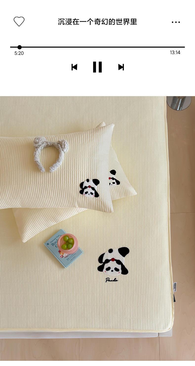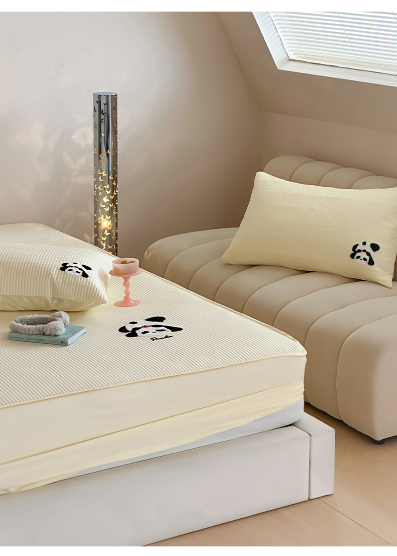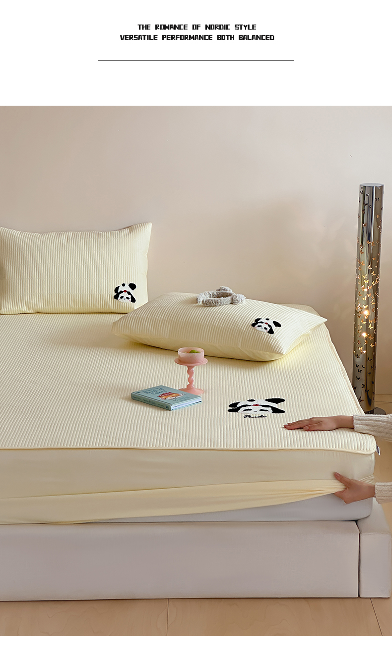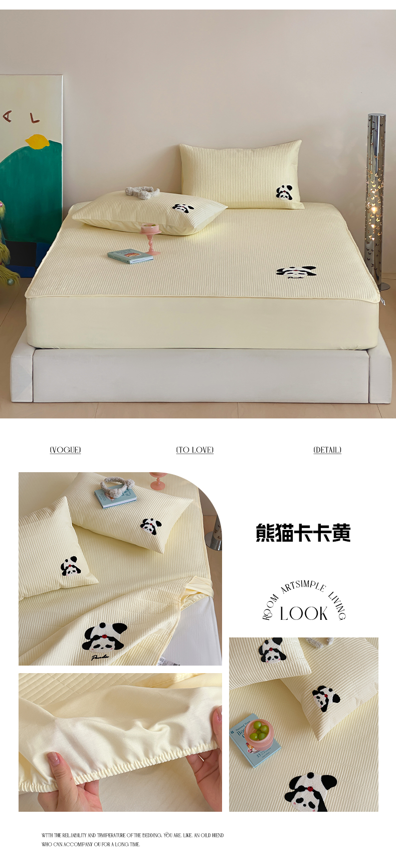 三味舒屋 2024新款萌系卡通毛巾绣夹棉床笠 熊猫卡卡黄