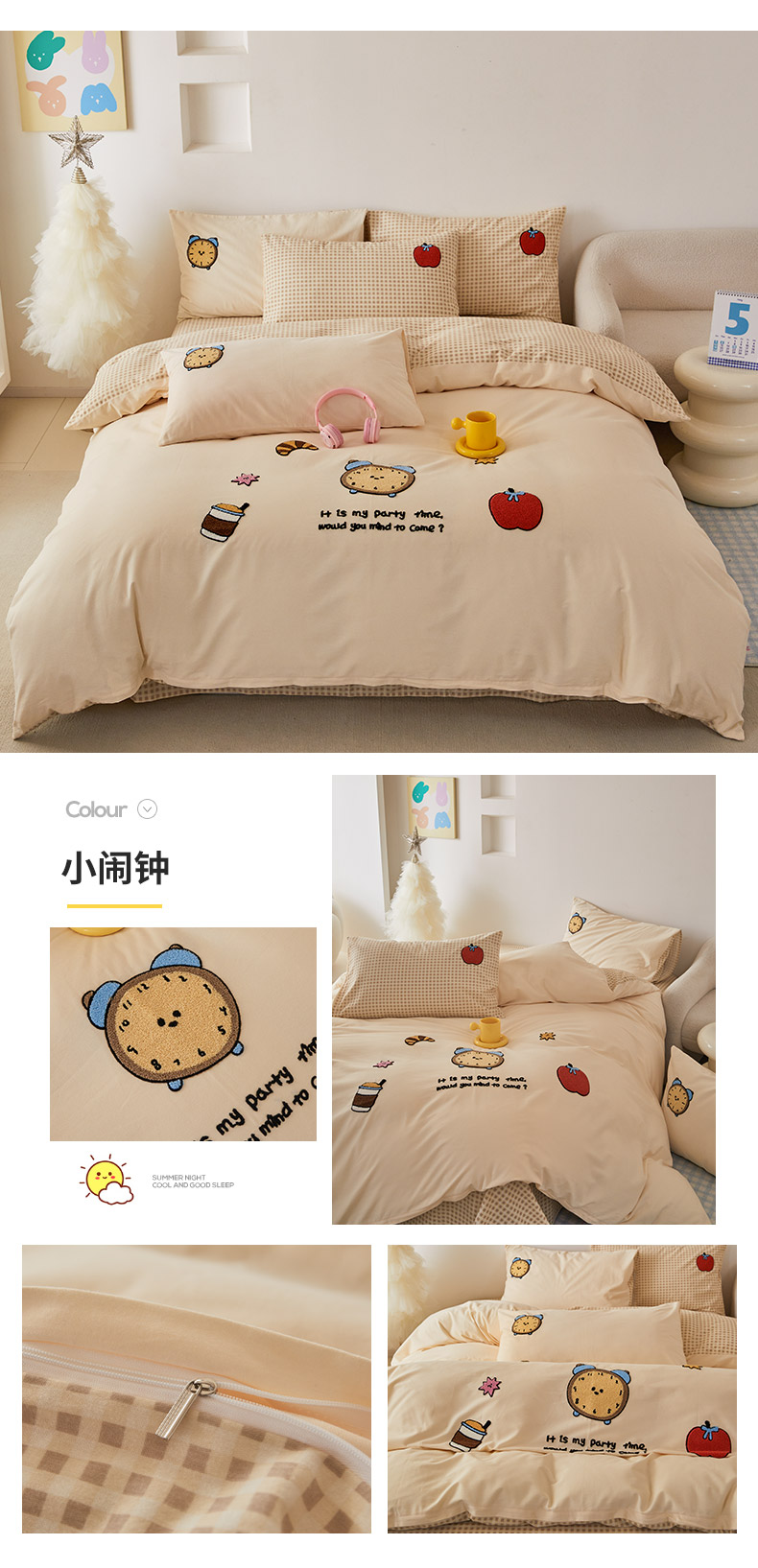 商品名称:怡家居 2024秋冬新款全棉磨毛绣花四件套 小闹钟