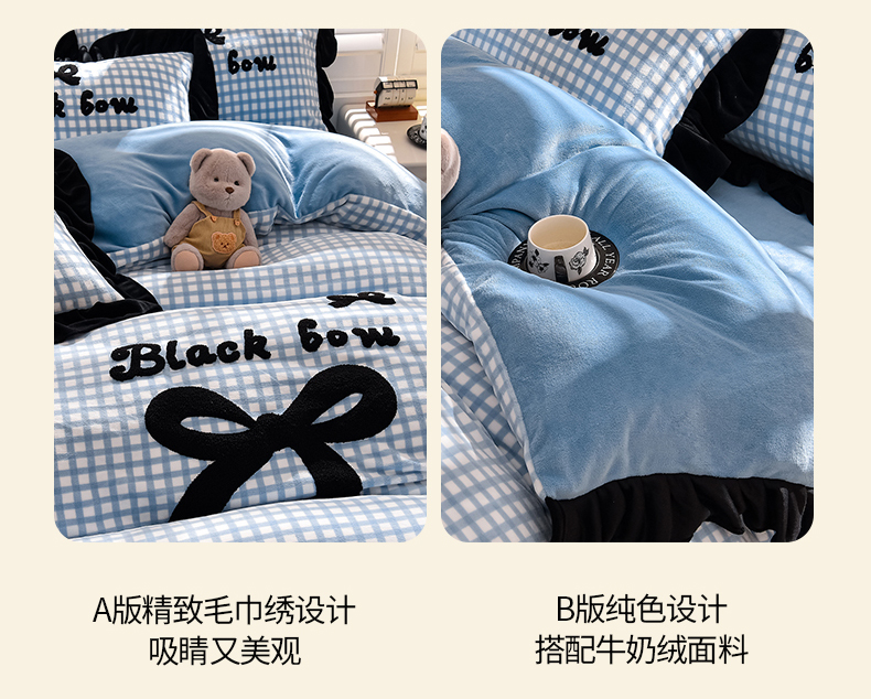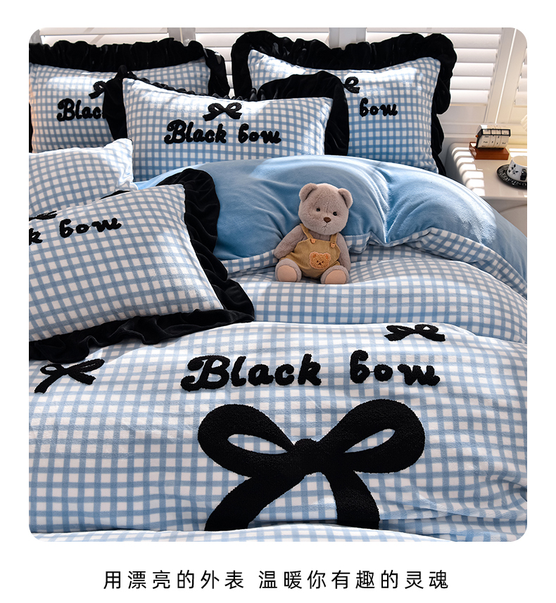 商品名称:炫拼家纺 2024新款法式蝴蝶结牛奶绒四件套 法式蝴蝶结-蓝