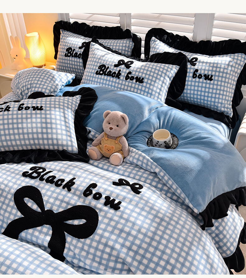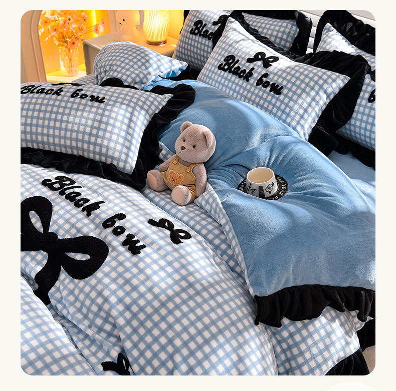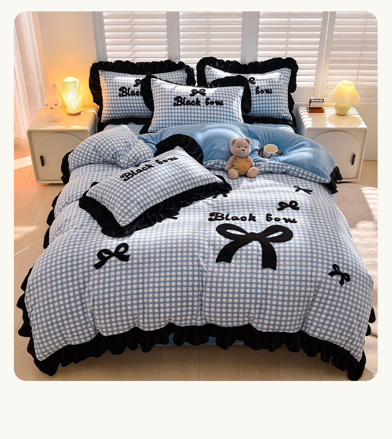 炫拼家纺 2024新款法式蝴蝶结牛奶绒四件套 法式蝴蝶结-蓝
