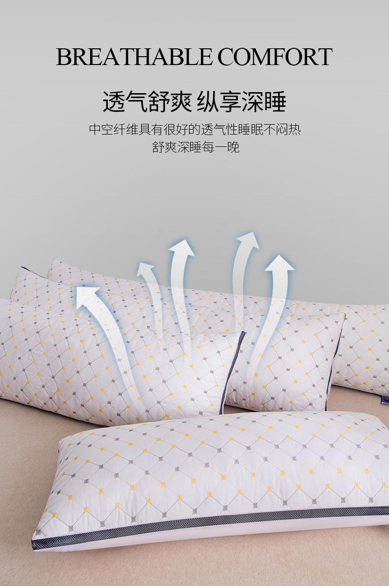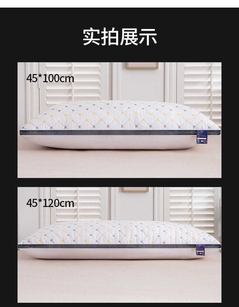 商品名称:(总)仁宇枕业 2024新款枕芯 亲肤绗绣磨毛单人双人家用长枕芯靠垫腰靠芯小方格双人情侣长枕头芯