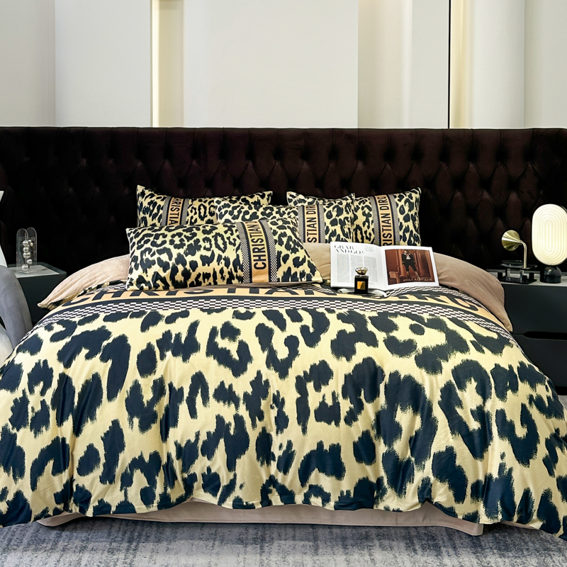 (总)色鬼布艺高端家居主号 2025新款轻奢亲肤纯棉数码印花网红热款四件套,豹纹香,白金V,白香花,大H,黑白迪,黑白V,灰迪,咖古,克莱因,慕斯小姐,山茶花,星空