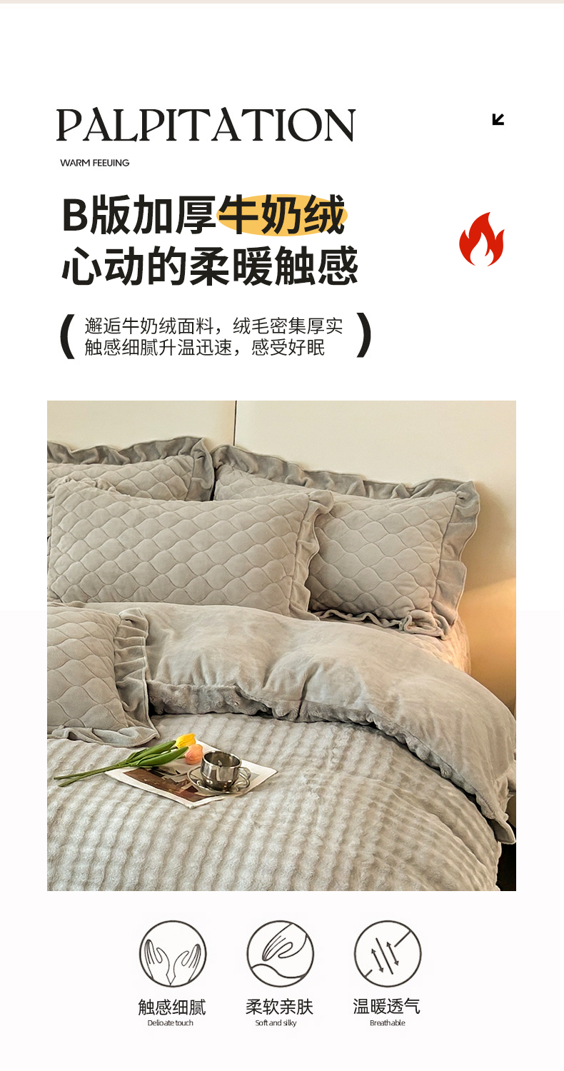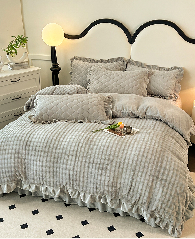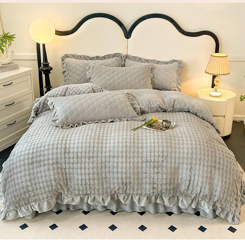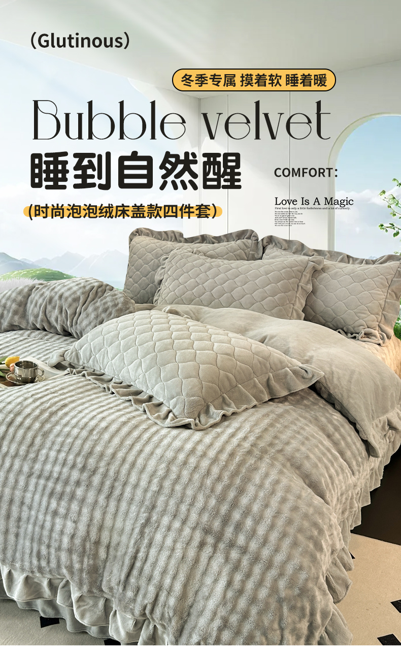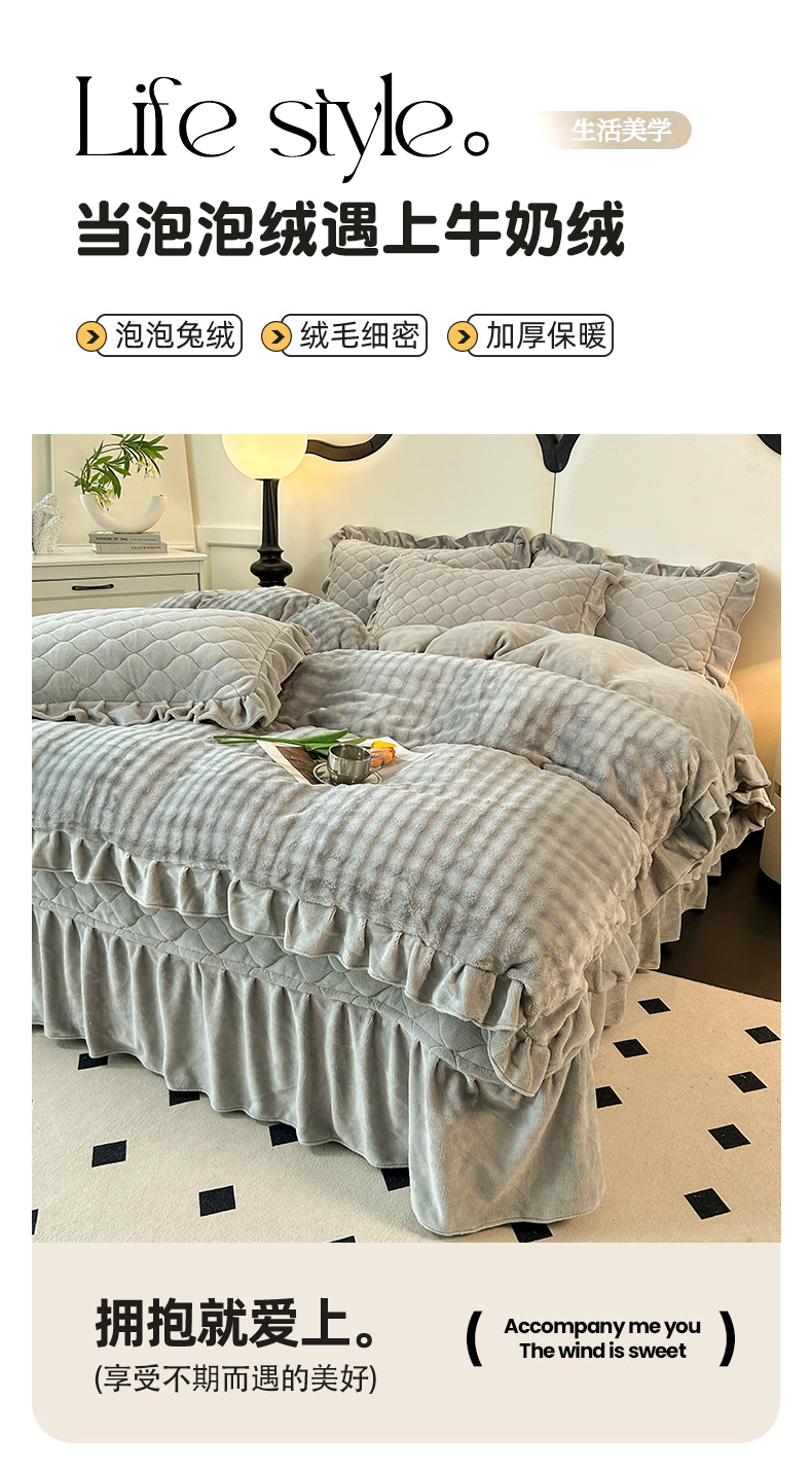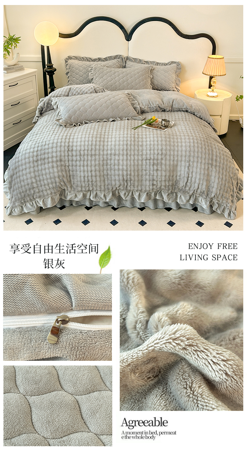 商品名称:屹成家纺 2024新款牛奶绒泡泡款床盖四件套 泡泡款-银灰