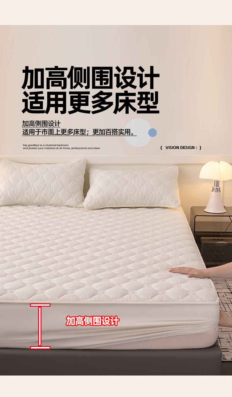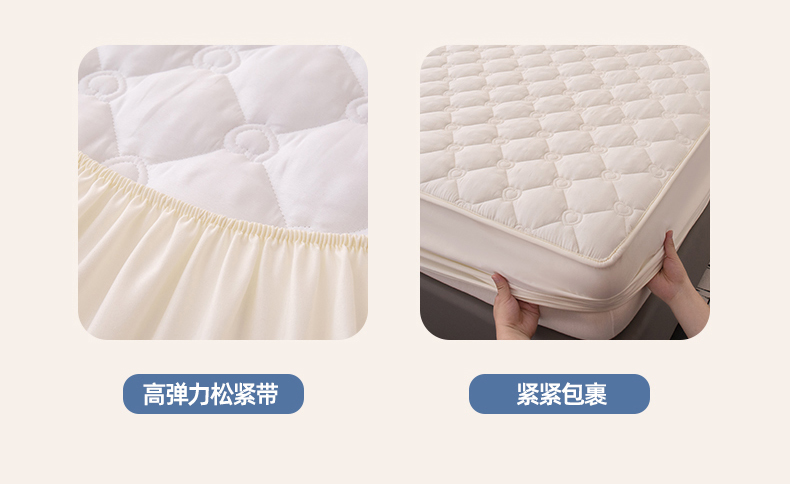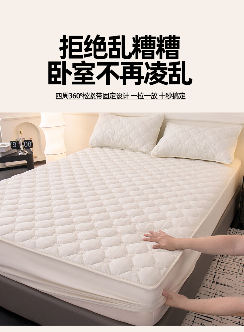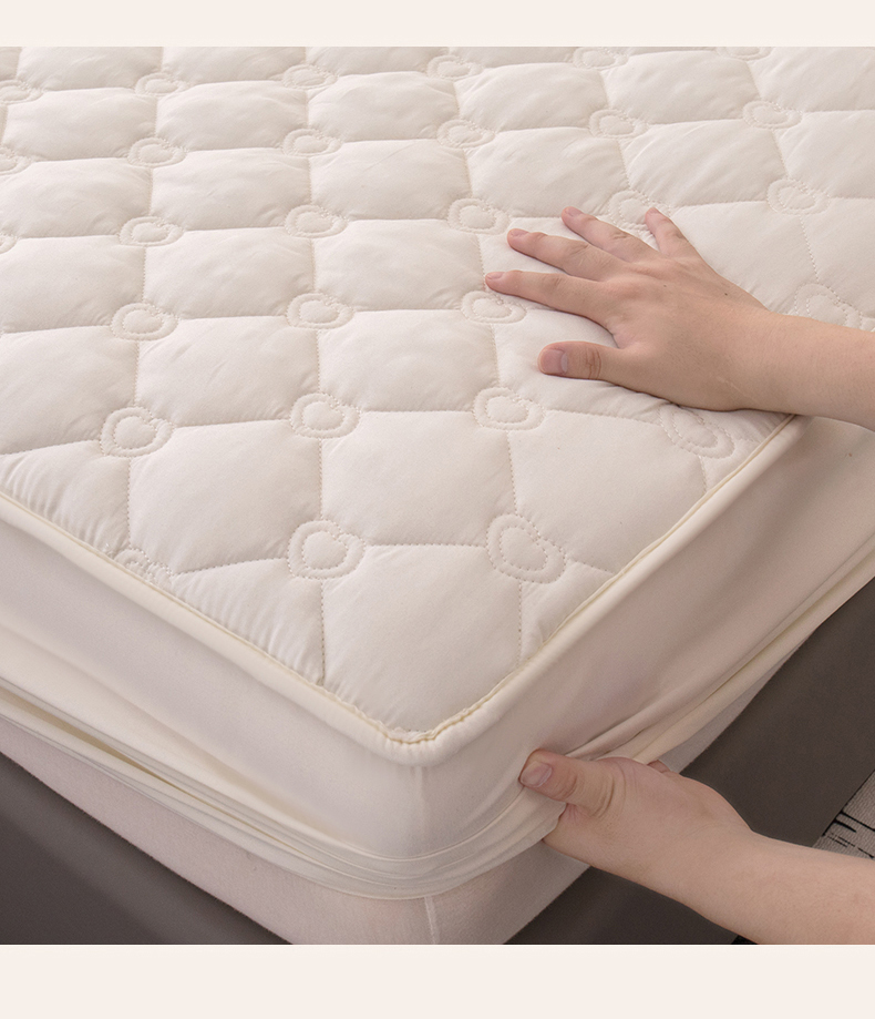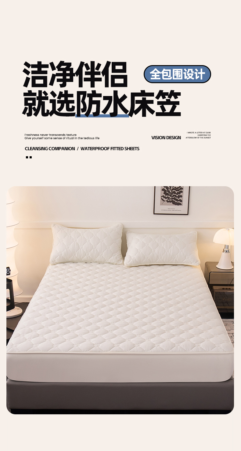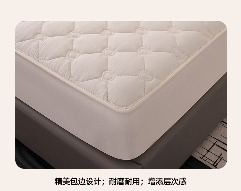 商品名称:暖季家纺 2025新款心芙系列夹棉防水床笠成人款 心芙-米白