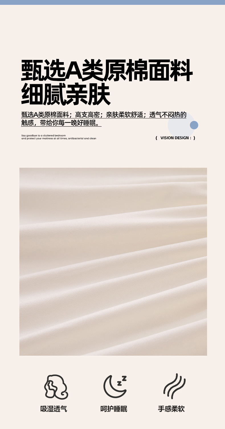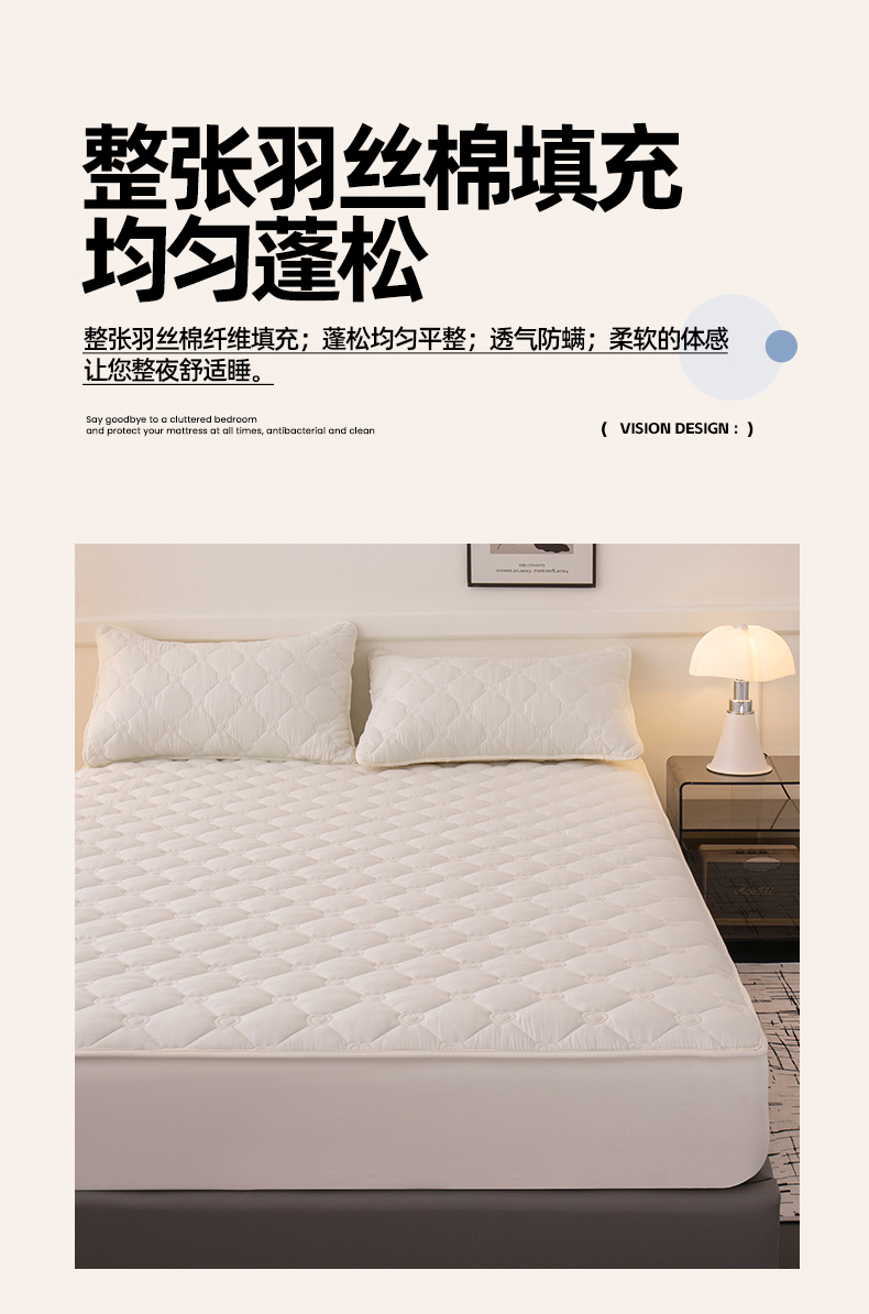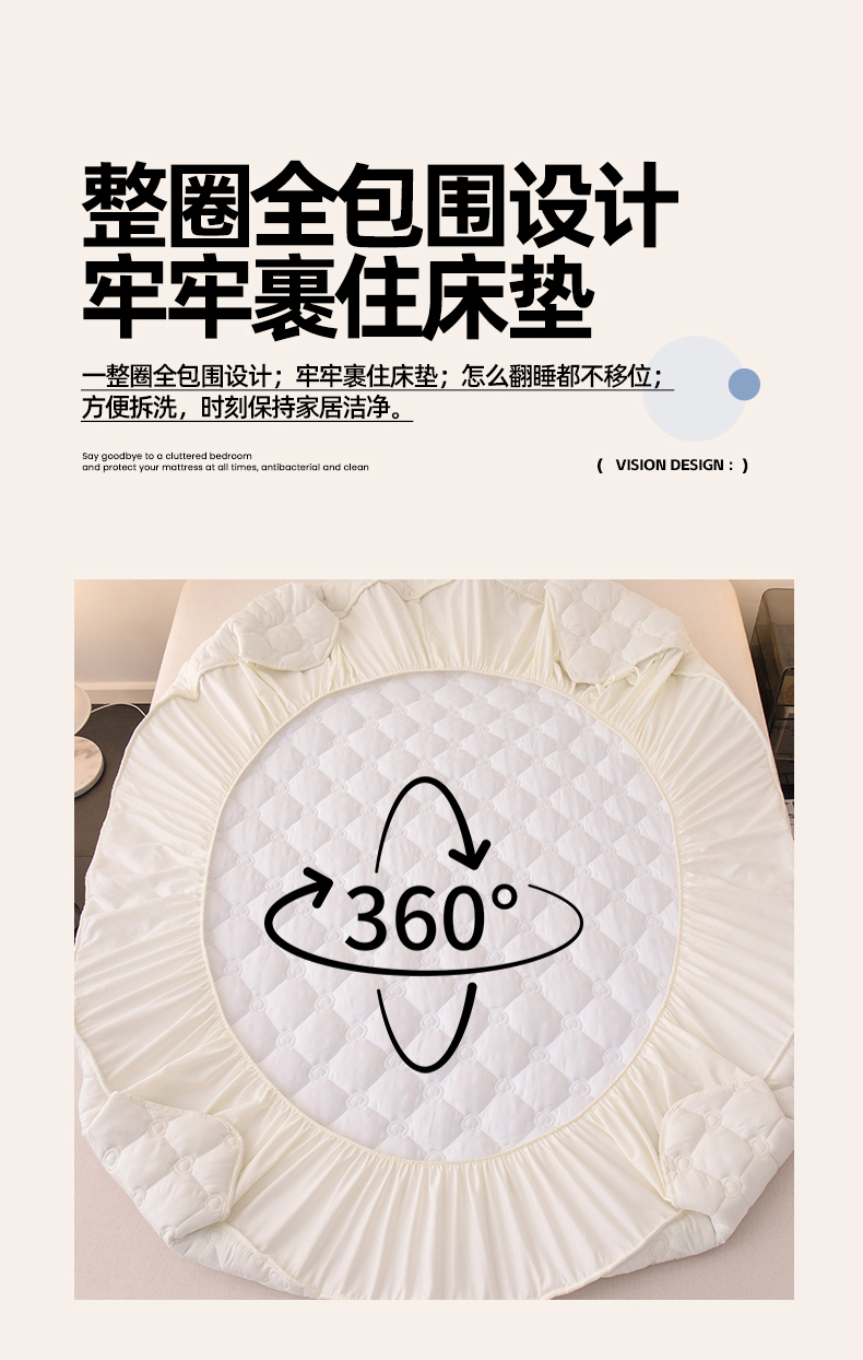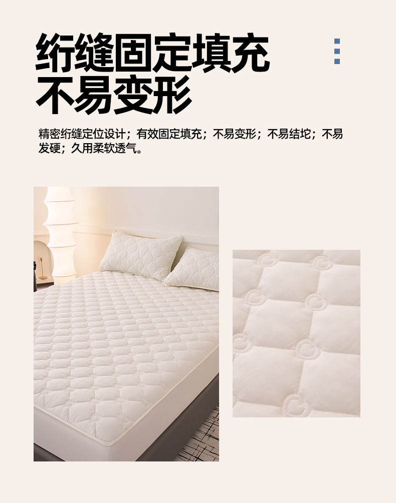 商品名称:暖季家纺 2025新款心芙系列夹棉防水床笠成人款 心芙-米白