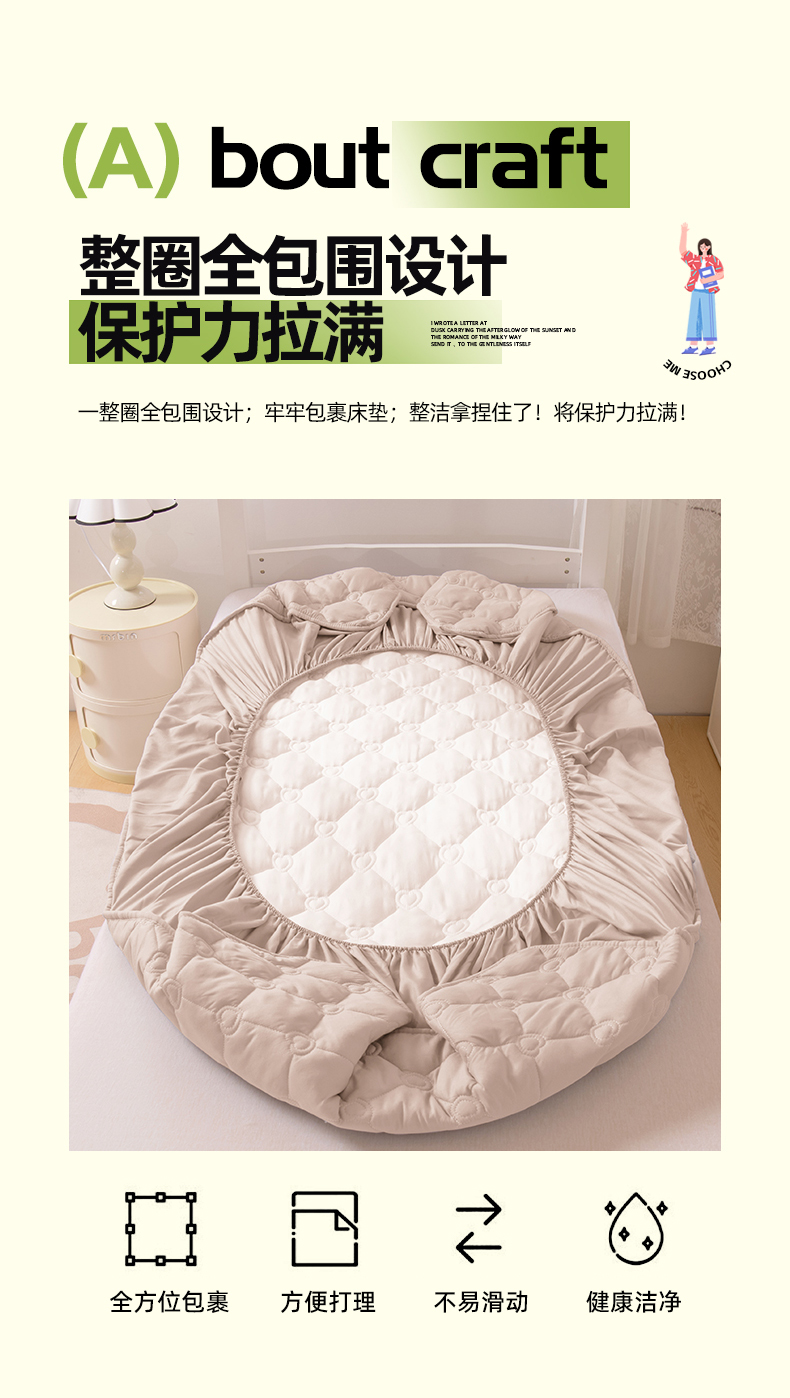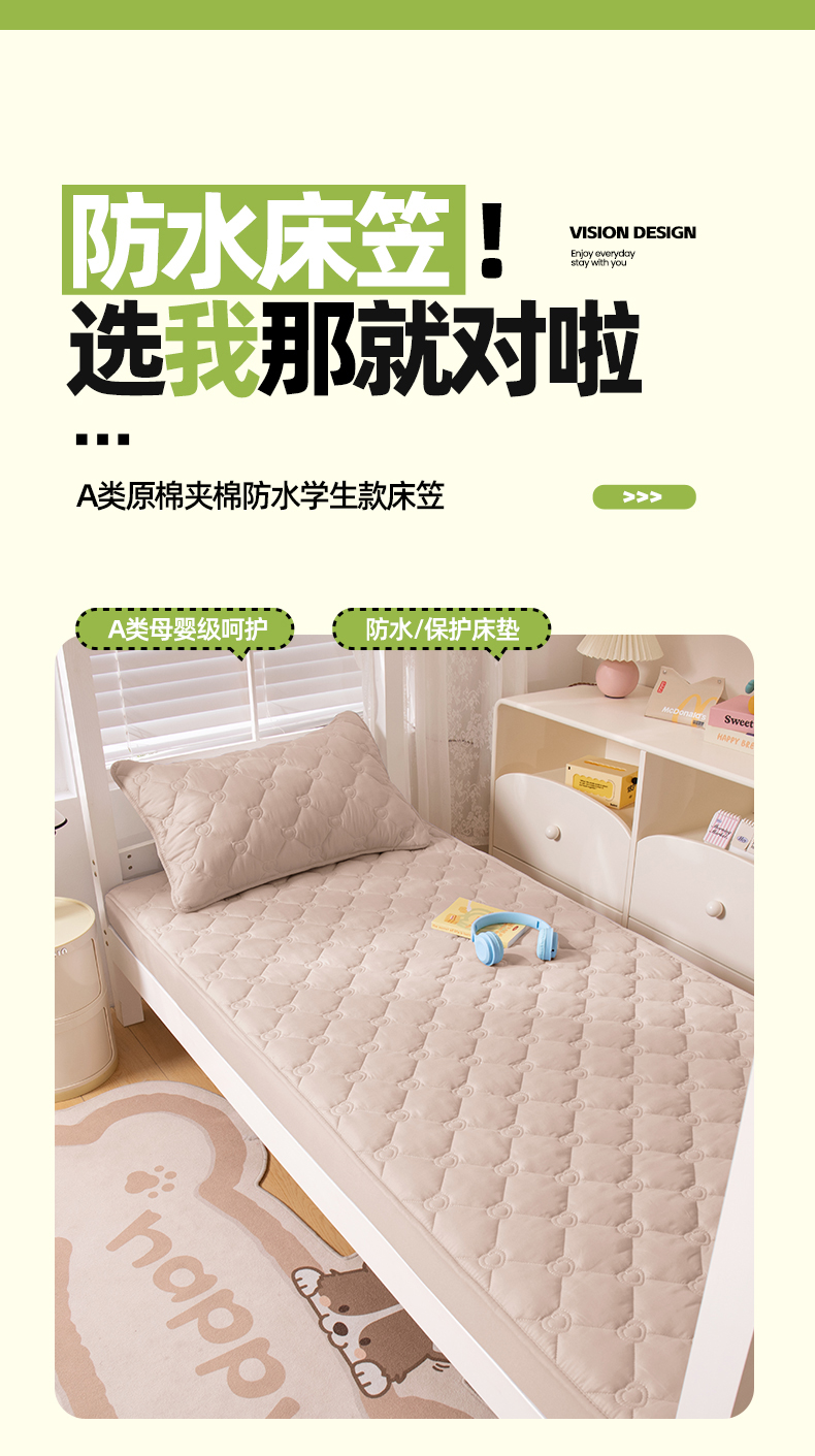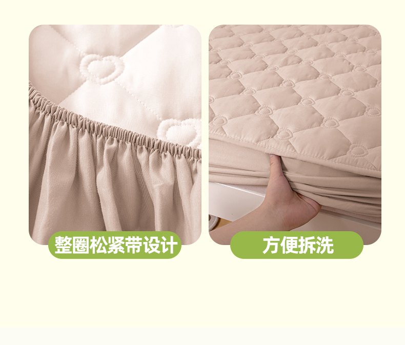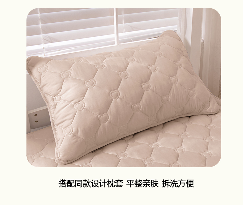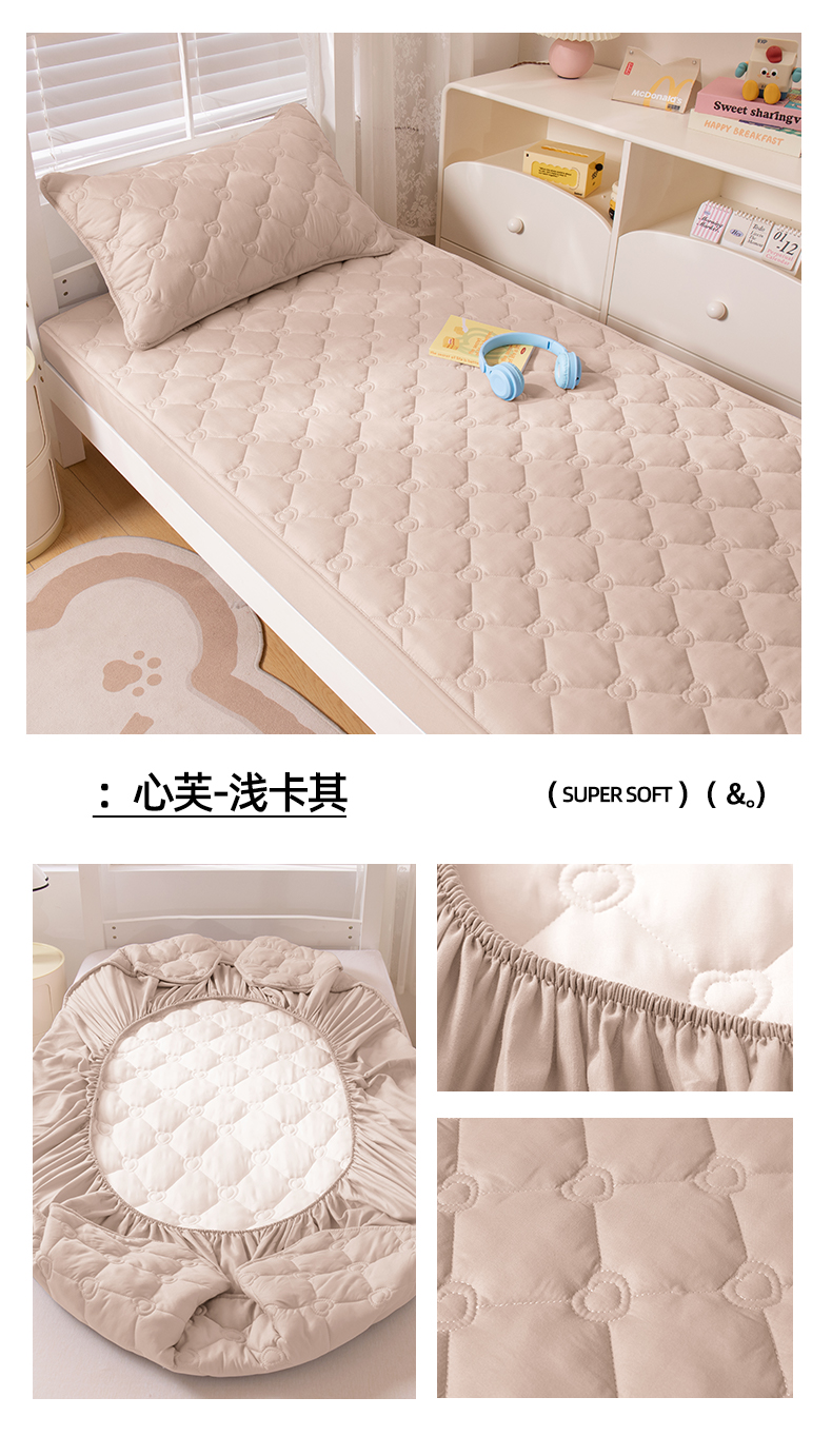 商品名称:暖季家纺 2025新款心芙系列夹棉防水床笠学生款 心芙-浅卡其