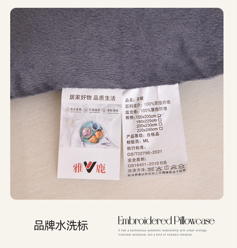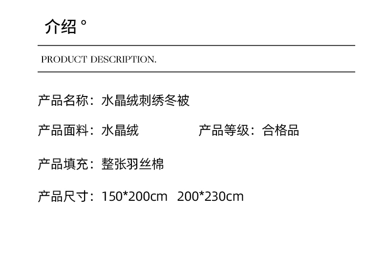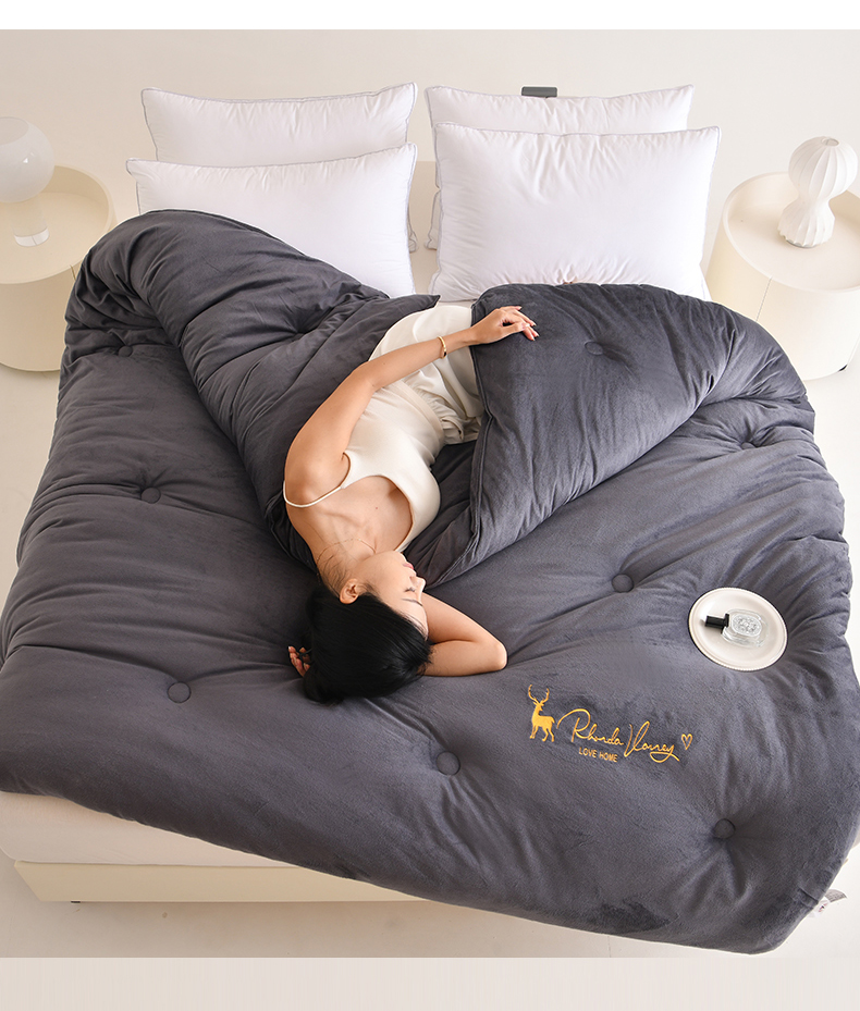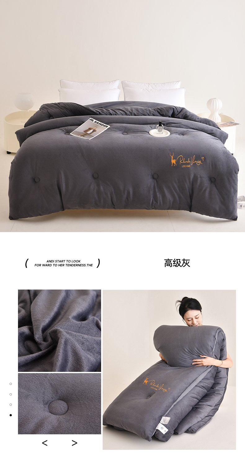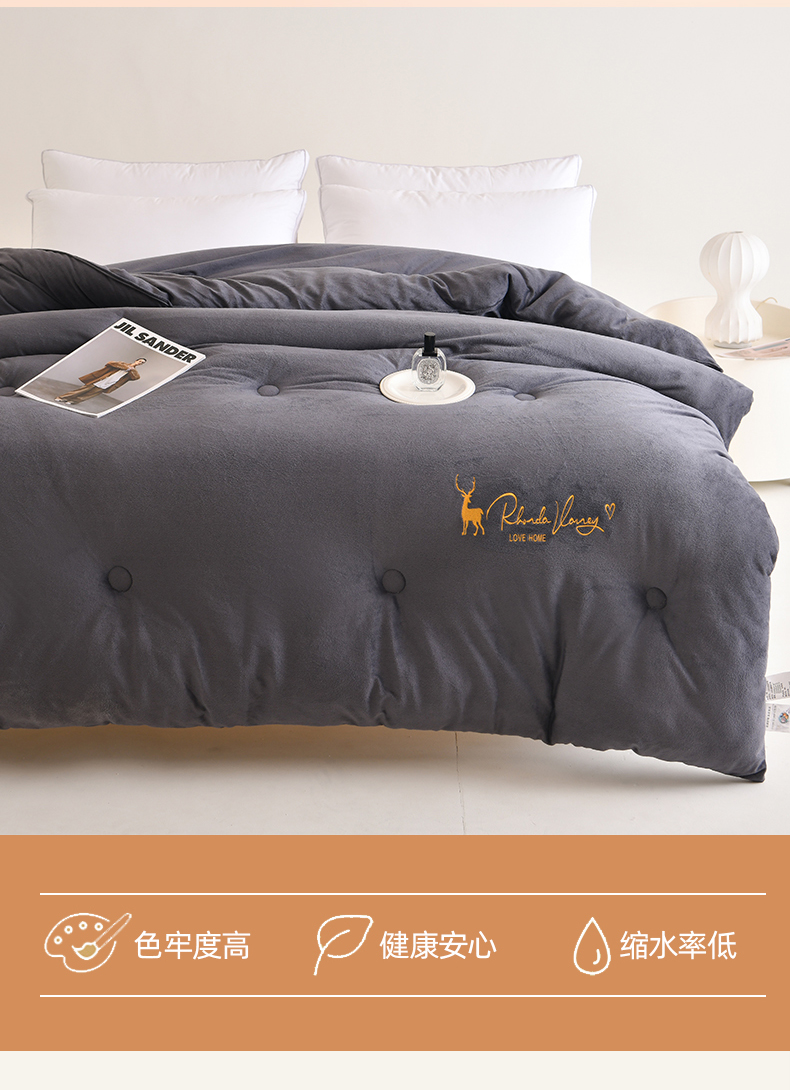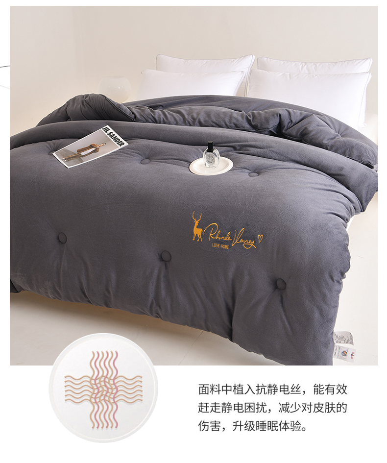 商品名称:蓝冰家纺 2024新款水晶绒羽丝棉刺绣冬被 尊贵高级灰