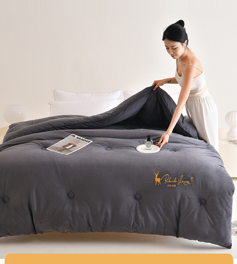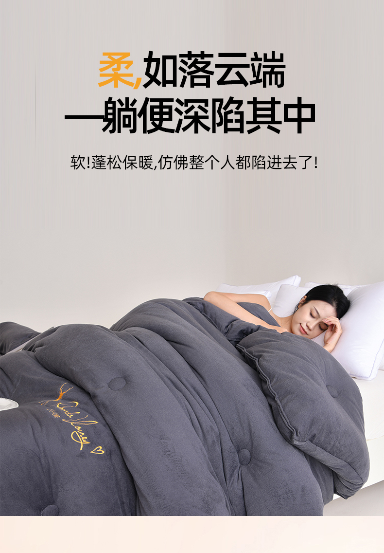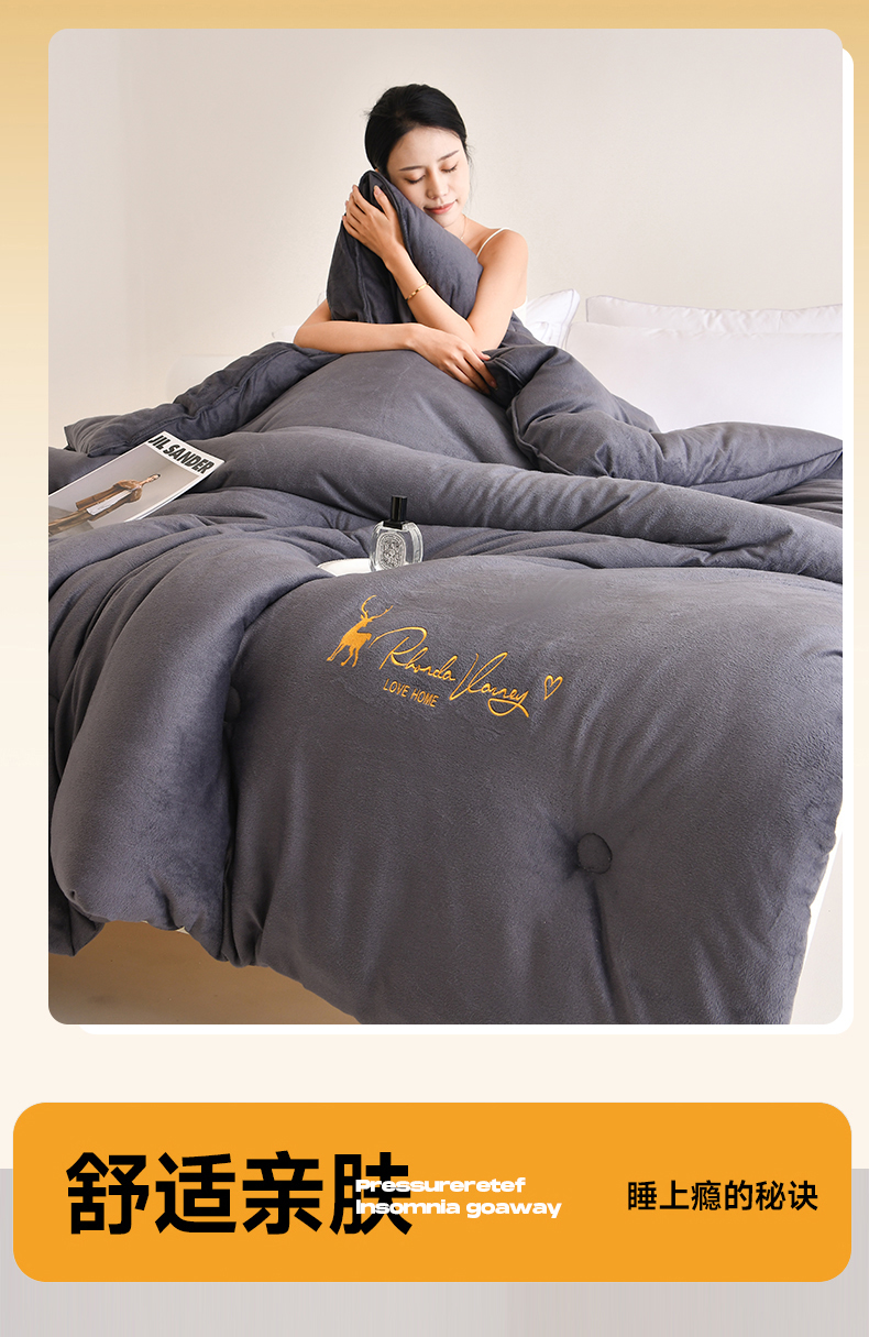 蓝冰家纺 2024新款水晶绒羽丝棉刺绣冬被 尊贵高级灰