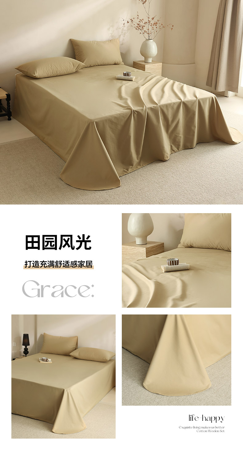 (总)轩和家居 2025新款全棉高支旧感砂洗长绒棉单床单,组合,霁兰色,暮烟灰,墨染灰,落栗棕,薄樱粉,豆沙色,淡黄色,浅云白,青绿色,秋麦色,松石绿,天空蓝,雾海蓝,细雨灰