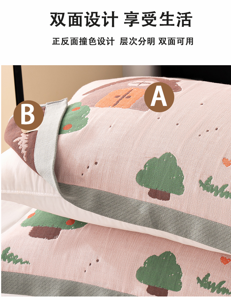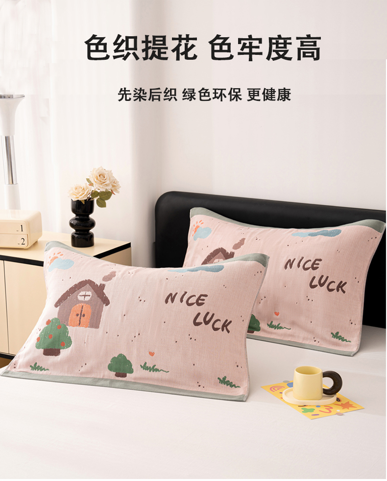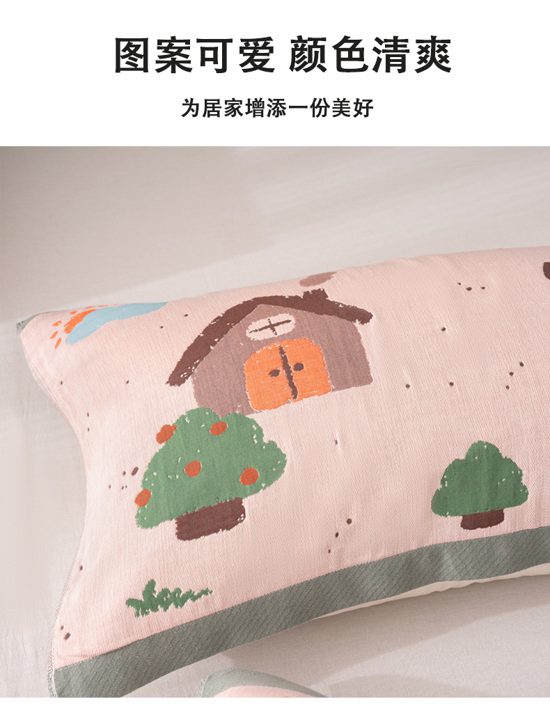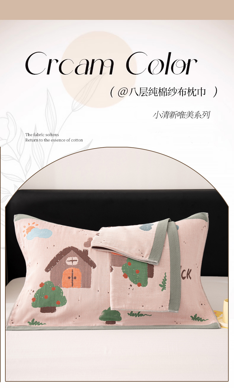 商品名称:棠薇家纺 2025新款加厚枕巾全棉纱布枕巾纯棉一对装枕头巾八层纱布枕巾 52*78±2cm 小房子粉