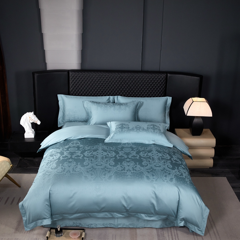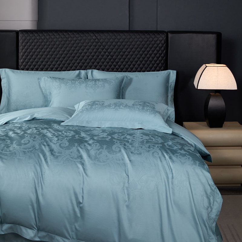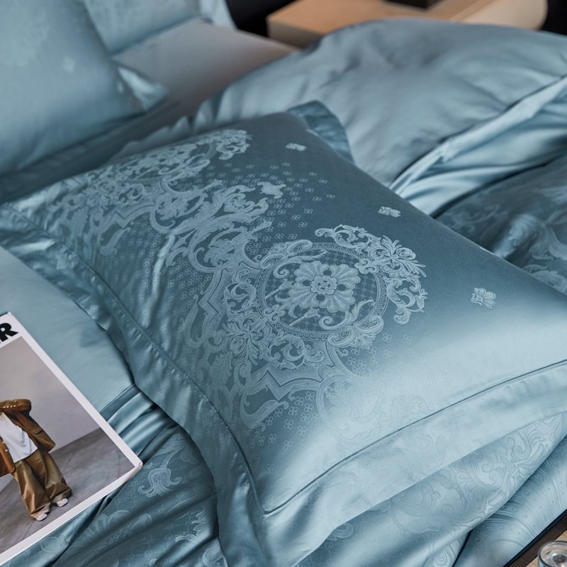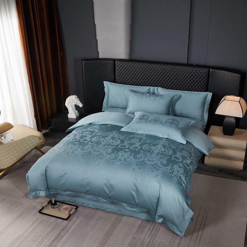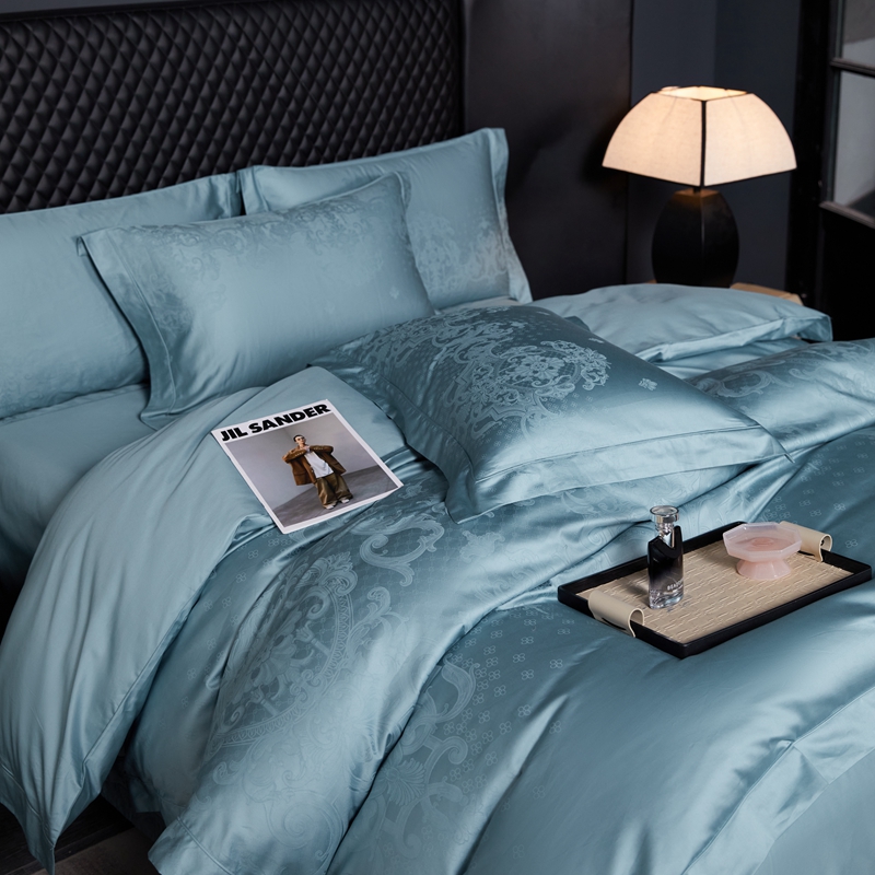 淳绵家居 2024新款50*50S双股长绒棉大版定位提花四件套 威尔顿-天空蓝