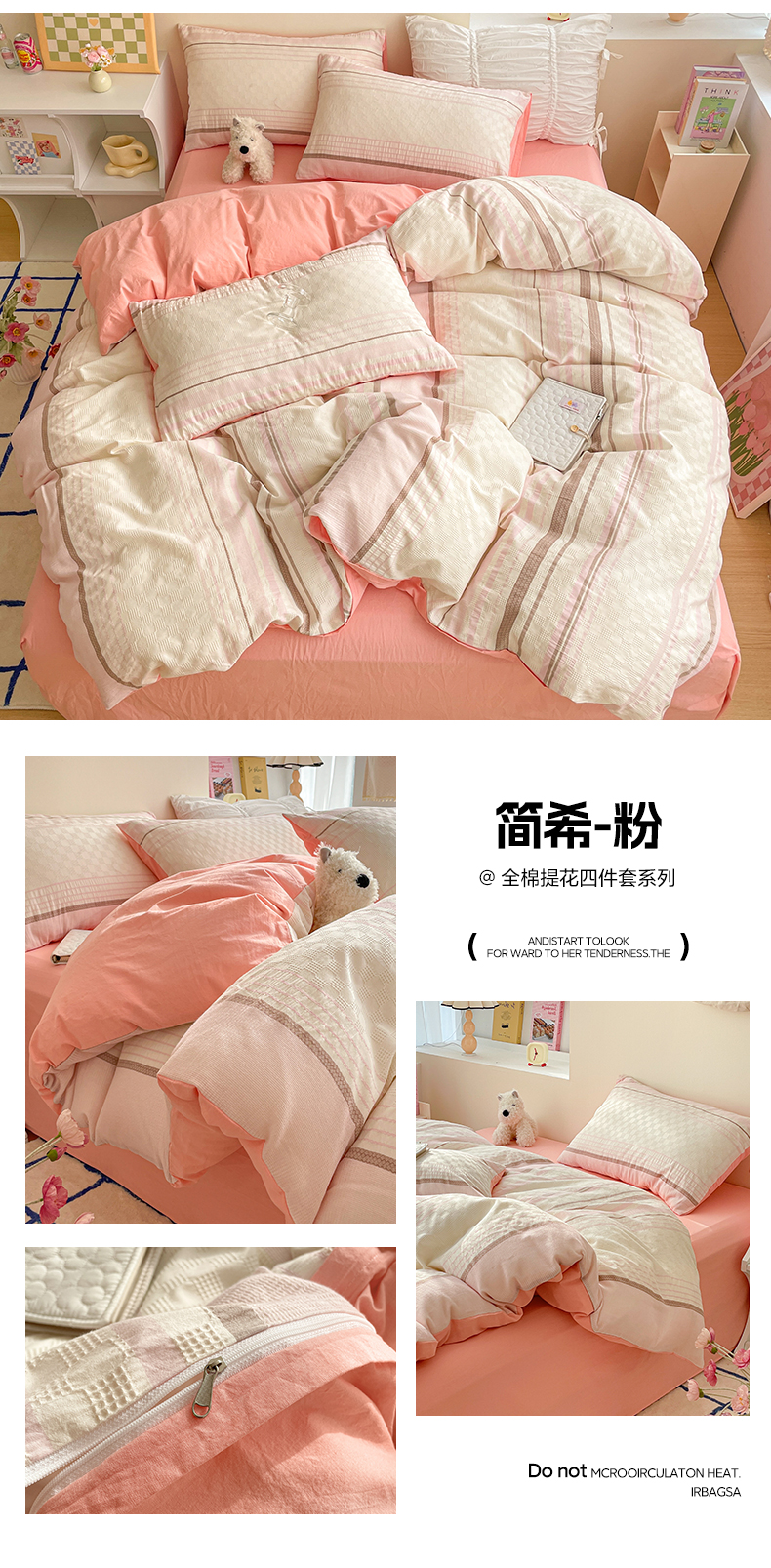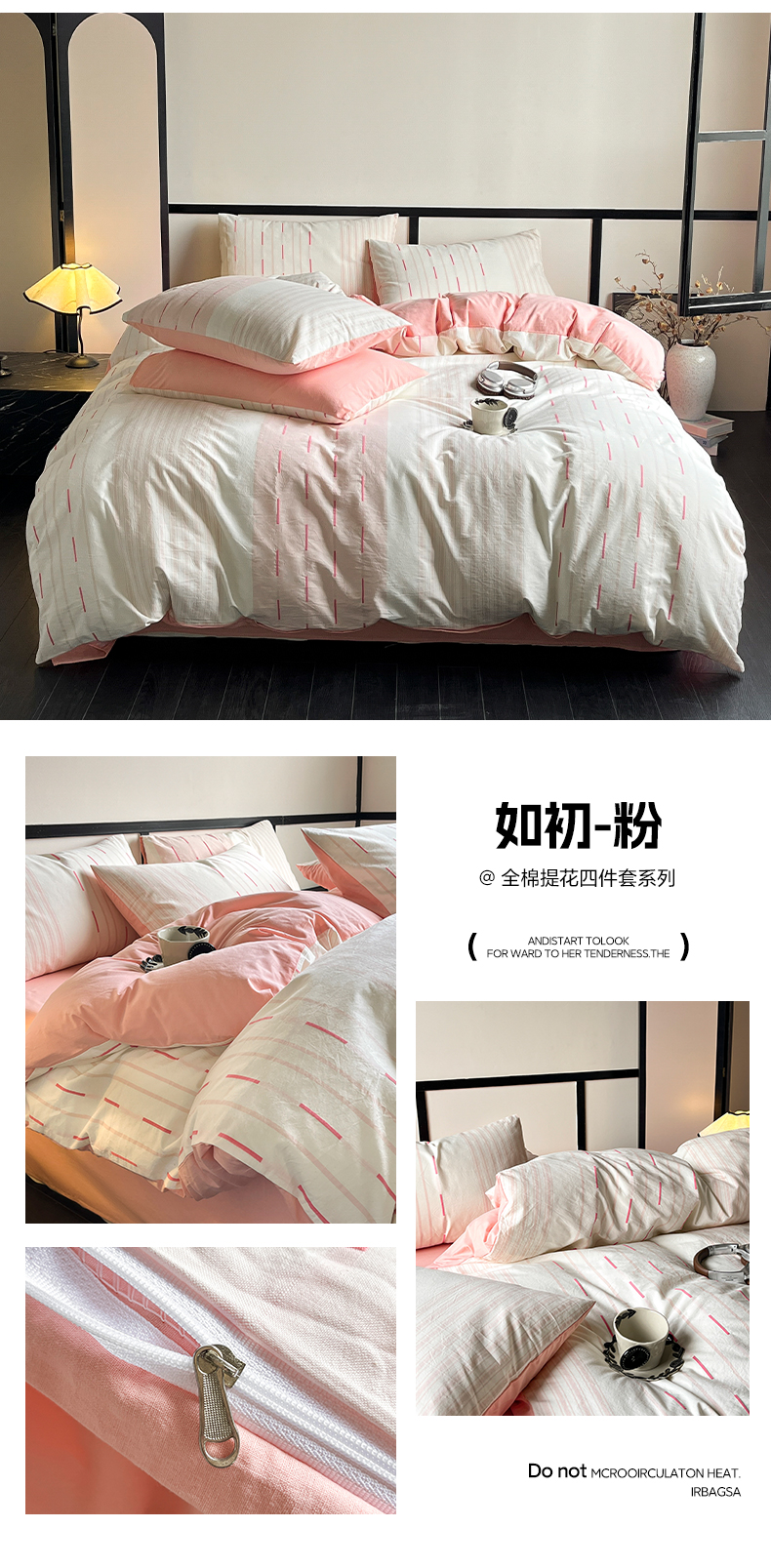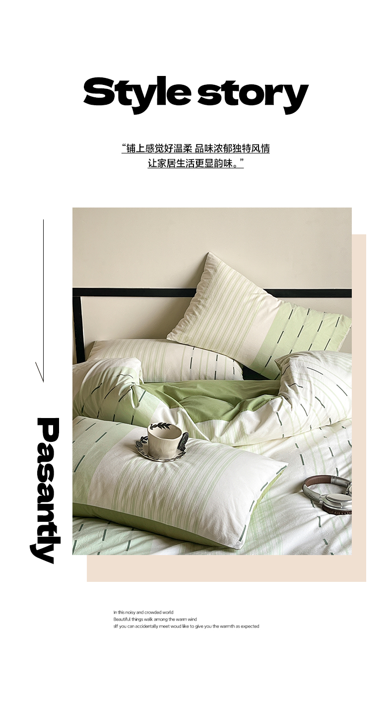 当前位置: 91家纺网 > 商品网购 > 床品套件 > 四件套 > 全棉普通四件套 > 雅居纺家纺 2024新款100%全棉简约提花四件套 如初-绿