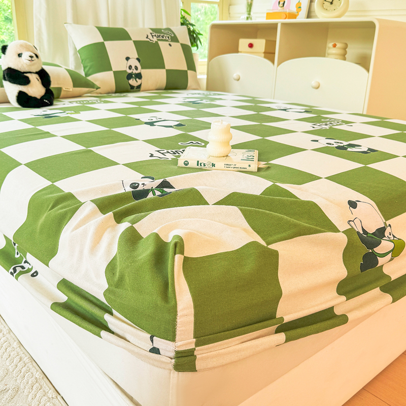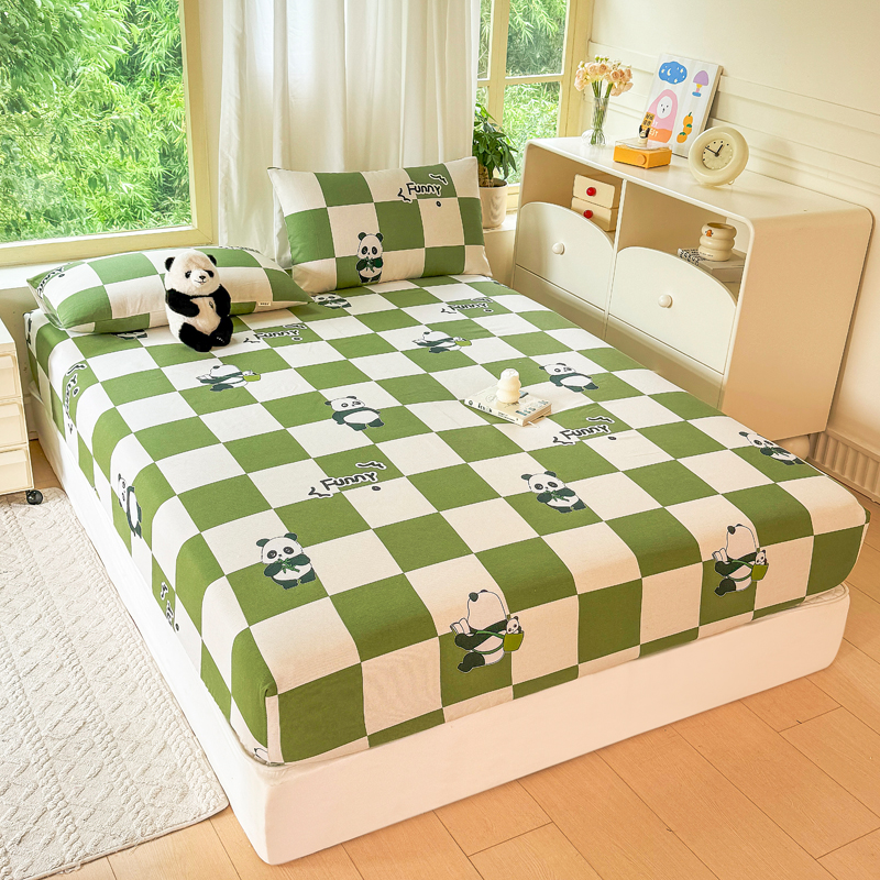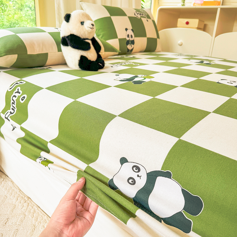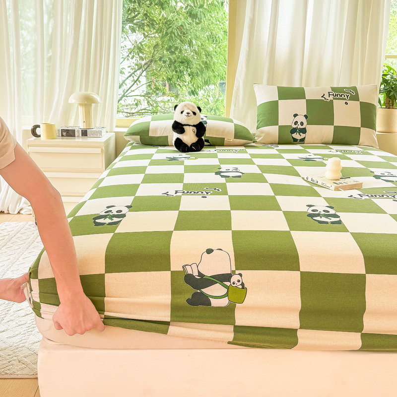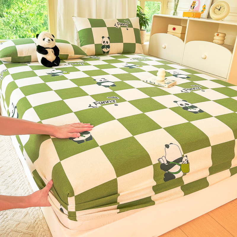 悦织湾 2025新款轻奢老粗布原棉印花床笠加厚柔软跨境专供外贸出口电商直播热销款 老粗布床笠-背包熊